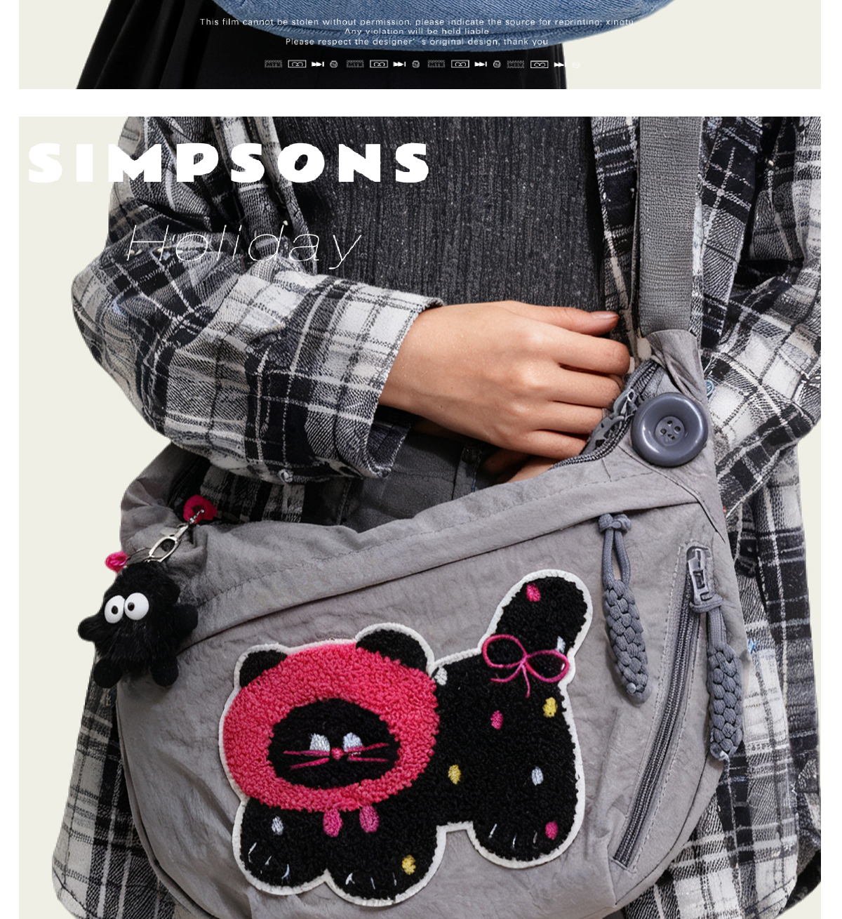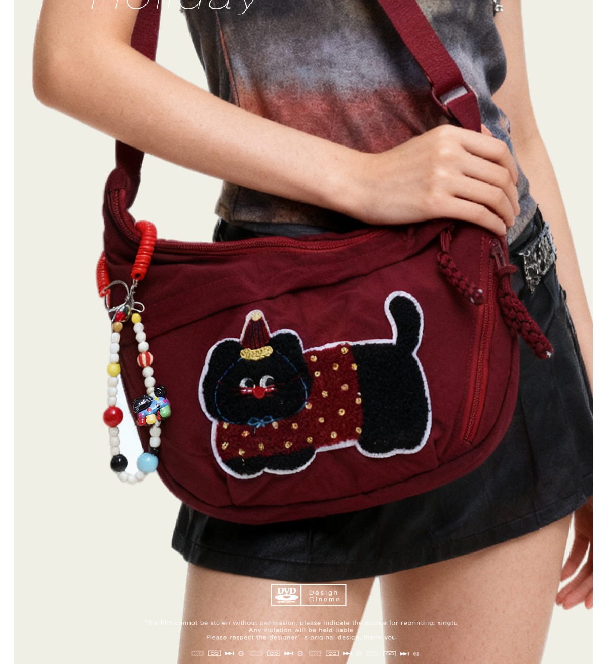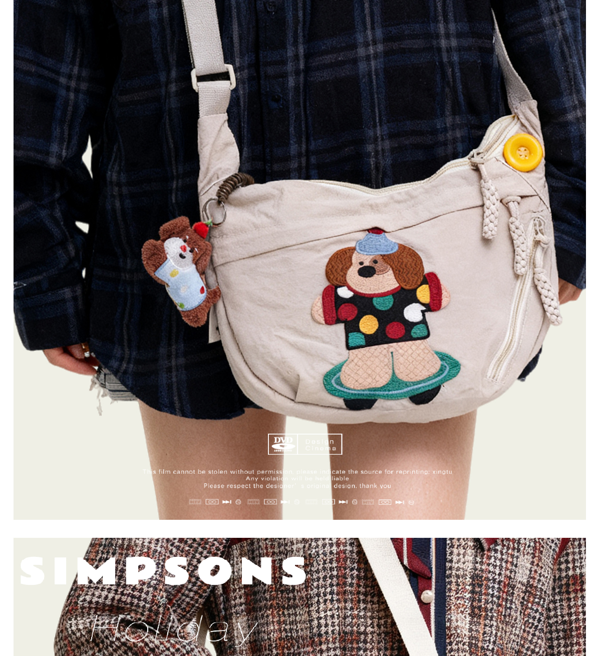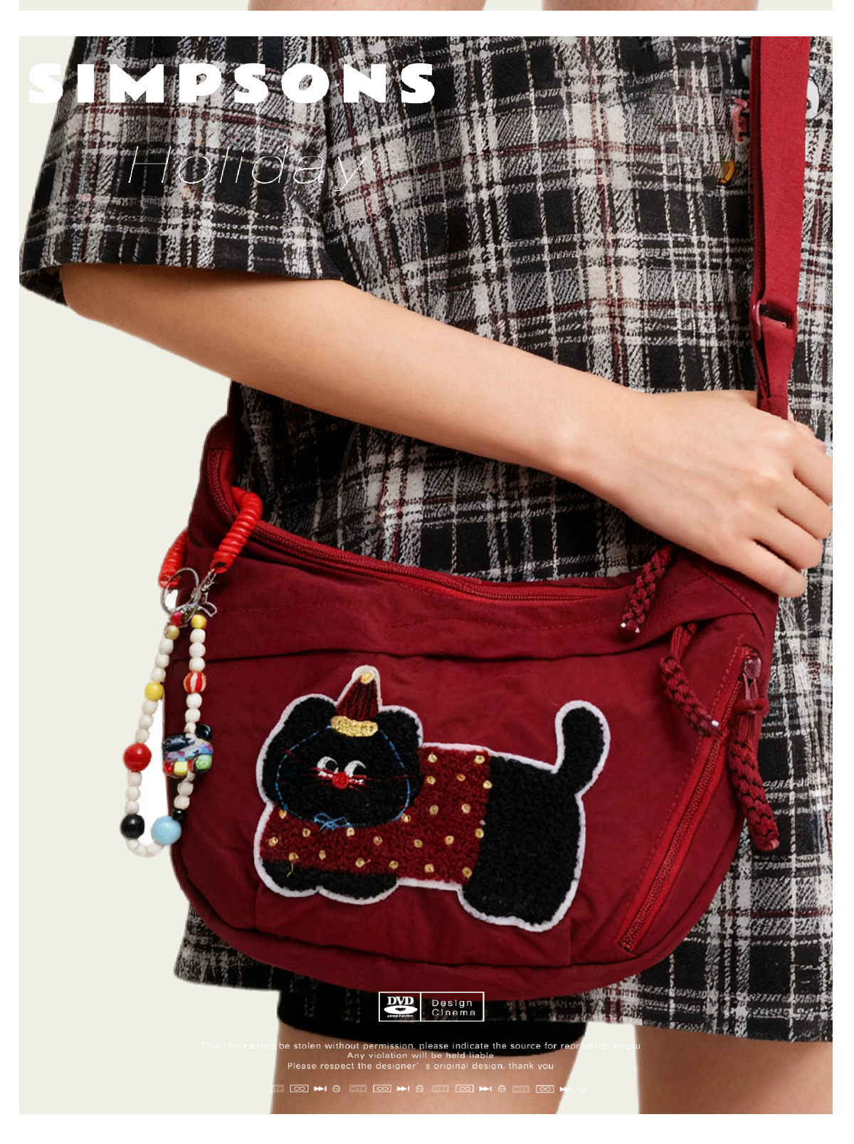 Simp Cross-Body Canvas Dumpling Bag, Cute and Fun, Large Capacity, Dog-Shaped Pendant, Fashionable and Versatile Travel and Commuting Bag