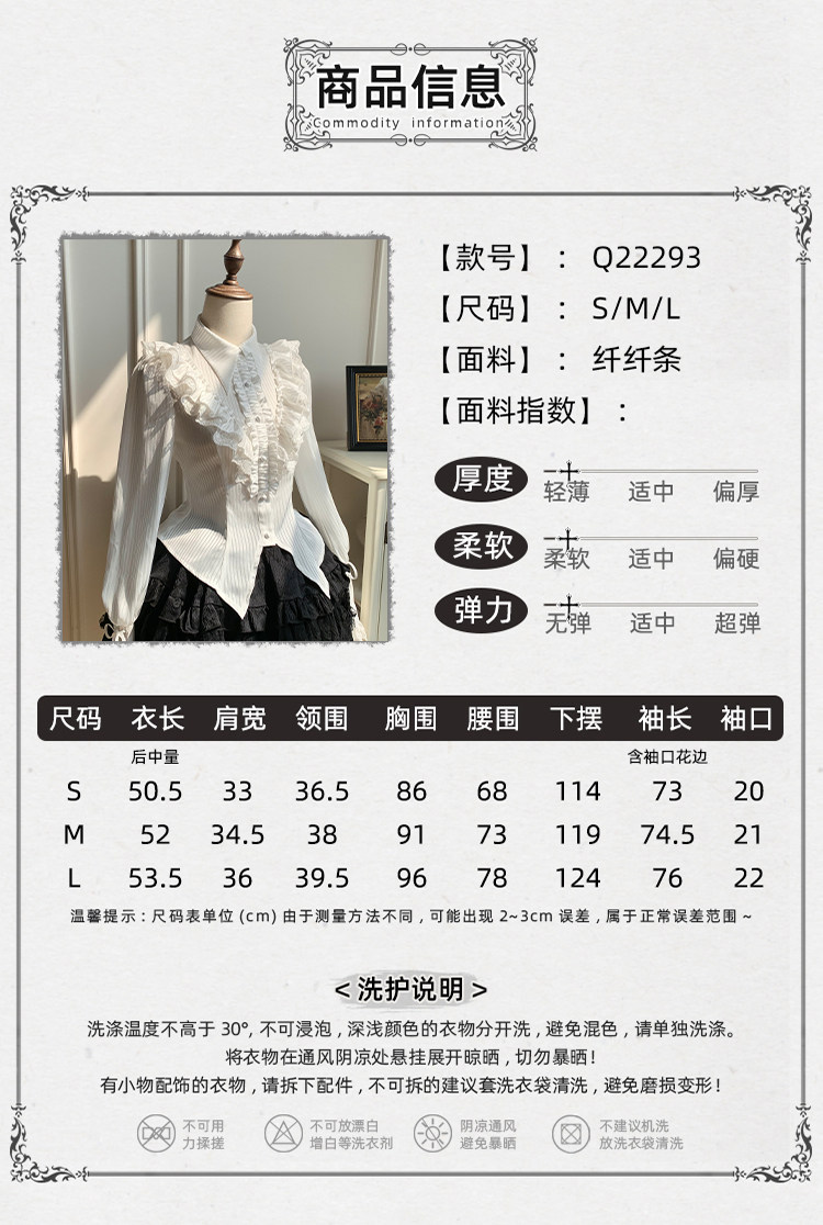 【Charlotte】Withpuji Original Design Vintage Gothic Lantern Sleeve Lapel Shirt Lolita Inner Layer