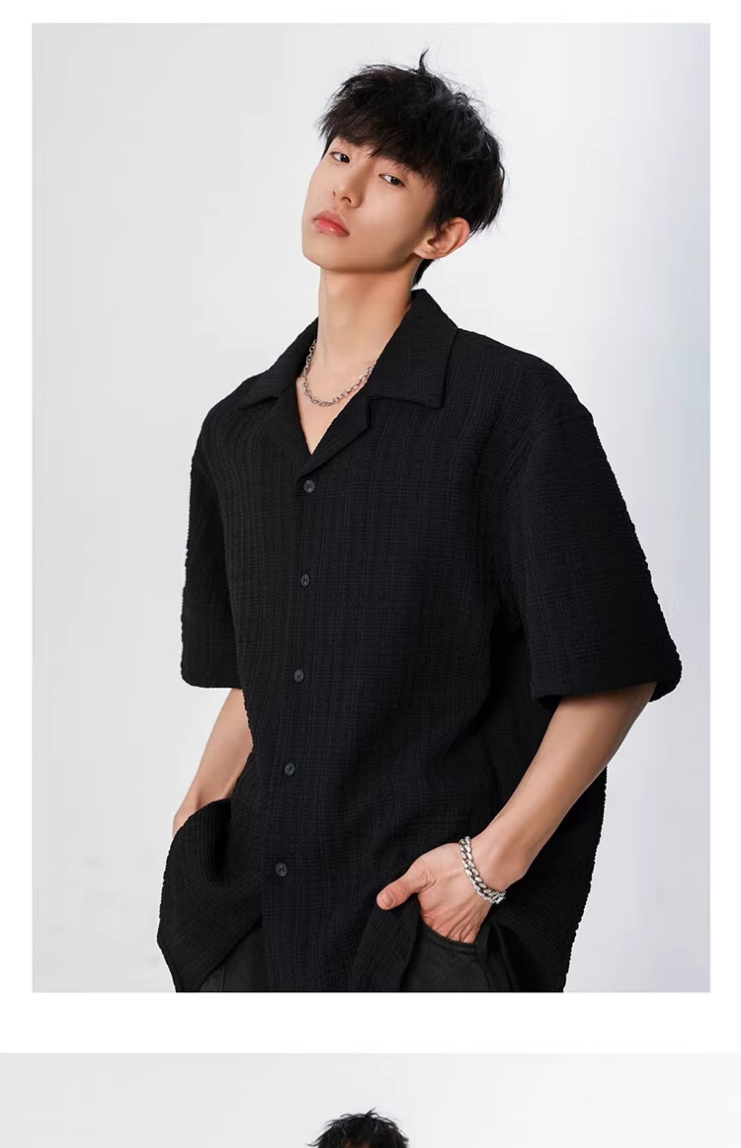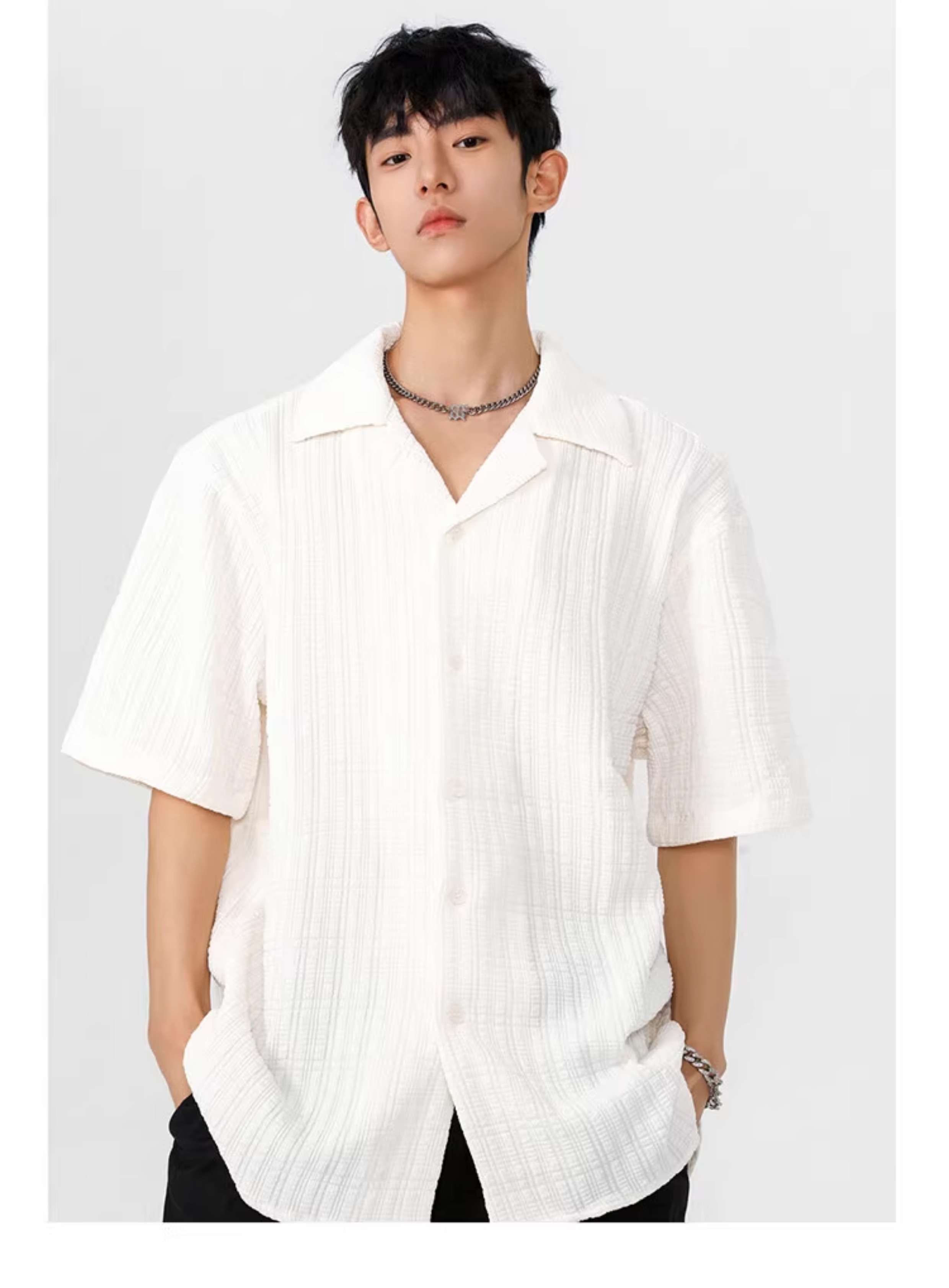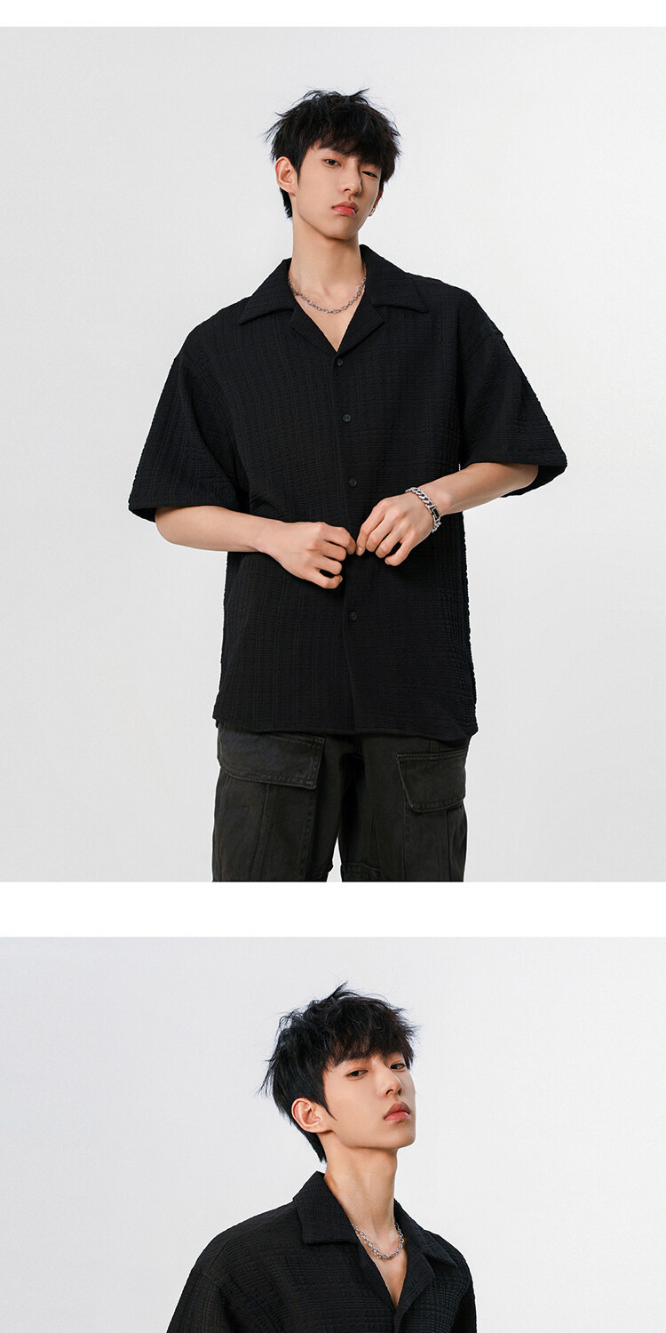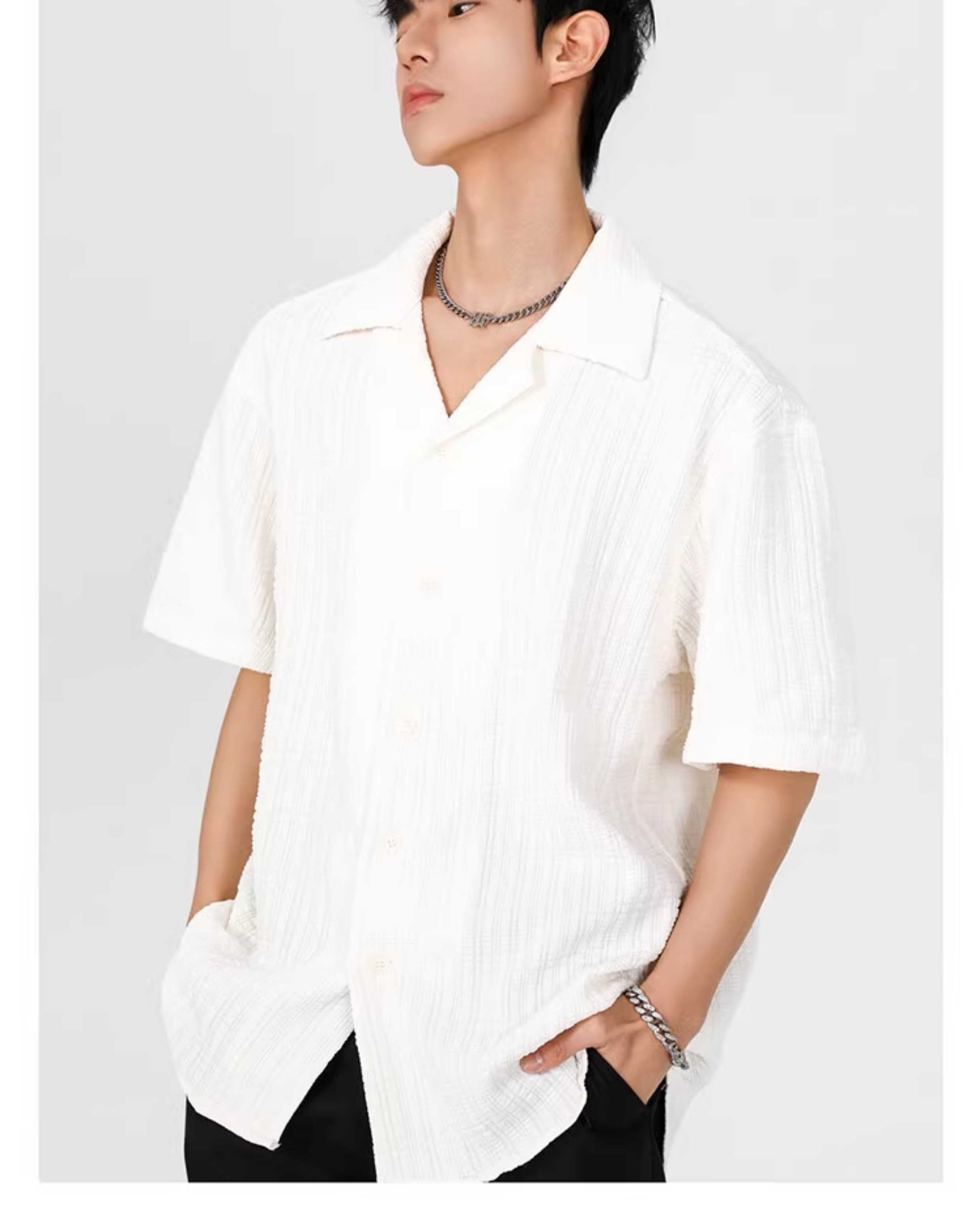 Cuban Collar Textured Shirt Short-Sleeved Men's Summer New Versatile Casual T-Shirt Half-Sleeved Loose High-End Jacket