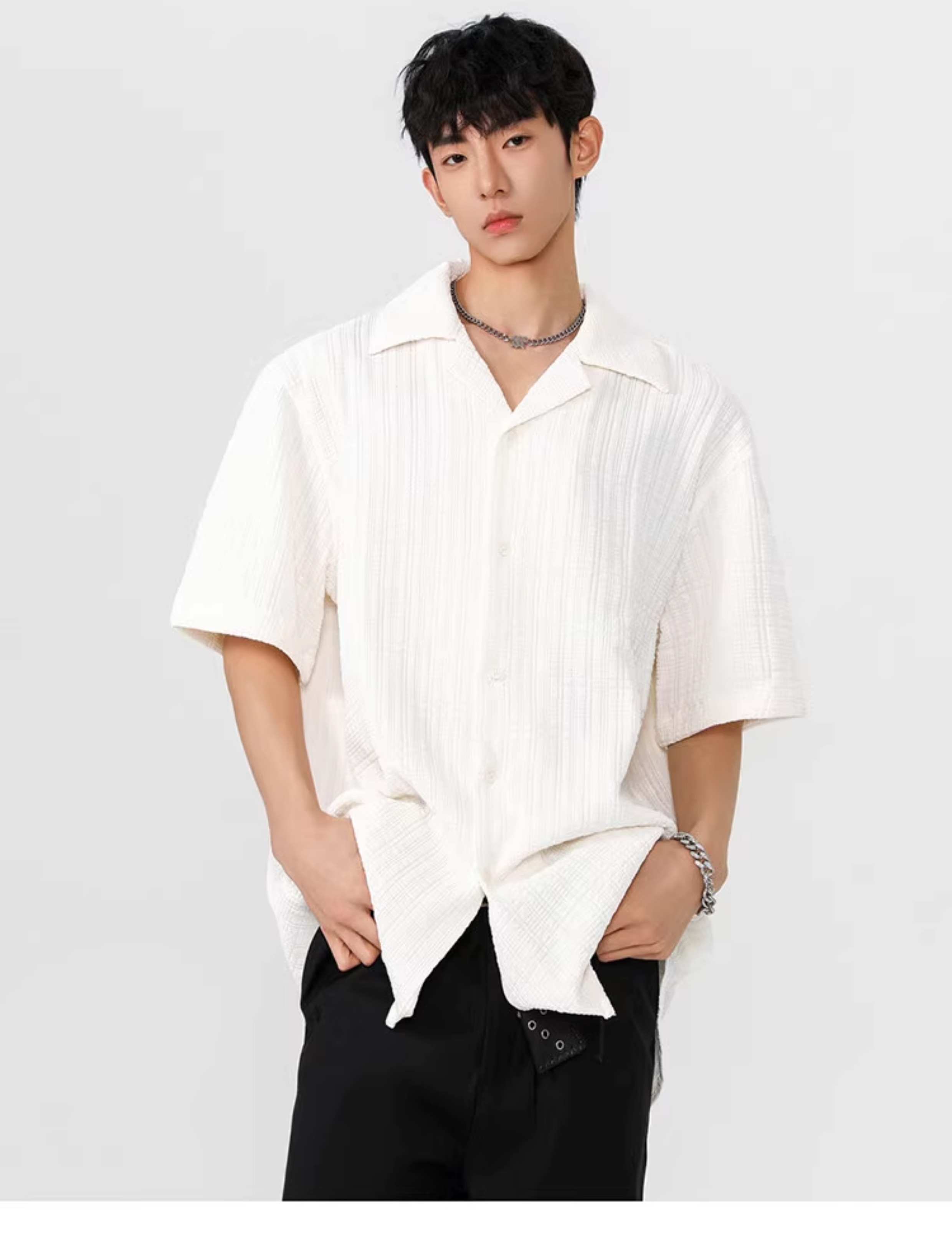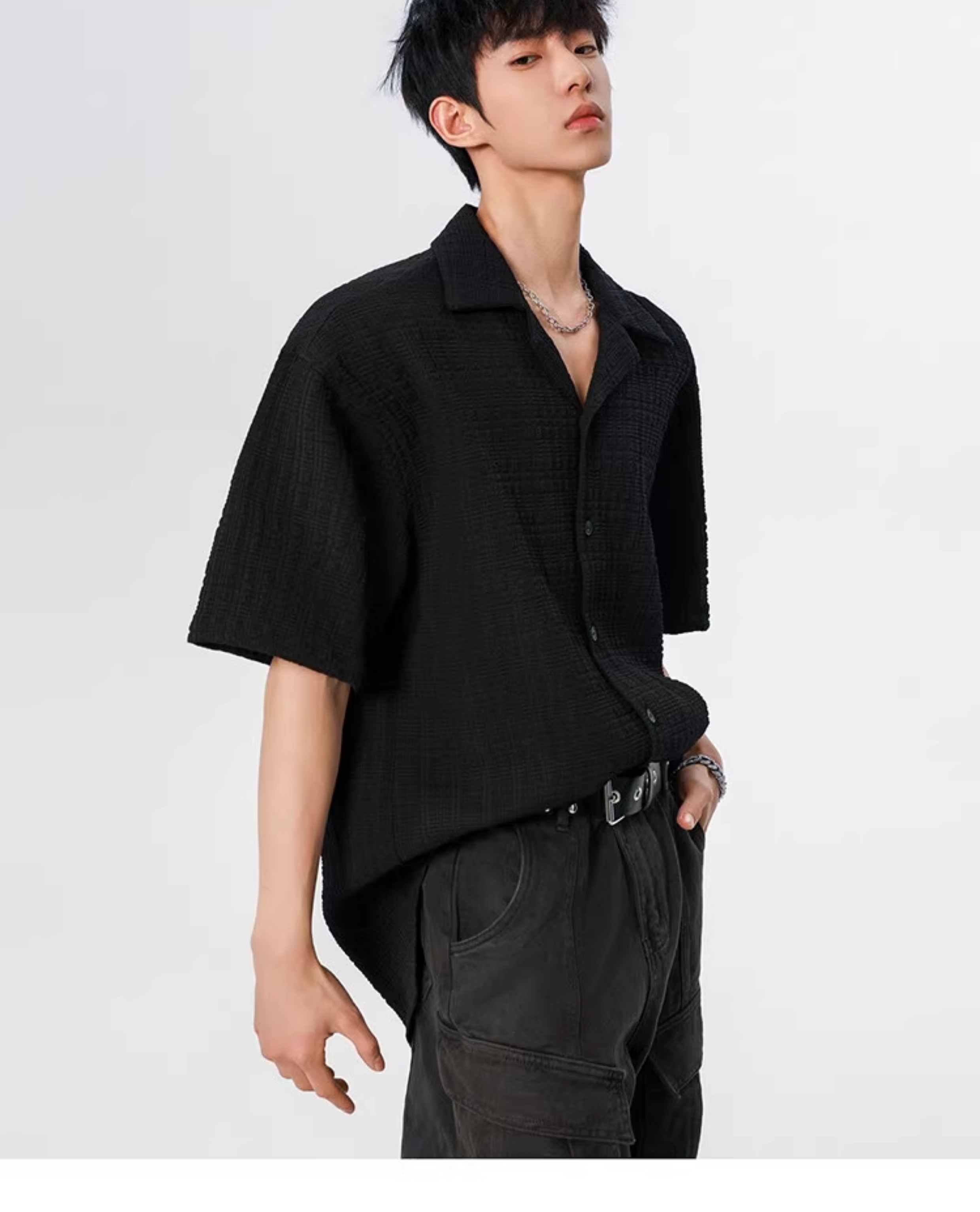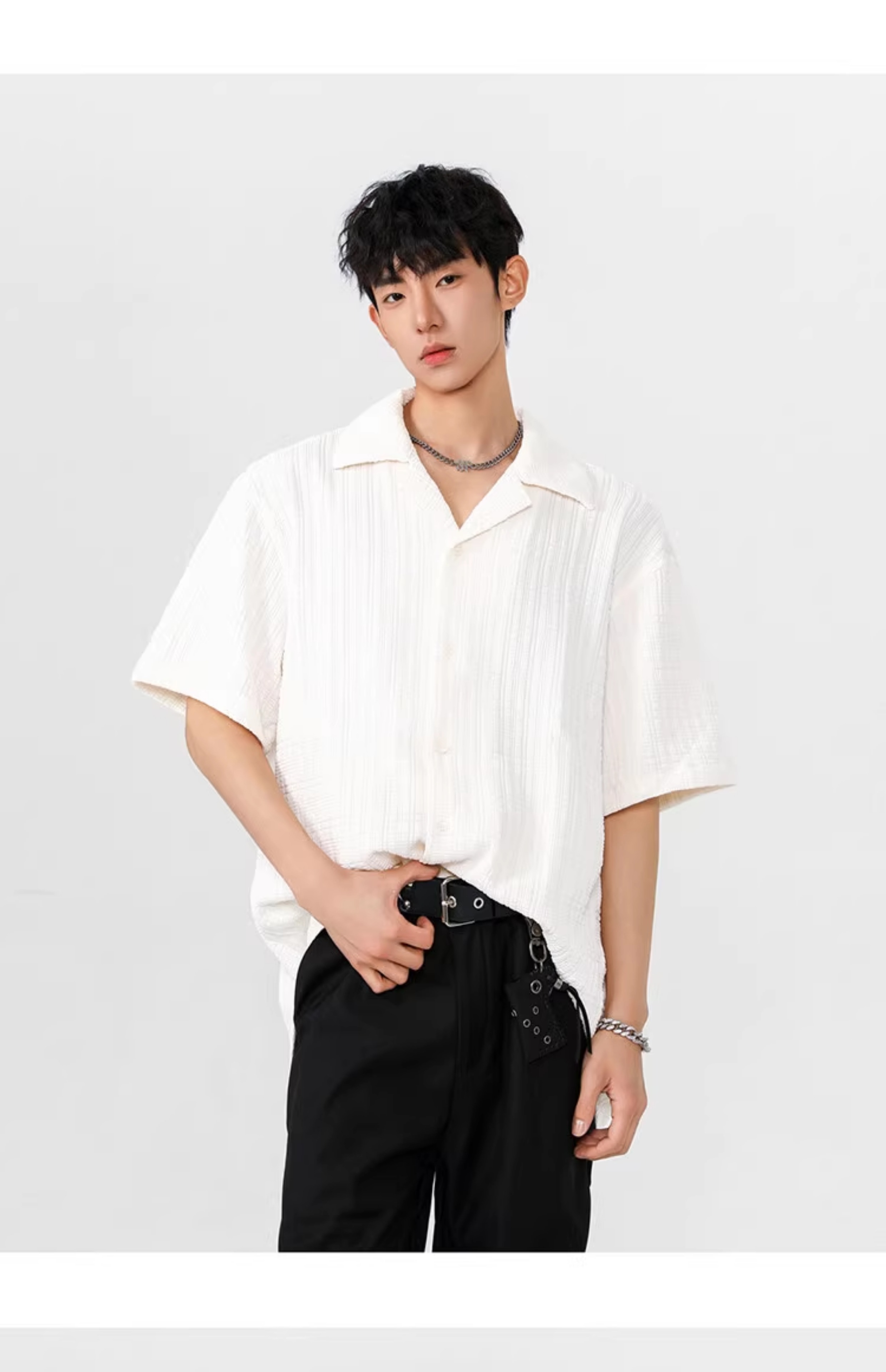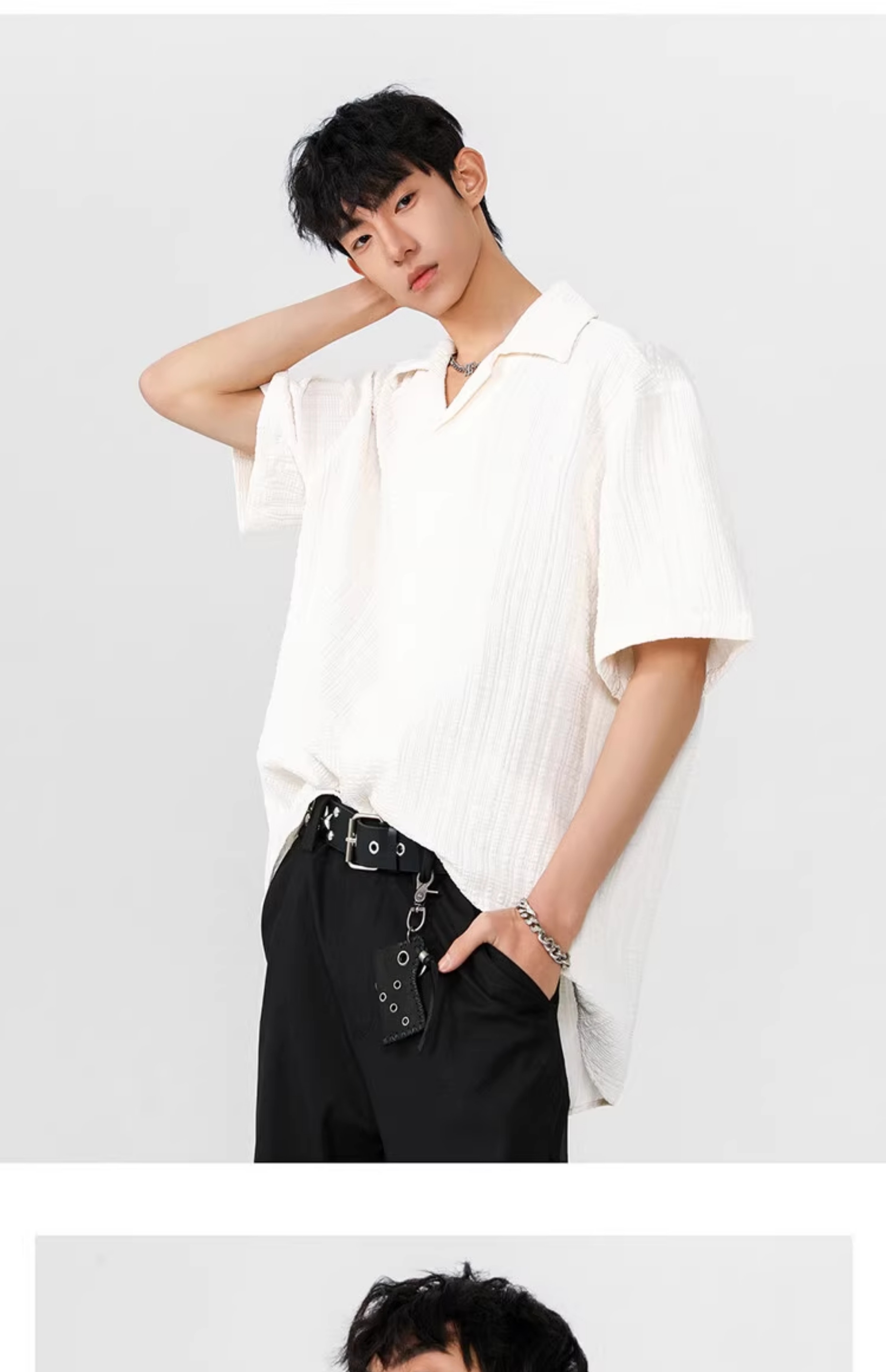 Cuban Collar Textured Shirt Short-Sleeved Men's Summer New Versatile Casual T-Shirt Half-Sleeved Loose High-End Jacket