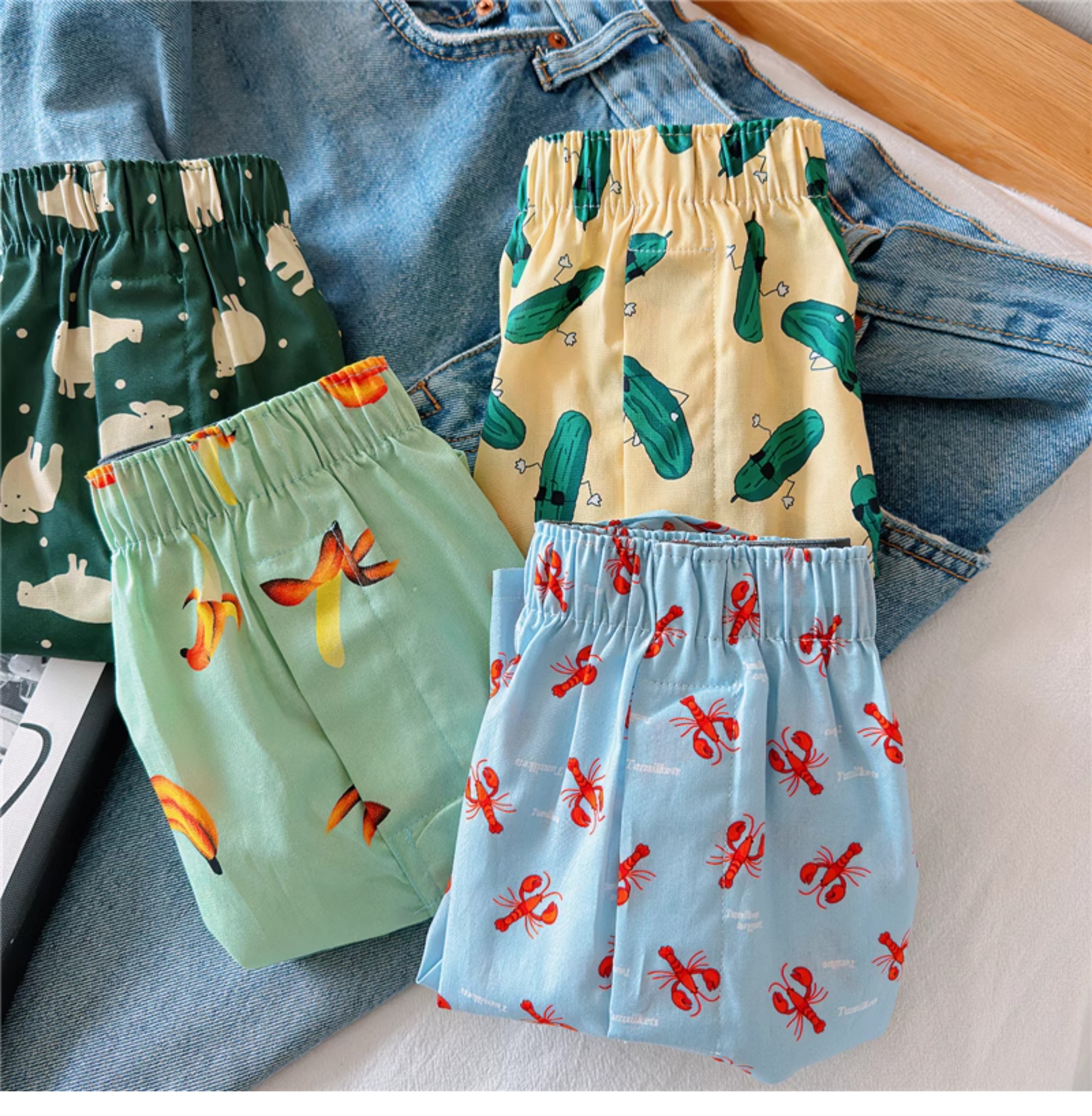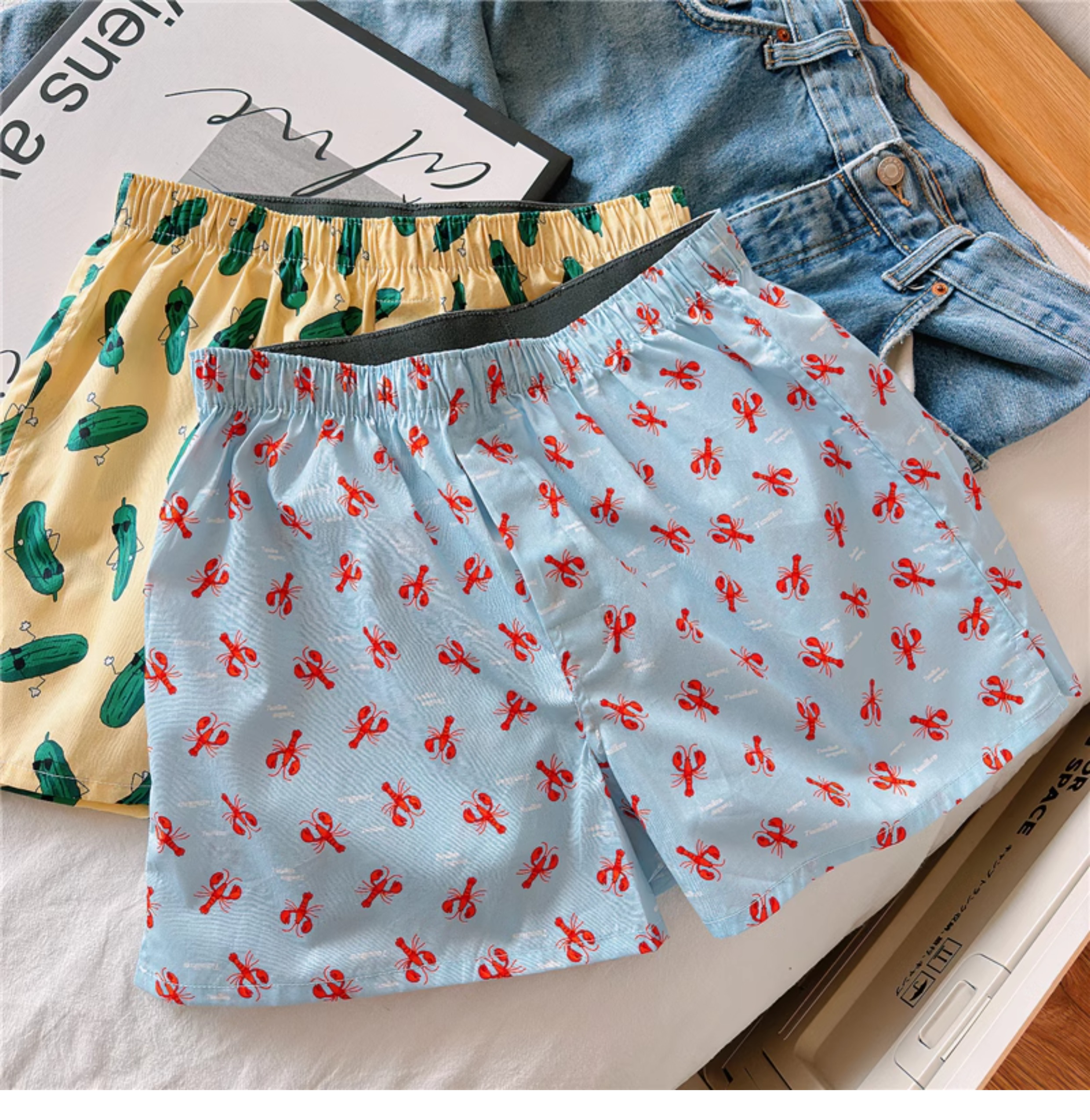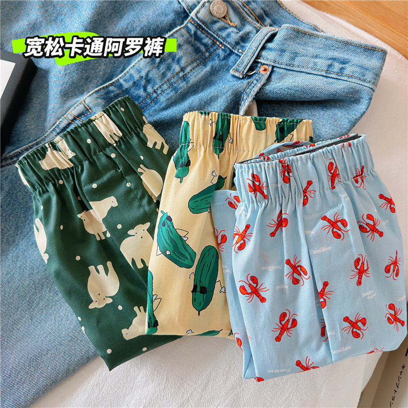 Men's Cotton Boxer Shorts, Large Size, Loose Fit, Sleep Shorts, Cartoon Print, Comfortable Home Pants, Trendy