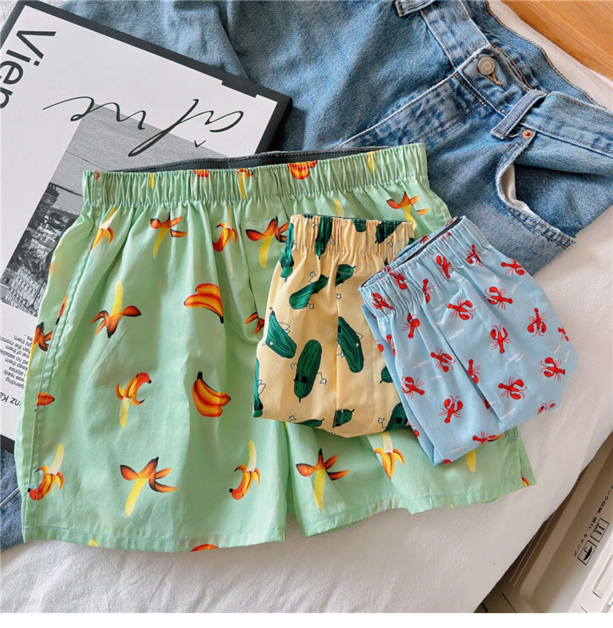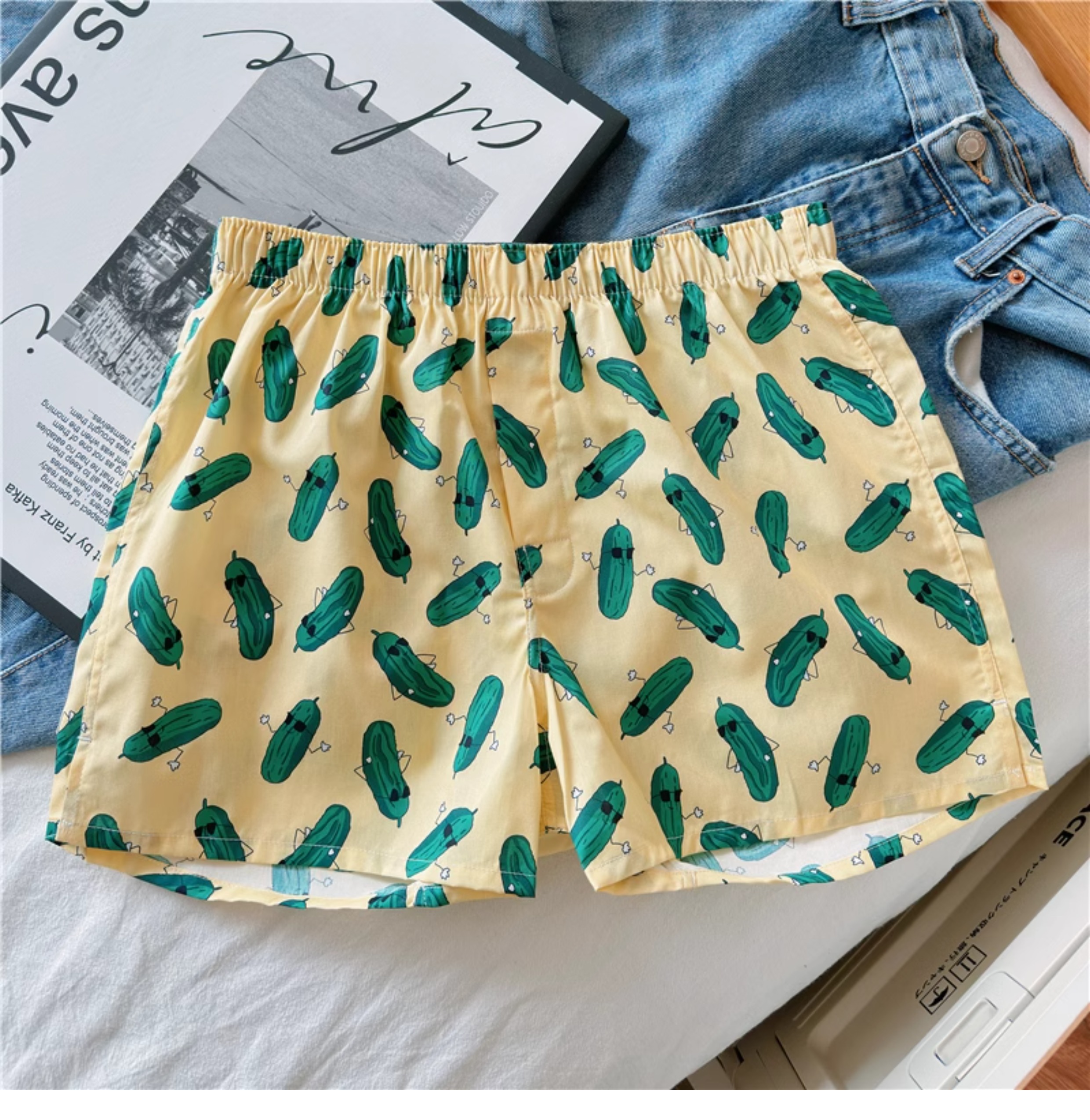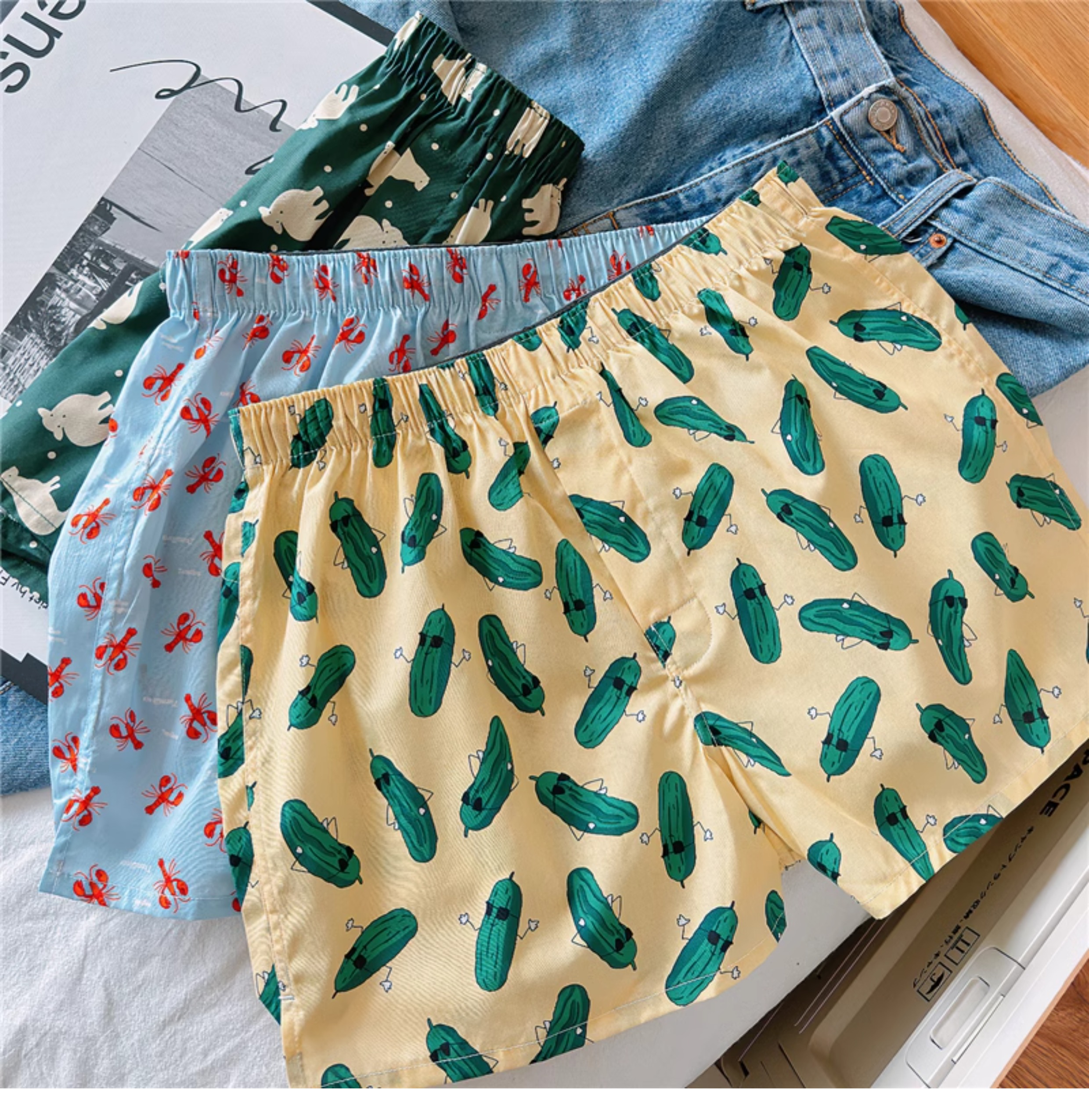 Men's Cotton Boxer Shorts, Large Size, Loose Fit, Sleep Shorts, Cartoon Print, Comfortable Home Pants, Trendy