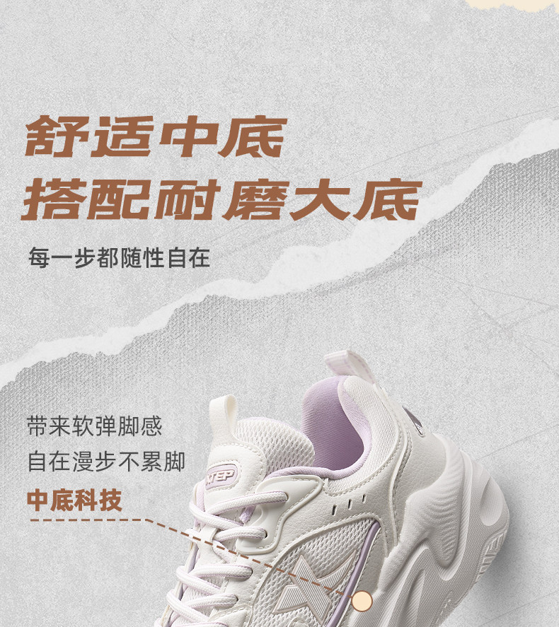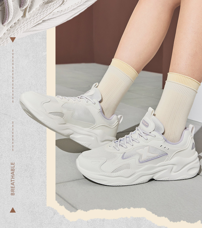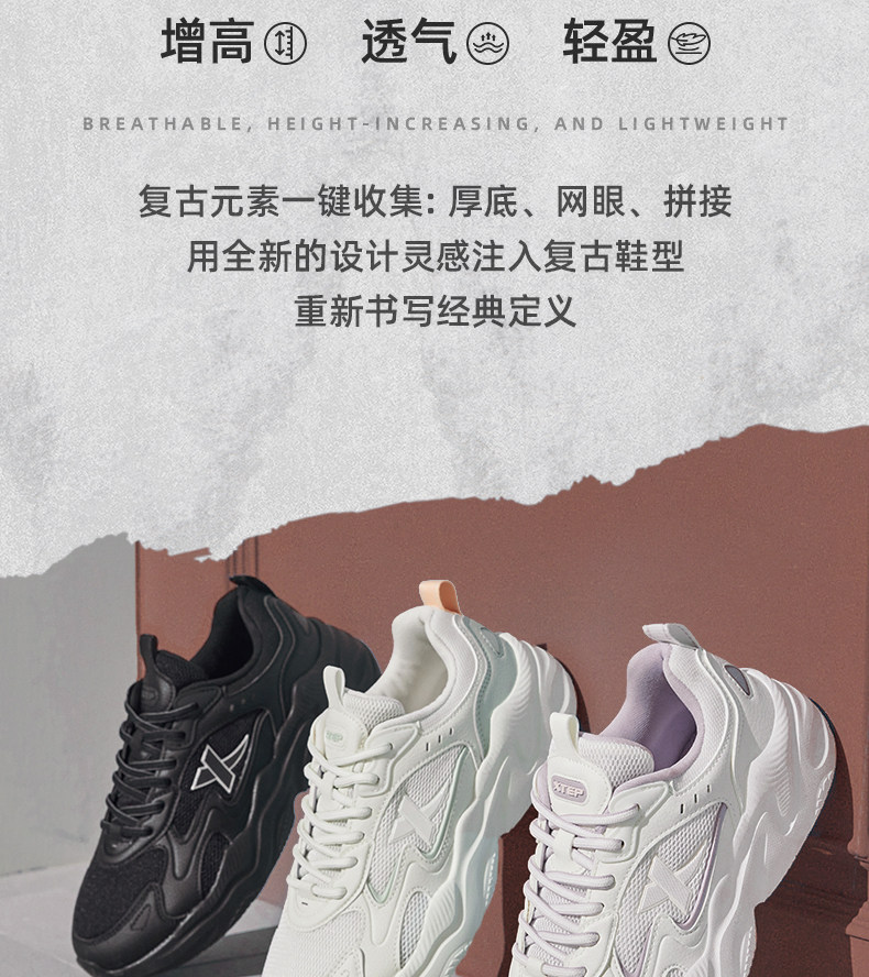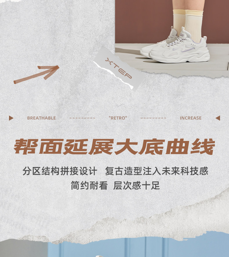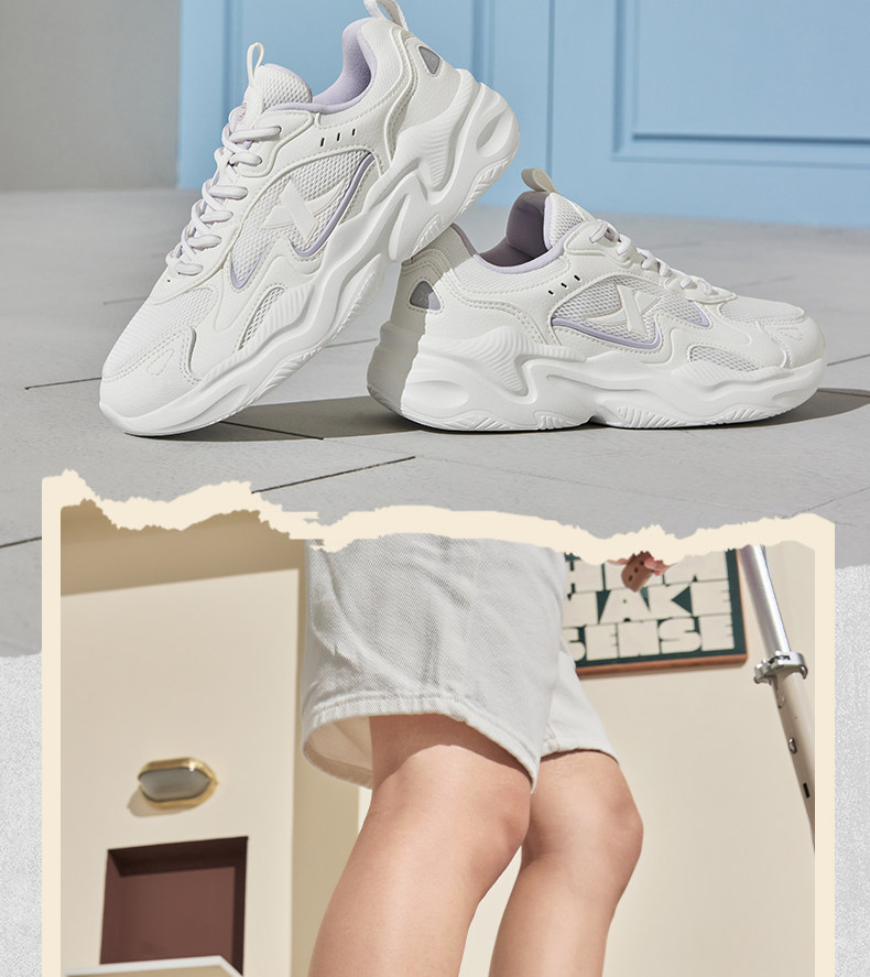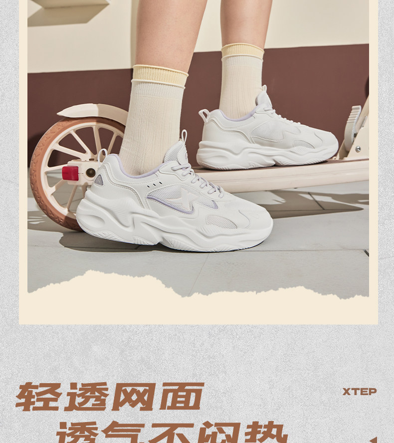 Xtep Starfire Casual Shoes for Women, Summer Mesh Breathable Thick-Soled Lightweight Sneakers, Retro Running Shoes, Dad Shoes