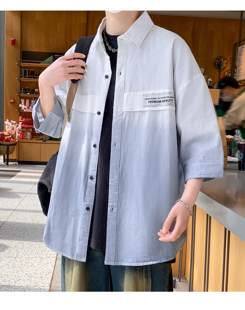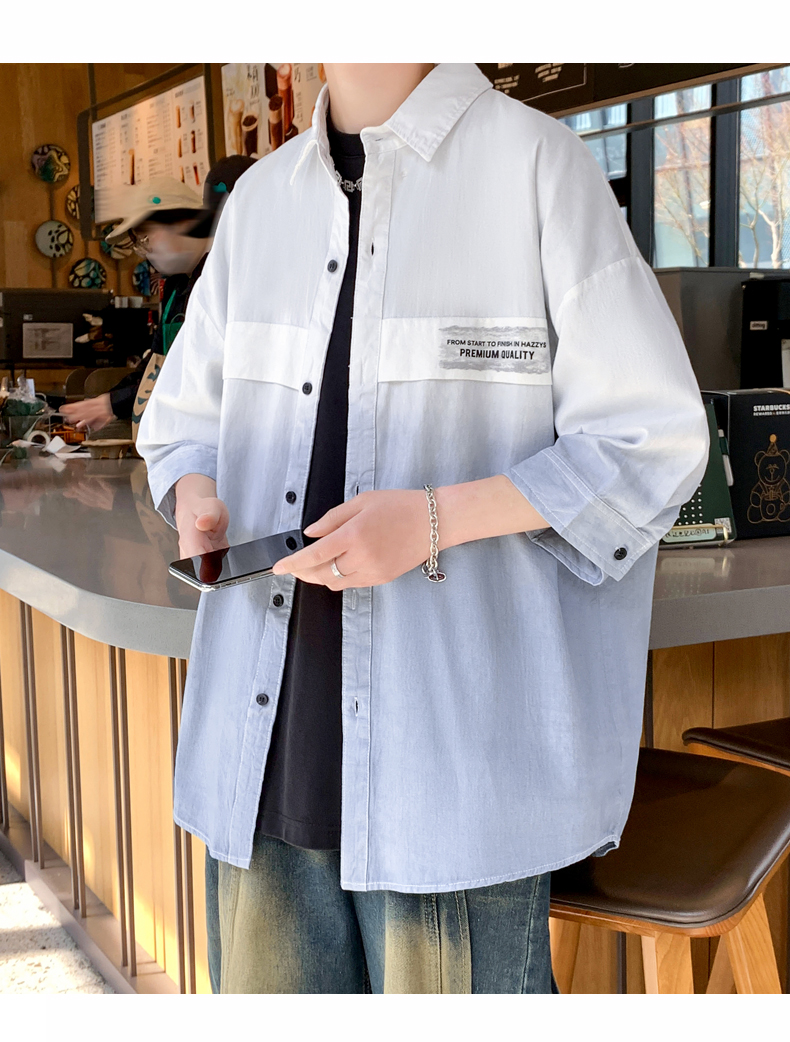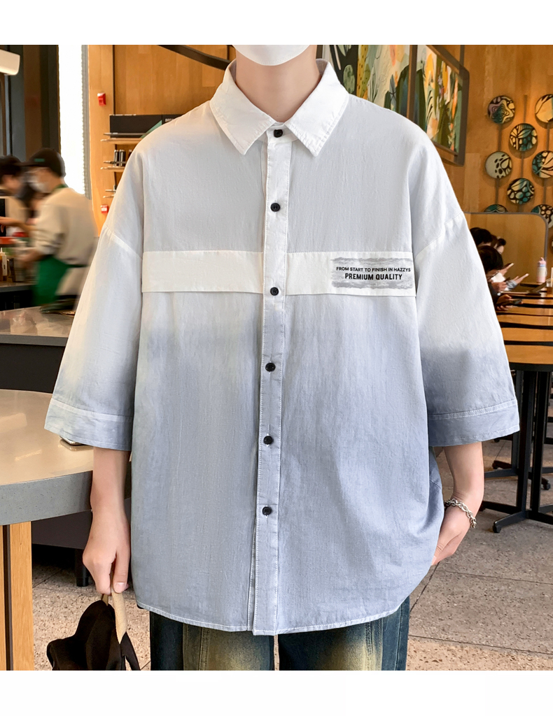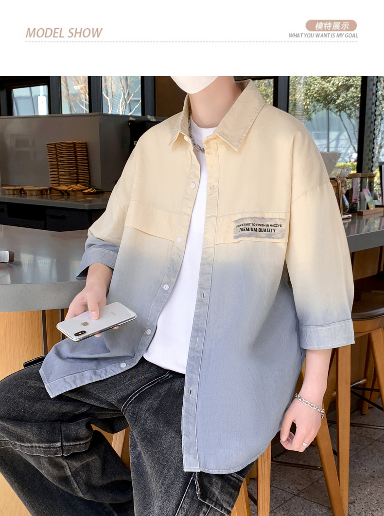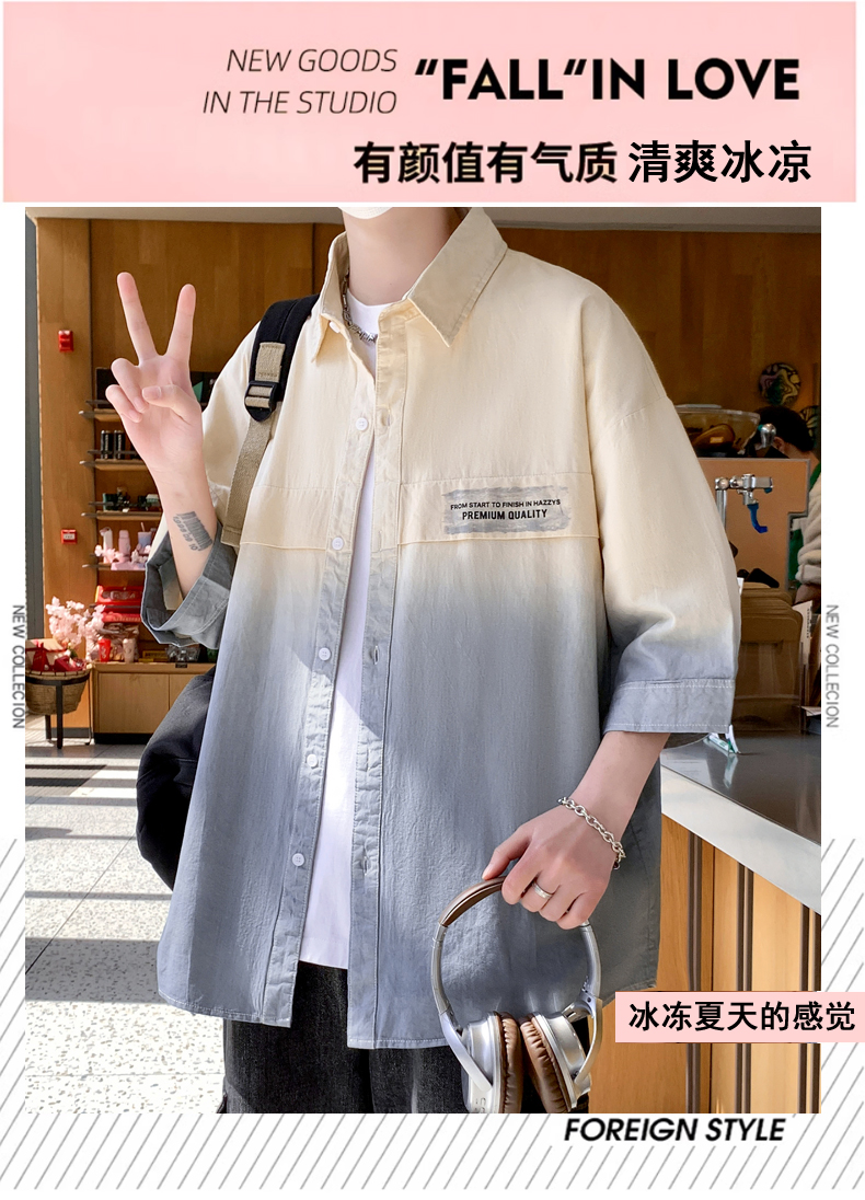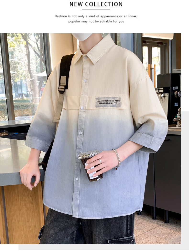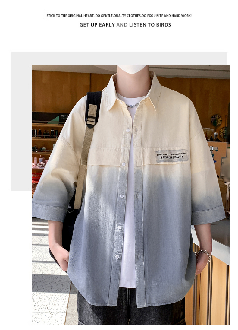 Gradient Color Short-Sleeved Shirt for Men, Summer Youth Trendy Brand Three-Quarter Sleeve Shirt, Junior High School and High School Student Sun Protection Jacket