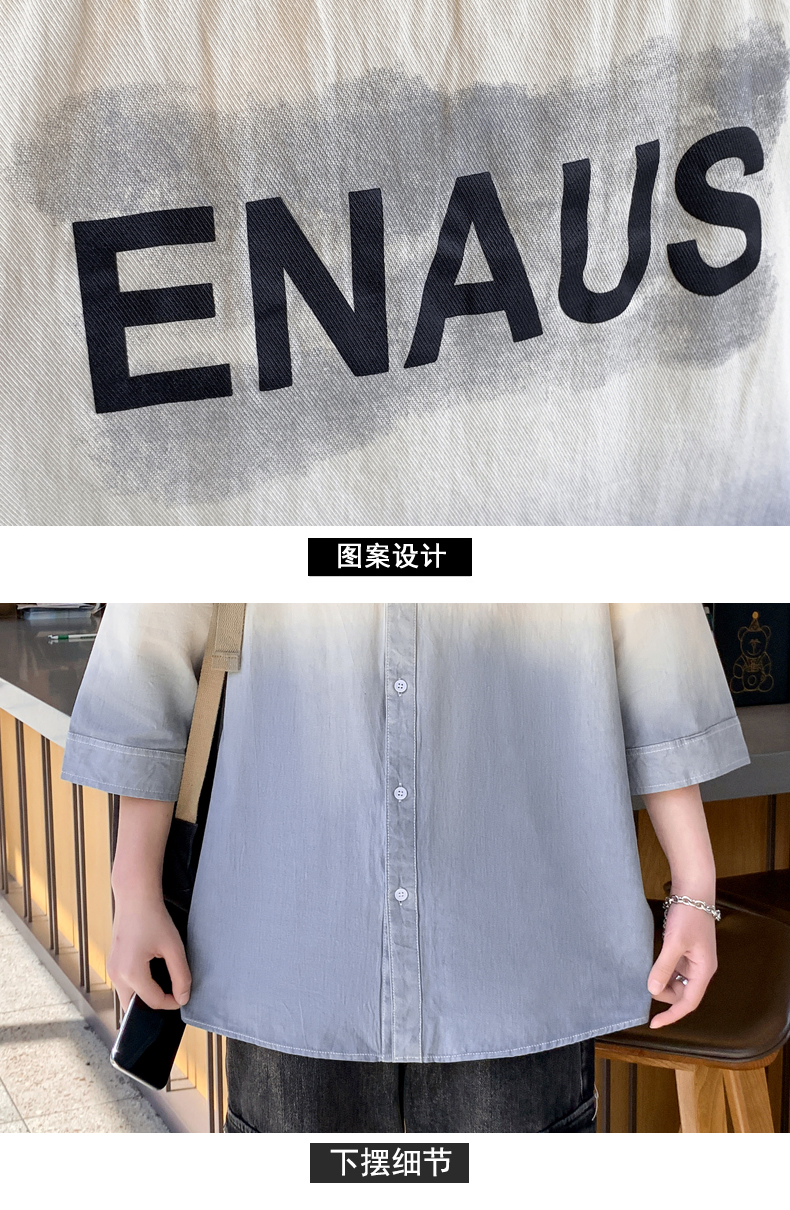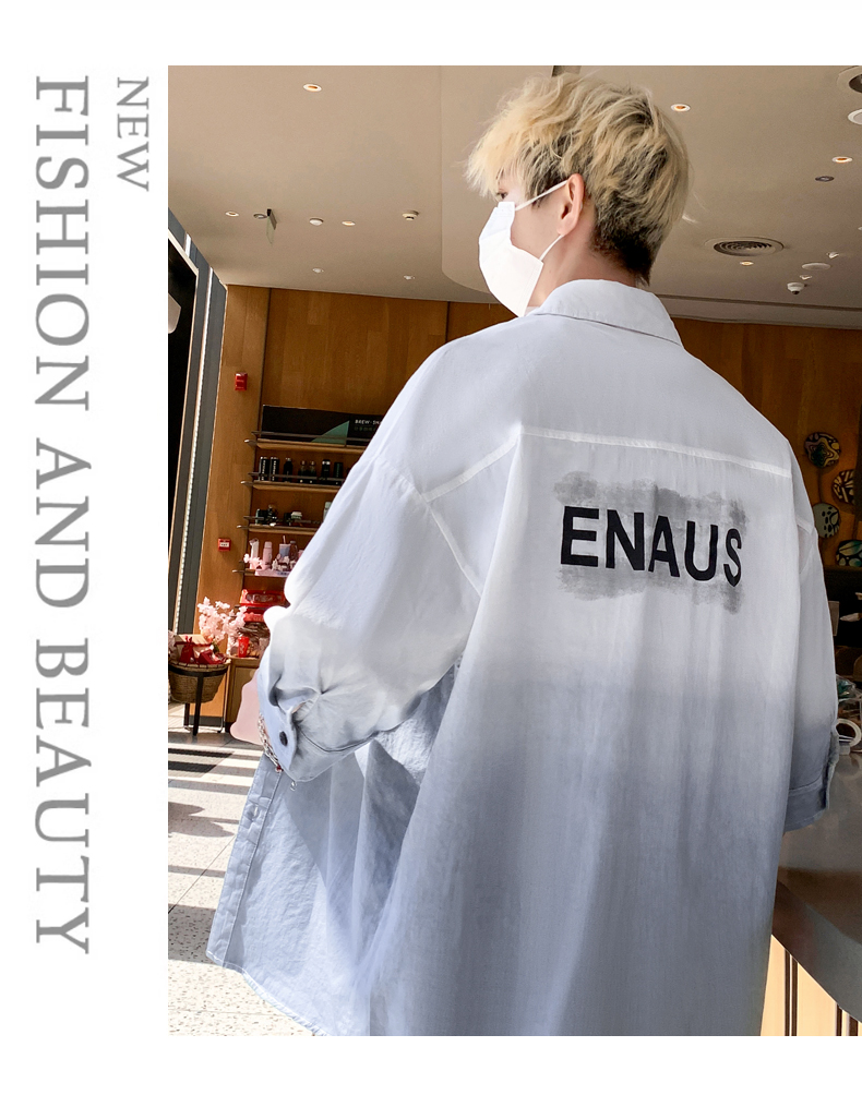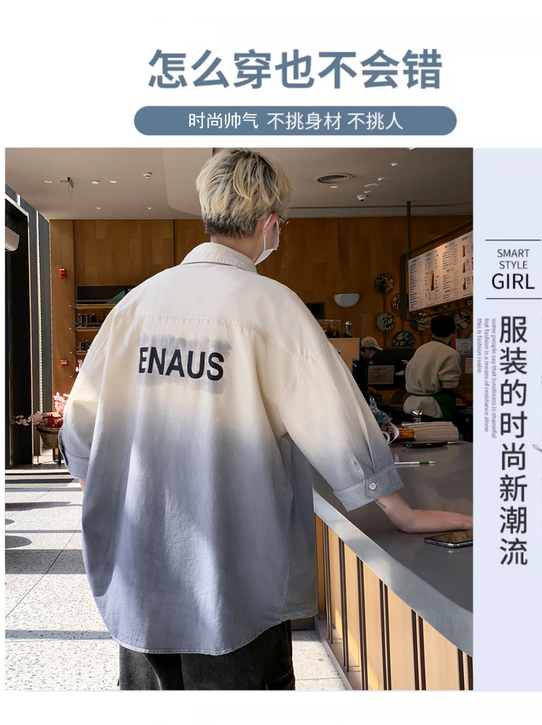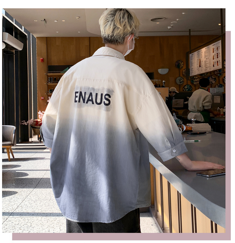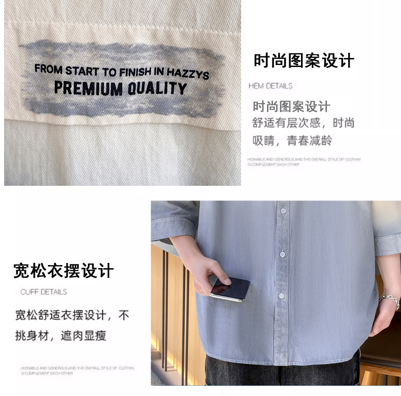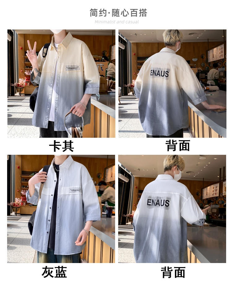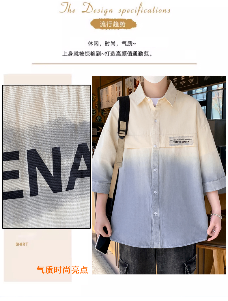 Gradient Color Short-Sleeved Shirt for Men, Summer Youth Trendy Brand Three-Quarter Sleeve Shirt, Junior High School and High School Student Sun Protection Jacket