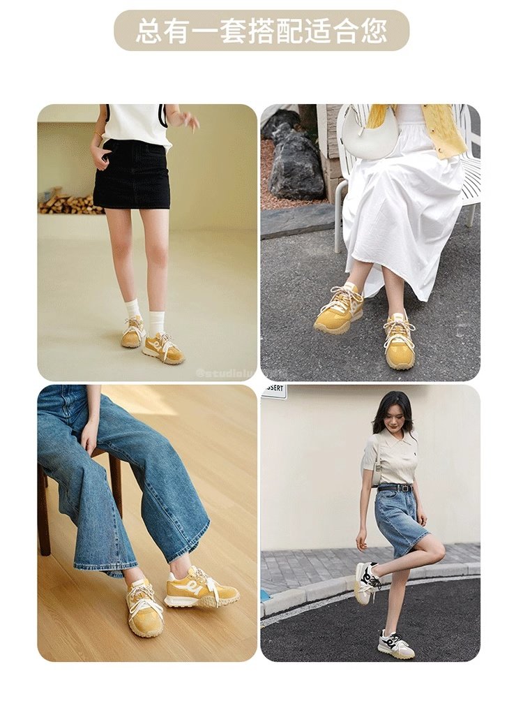 Hong Kong Genuine Leather Thick-Soled Height-Increasing Lightweight Sports Training Shoes for Women 2025 Spring and Summer New Style Casual Shoes for Petite Individuals