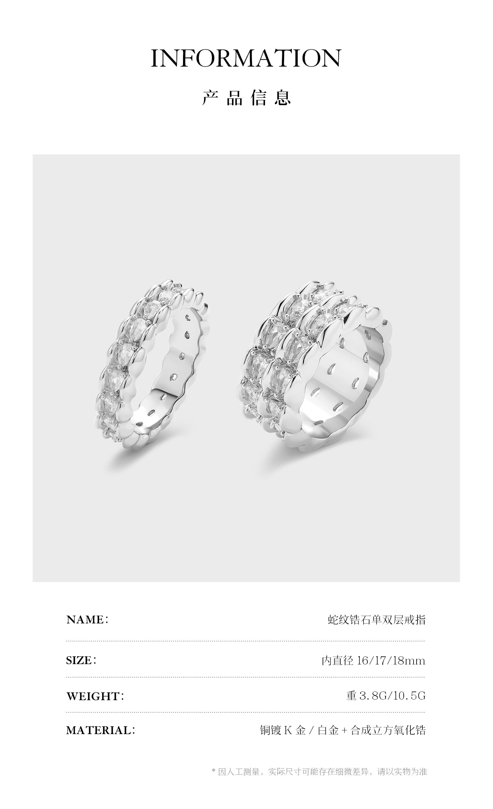 Boonee Alus Snake Pattern Zircon Ring for Women, Gold Color, Light Luxury, High-End Feel, Niche Design, Exaggerated Index Finger Ring