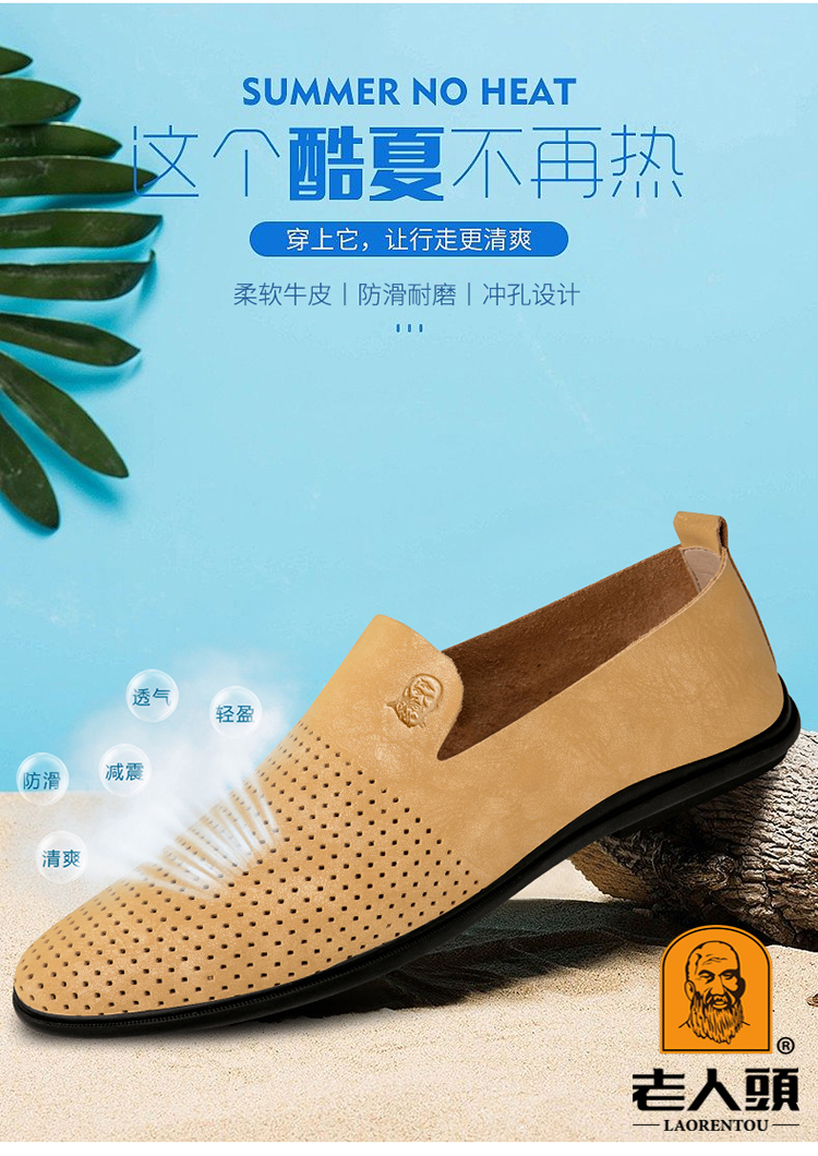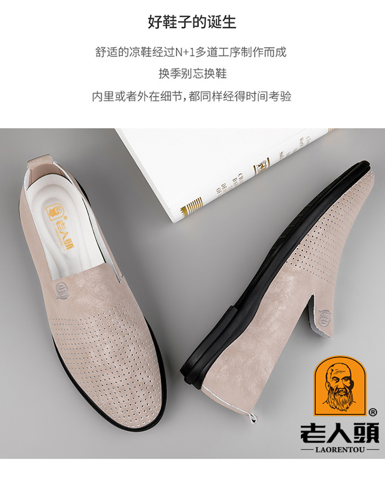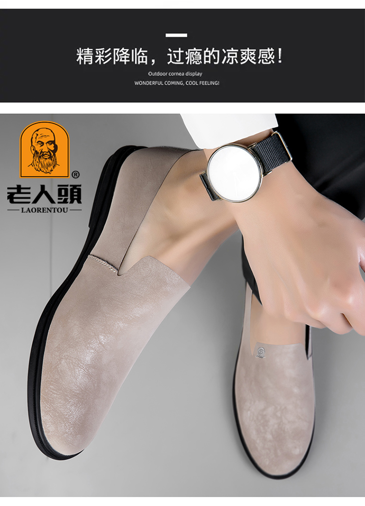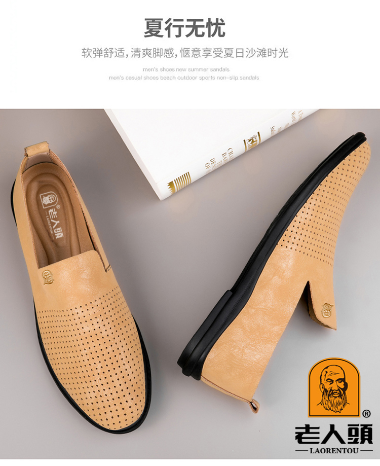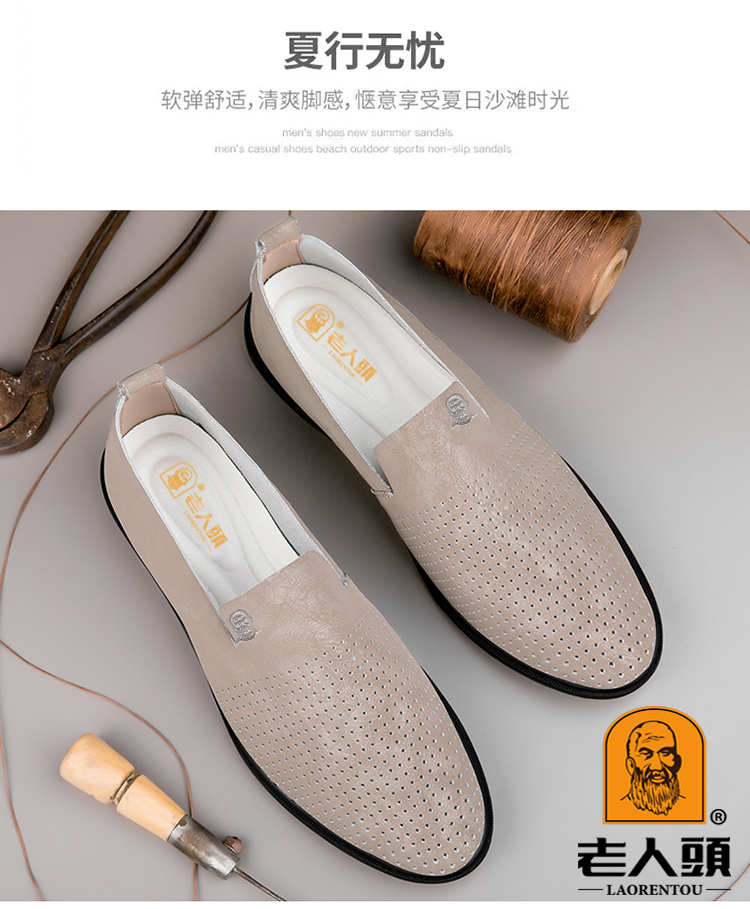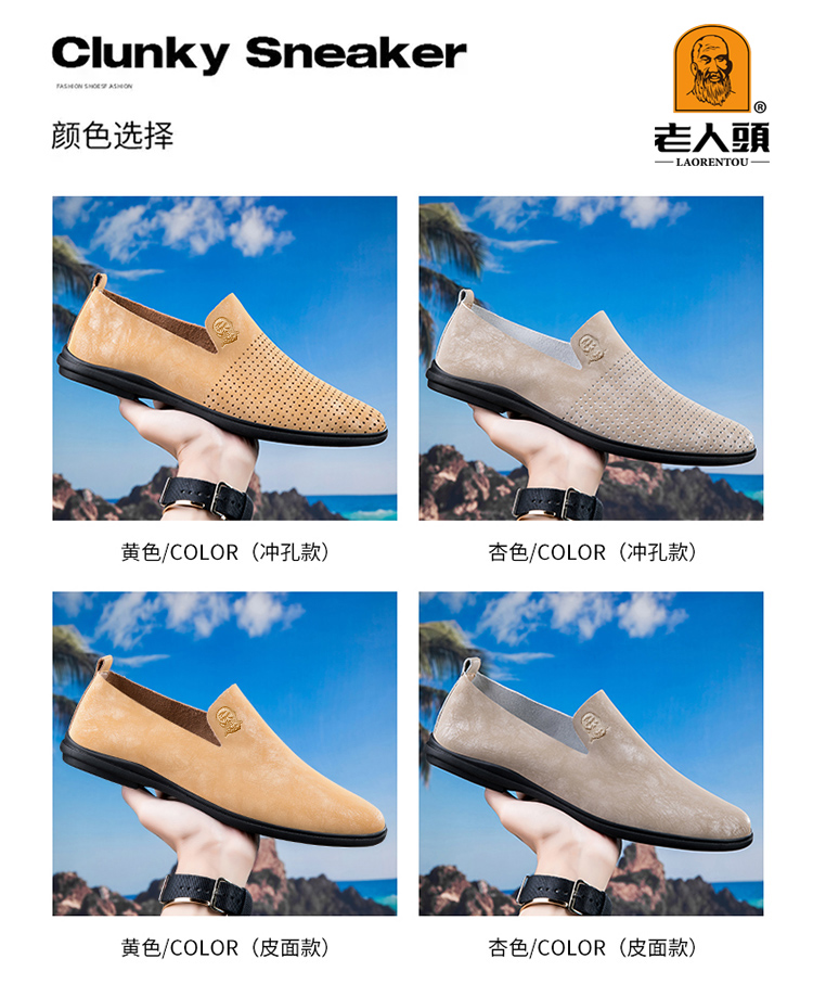 Men's Shoes for the Elderly, Summer Breathable Perforated Casual Leather Shoes, Fashionable Loafers, Slip-On Driving Shoes for Men