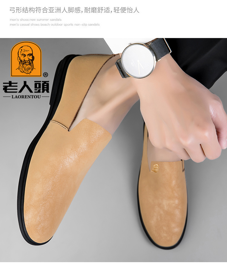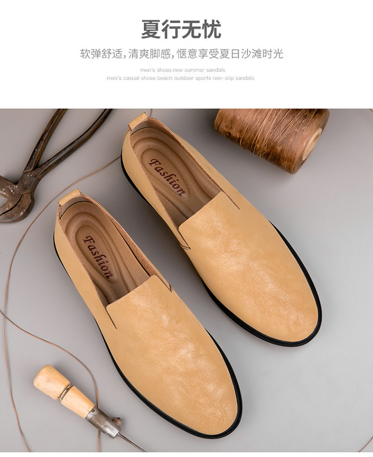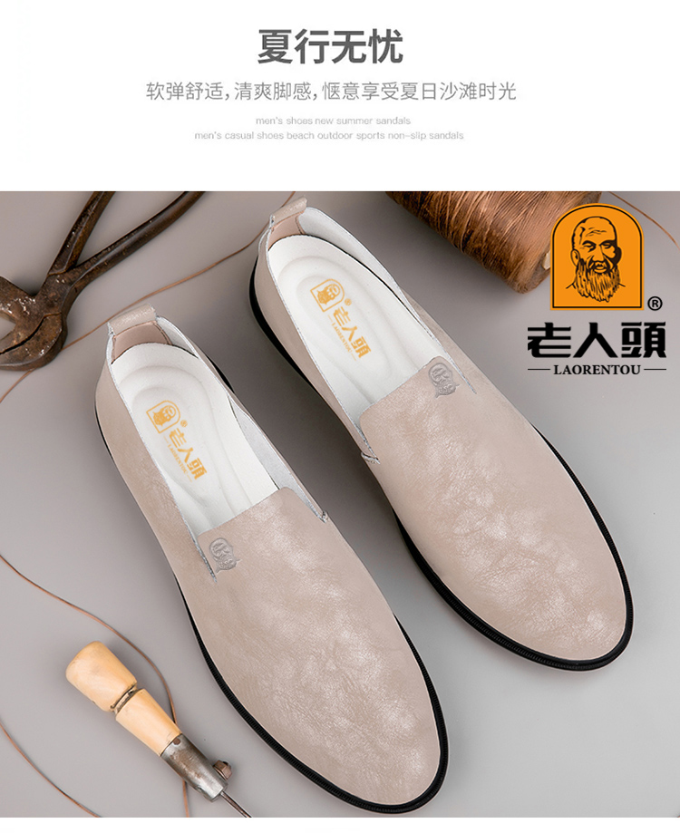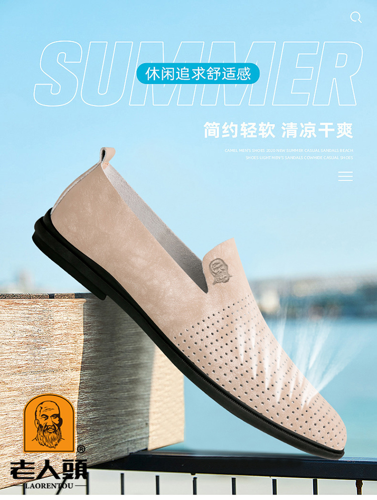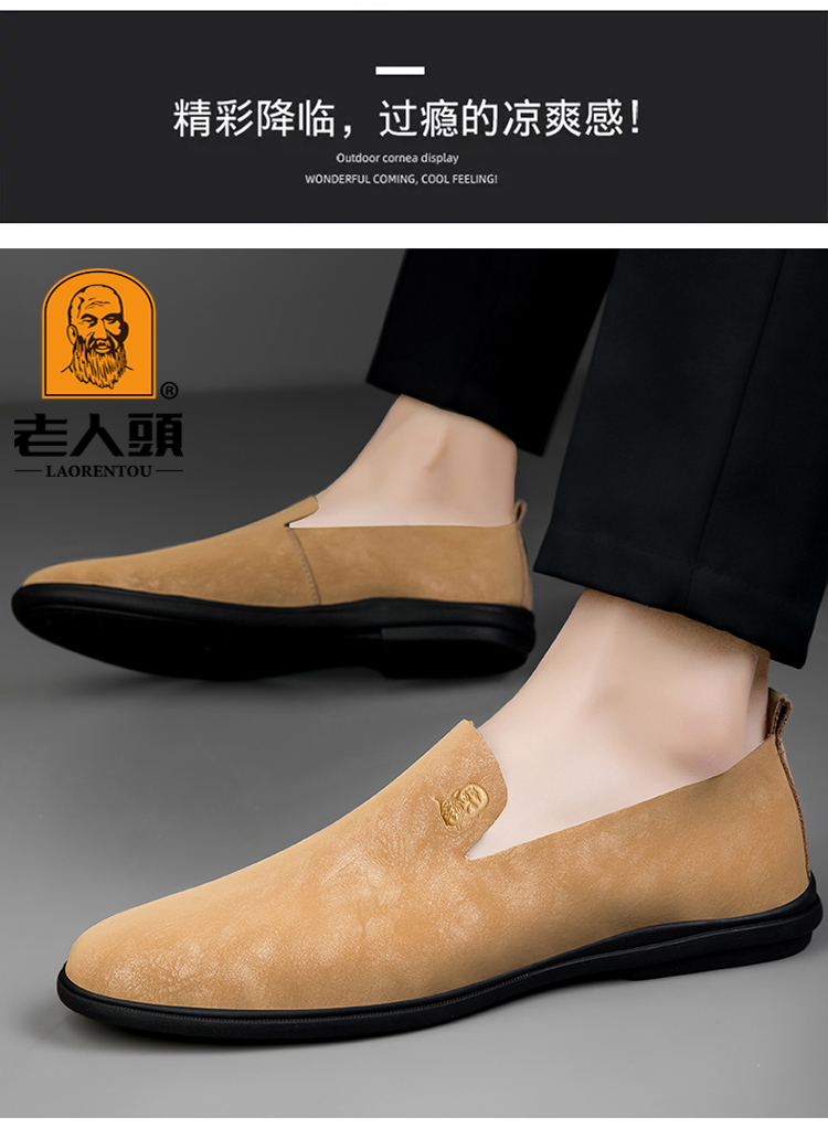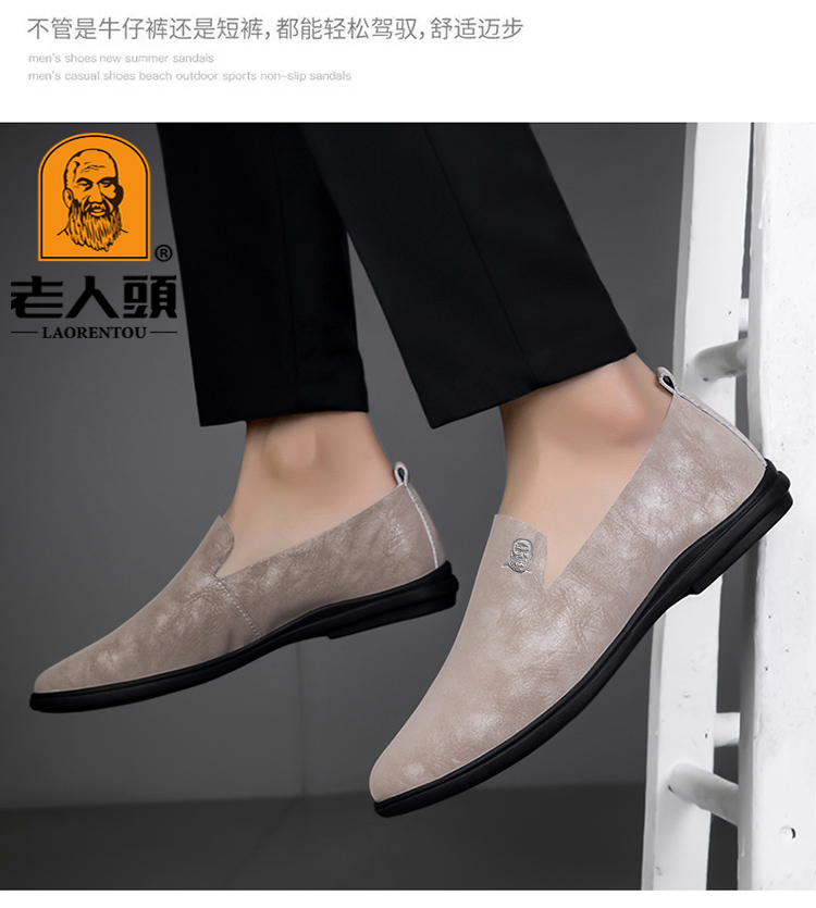 Men's Shoes for the Elderly, Summer Breathable Perforated Casual Leather Shoes, Fashionable Loafers, Slip-On Driving Shoes for Men