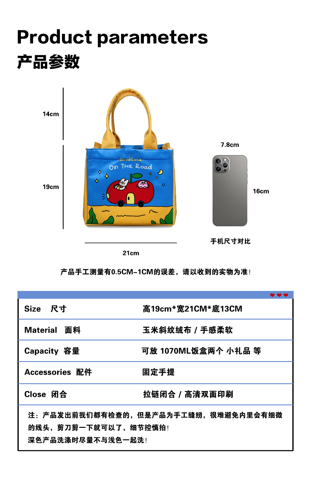 Canvas Bag, Cartoon Gift Bag, Cute Gift Bag, Lunch Box, Insulated Bag, Hand Bag, Work and Commuting Handbag