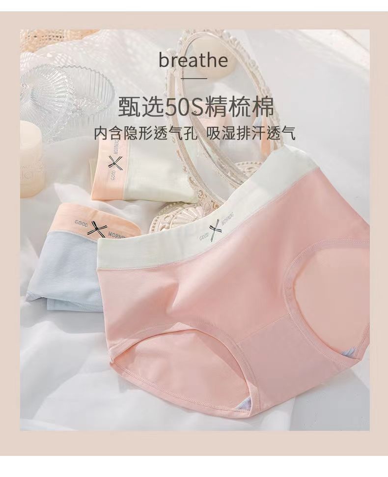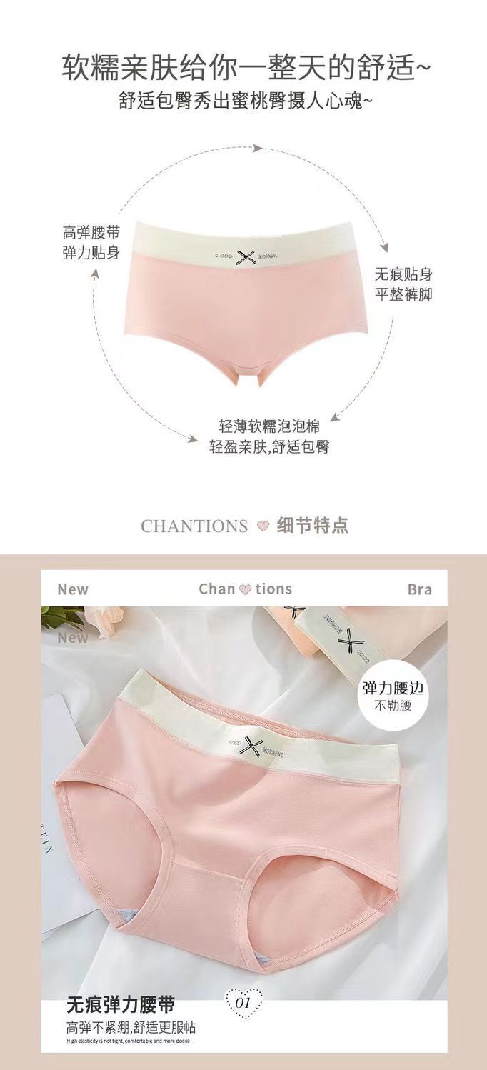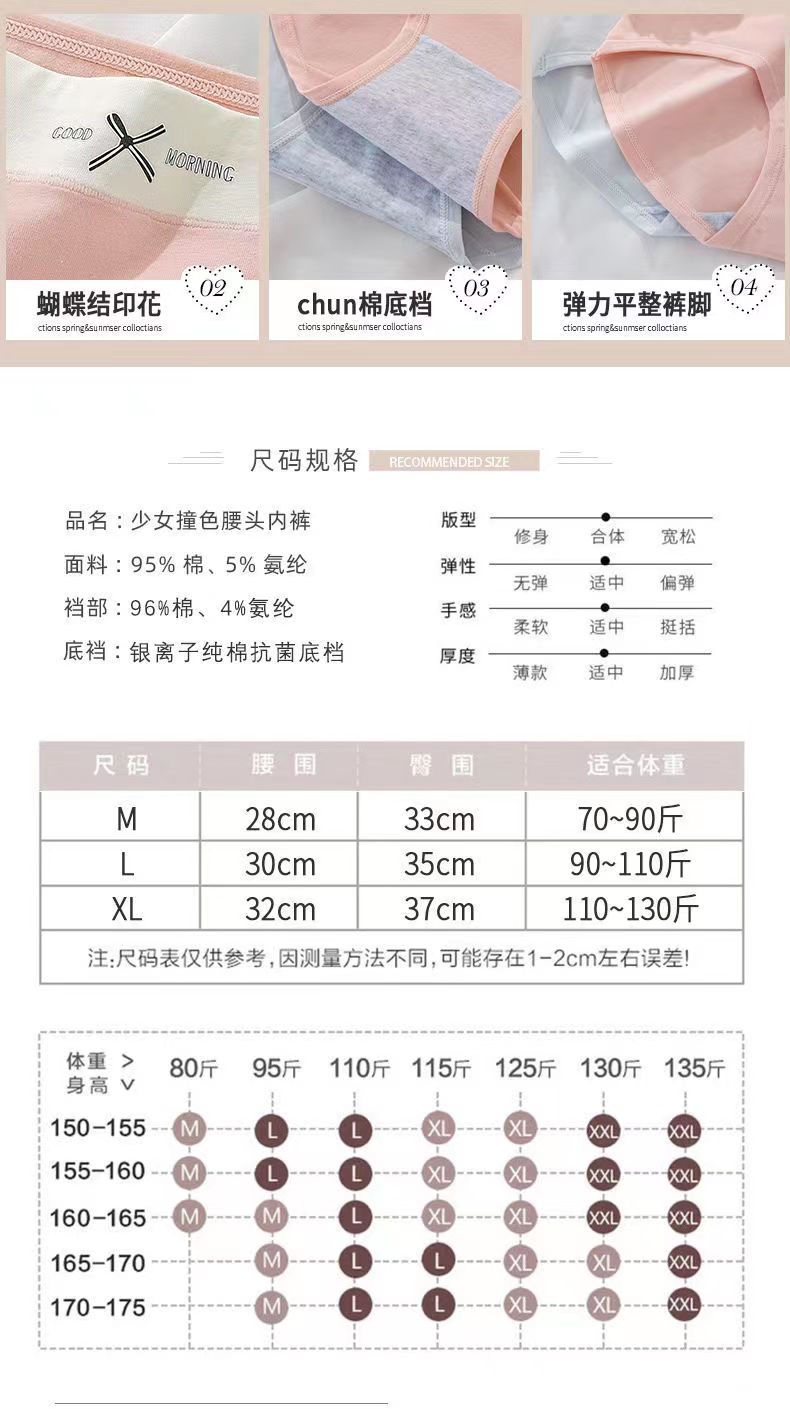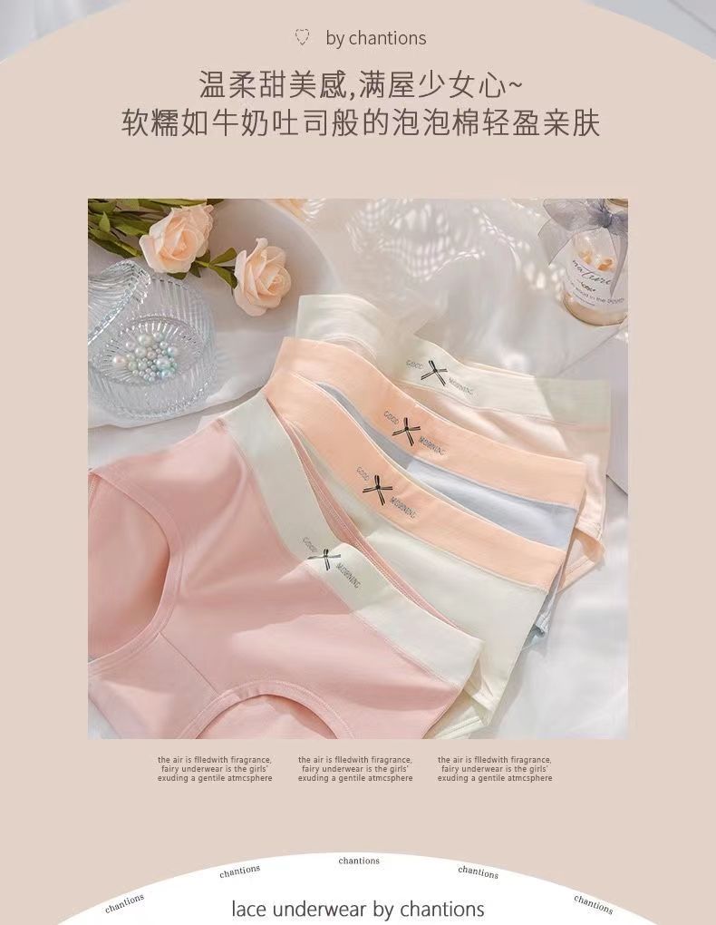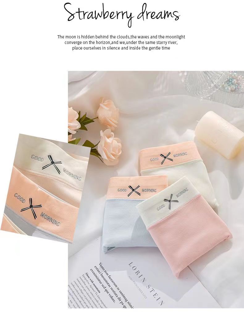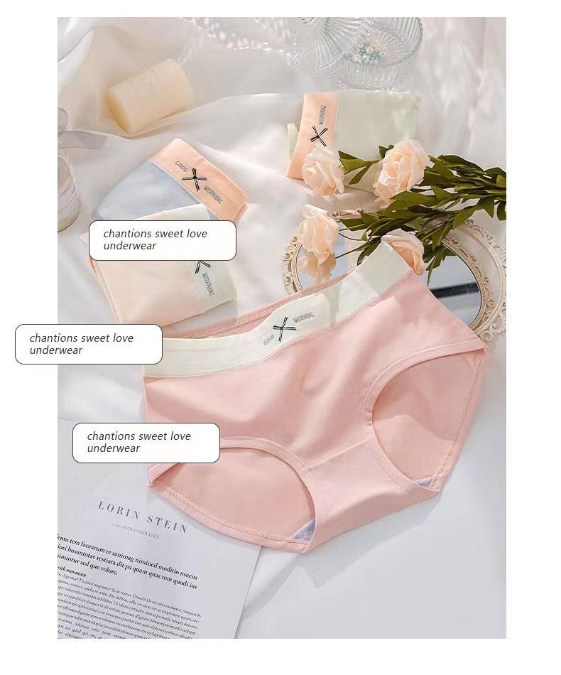 100% Pure Cotton Mid-Waist Comfortable Underwear for Women, All-Cotton Antibacterial Crotch, Seamless, Skin-Friendly, Breathable, Bow-Knot Women's Briefs