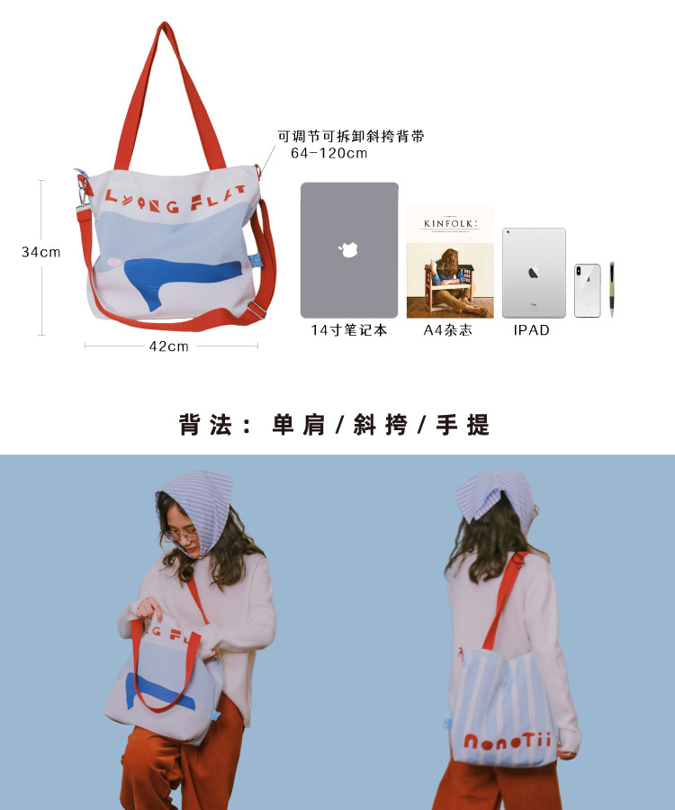 Nonotii《Lay-Flat People》French-Style High-End Lazy Large-Capacity Crossbody Canvas Bag Shoulder Bag Laptop Bag