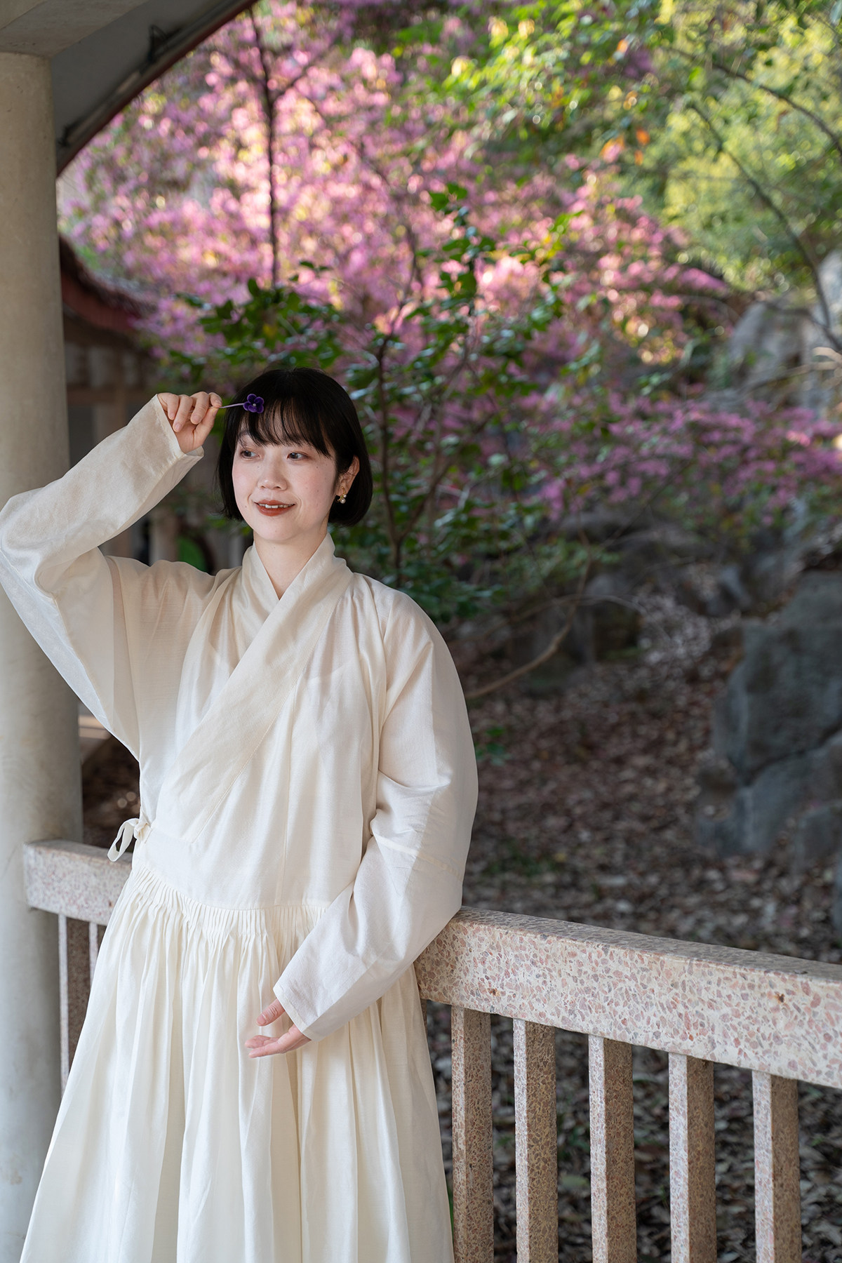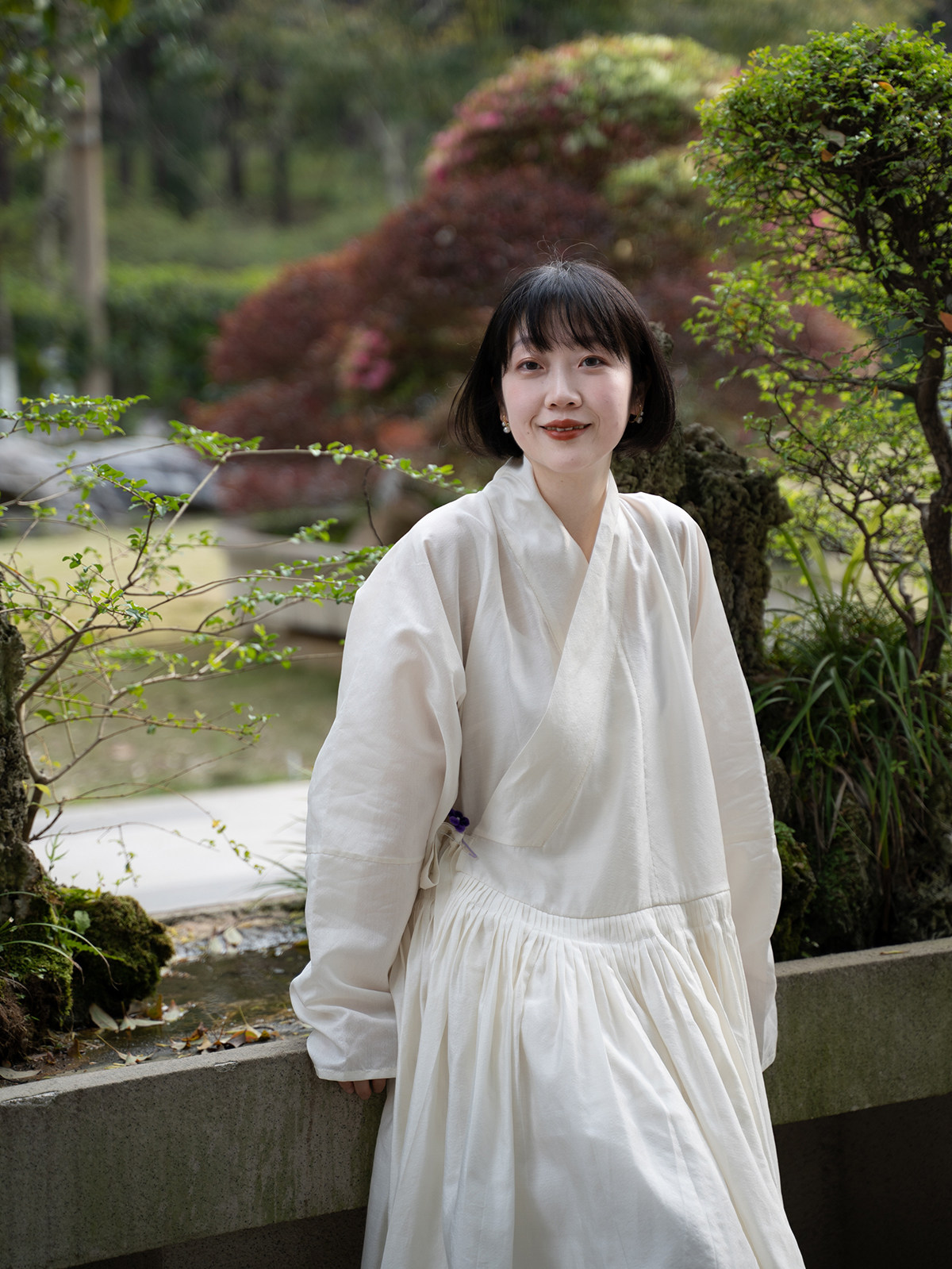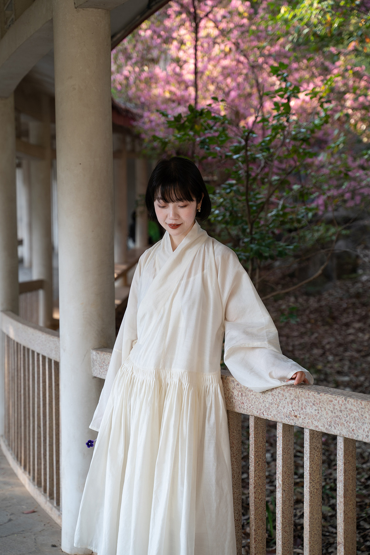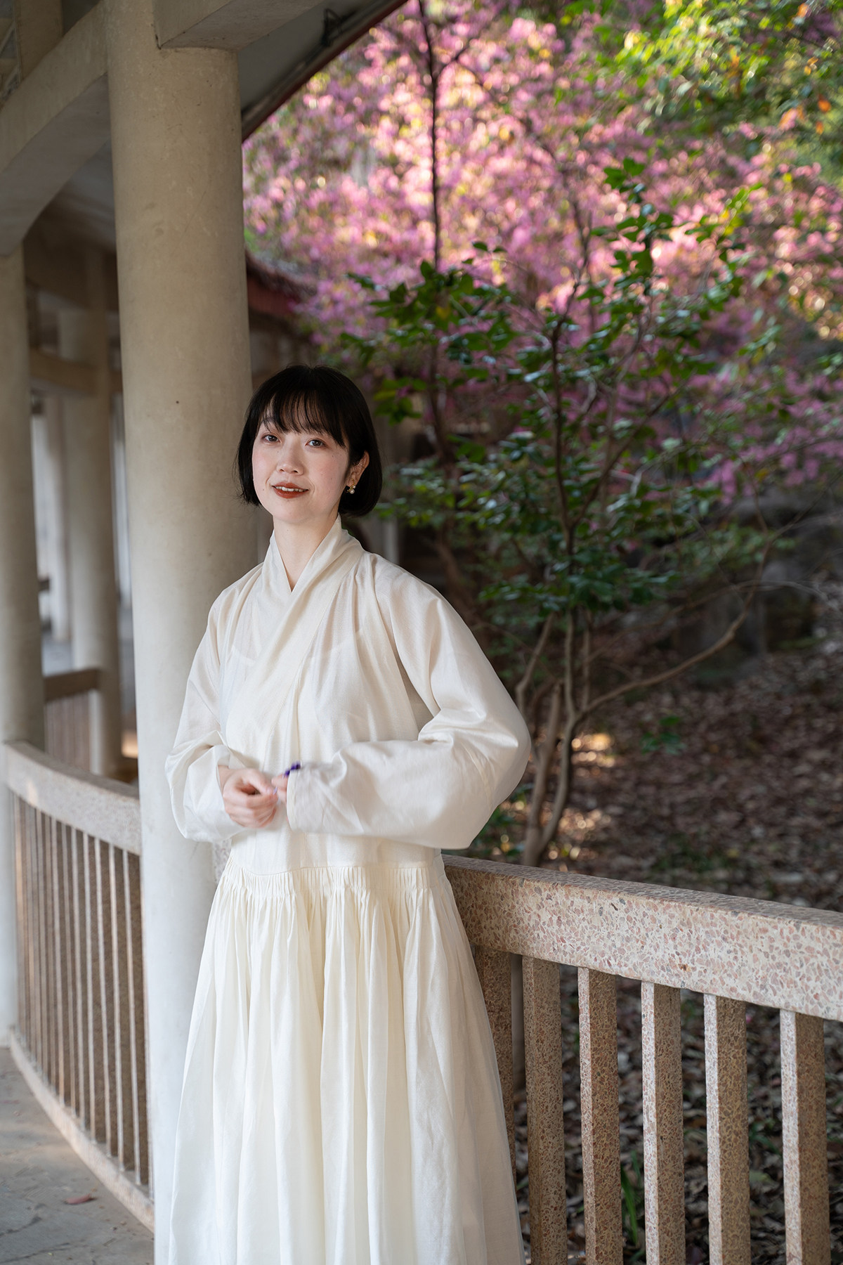 Sansastore Pearl White Silk Linen Lining Chinese Style Cross-Collar Dress Ming Dynasty Hanfu Horizontal Collar