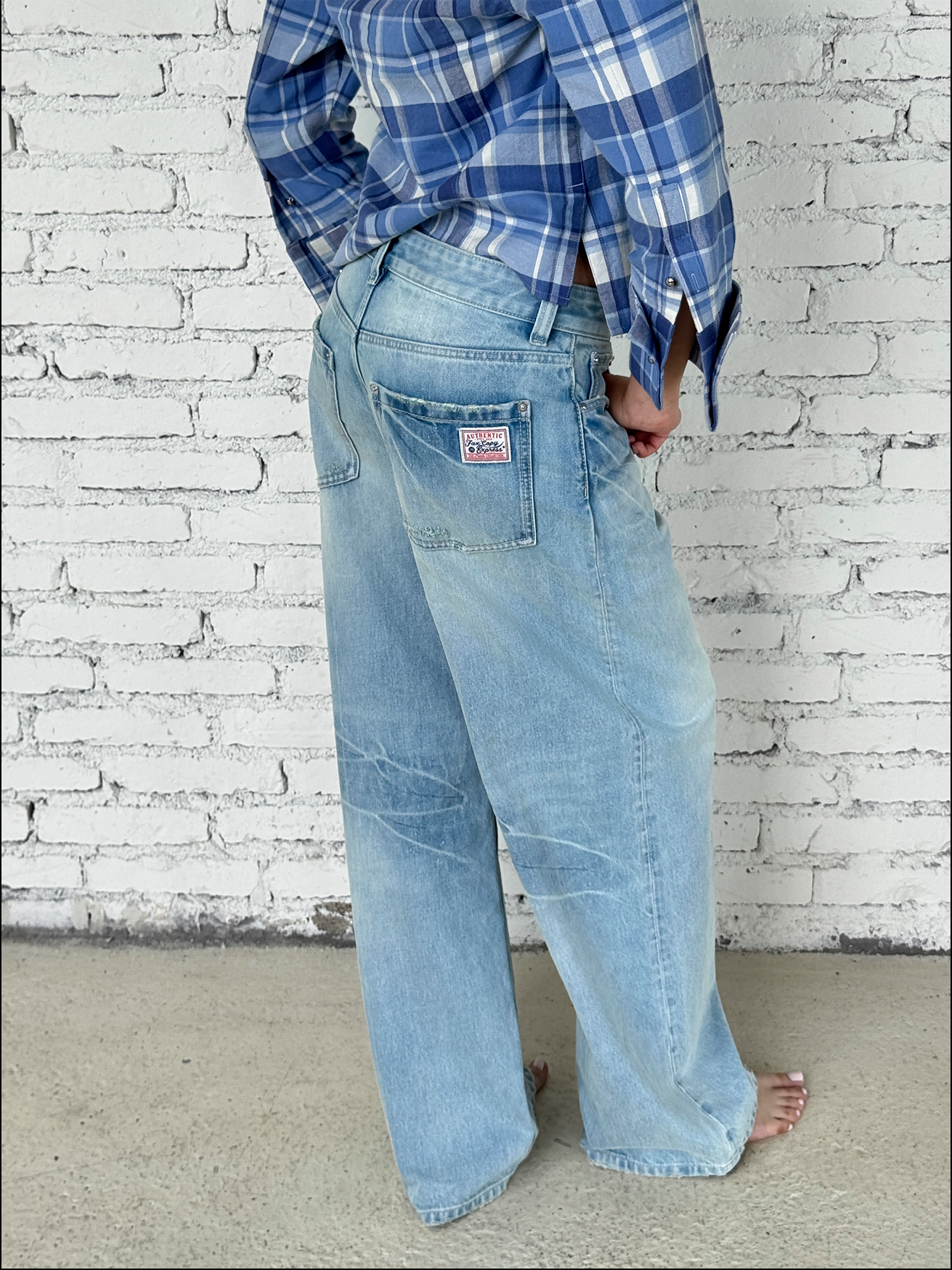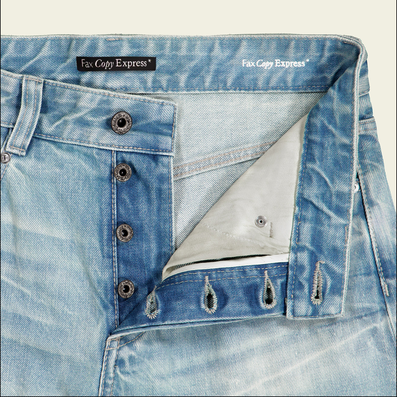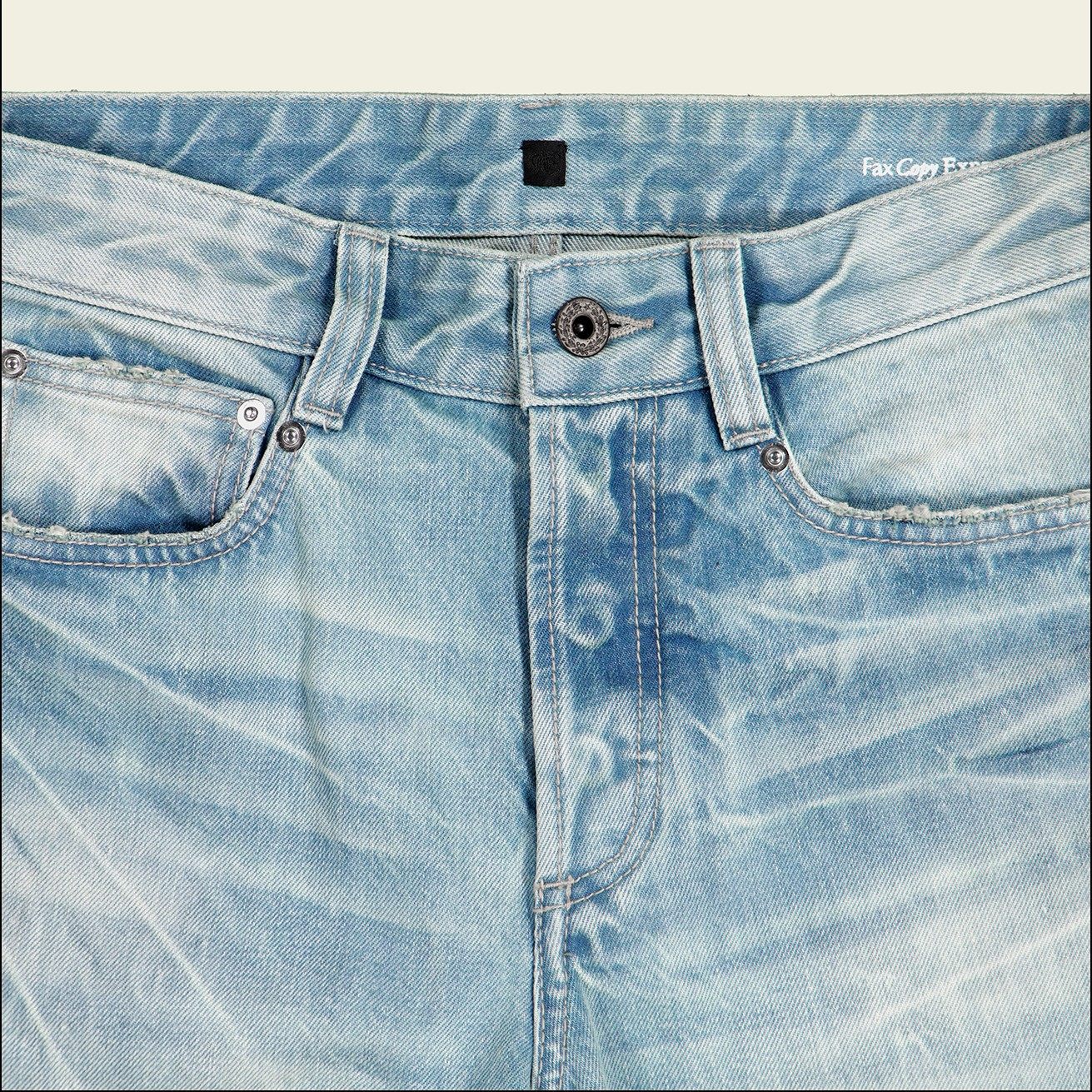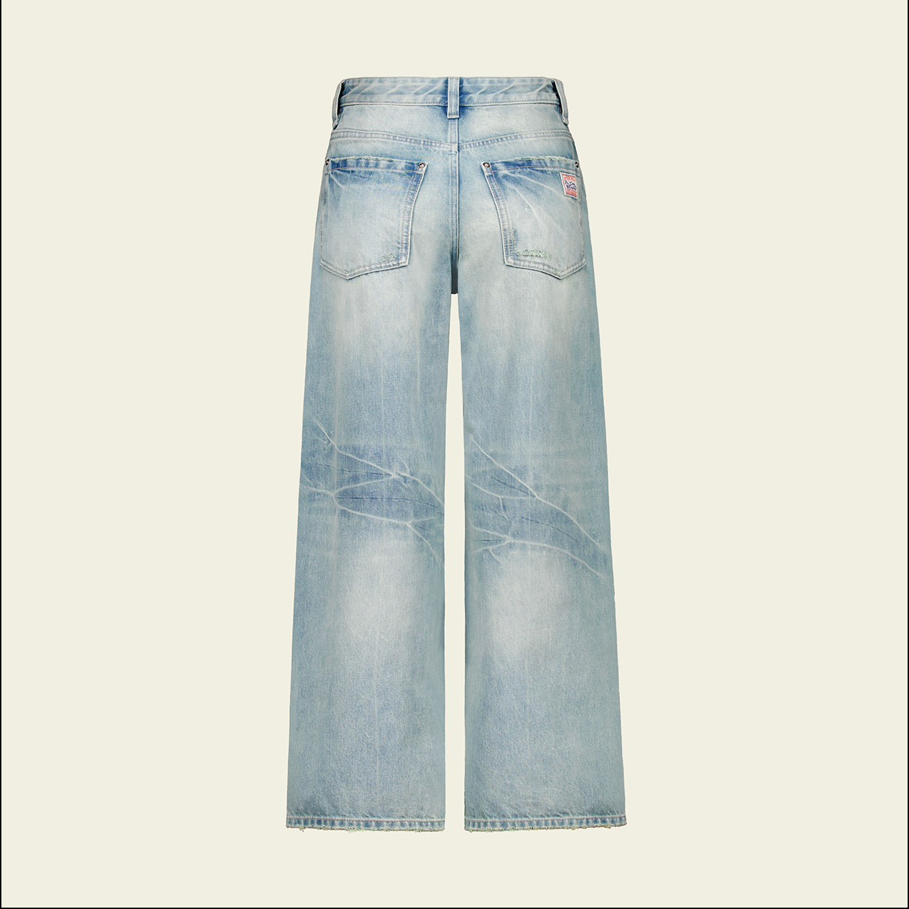 Fax Copy Express* Light Blue Washed Ghost Claw Cat Whiskers Cotton Straight Pants Gardener Denim Trousers