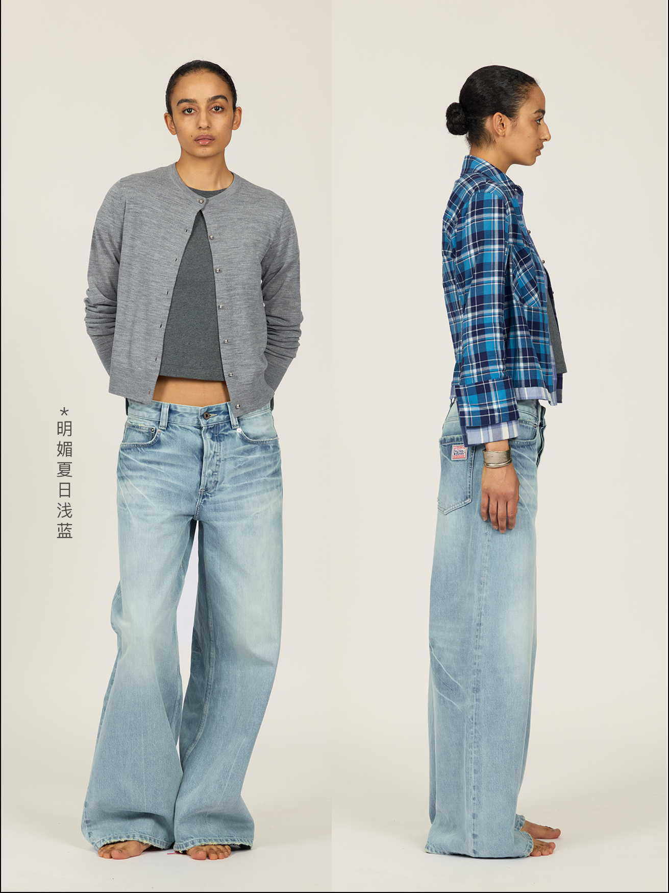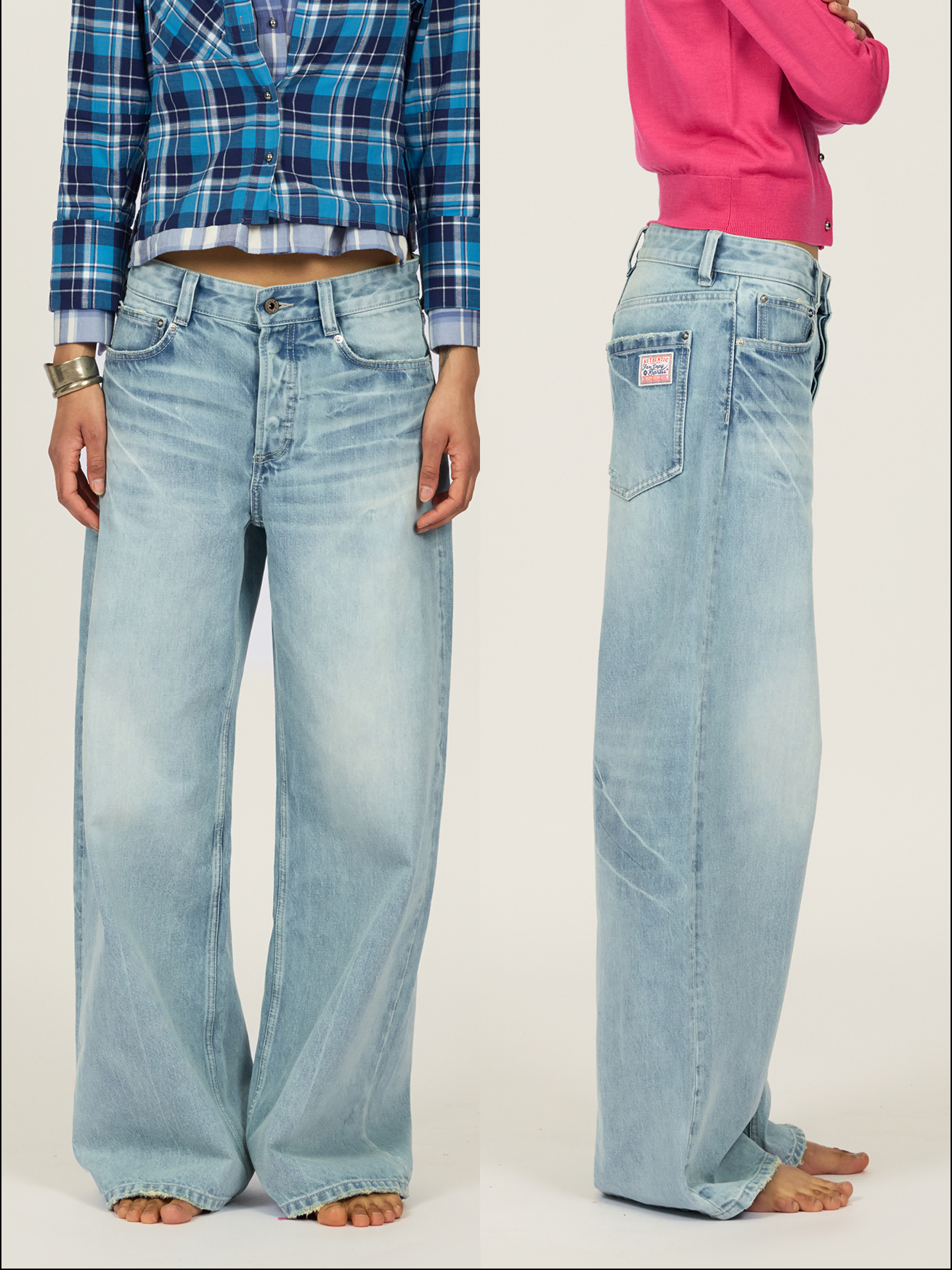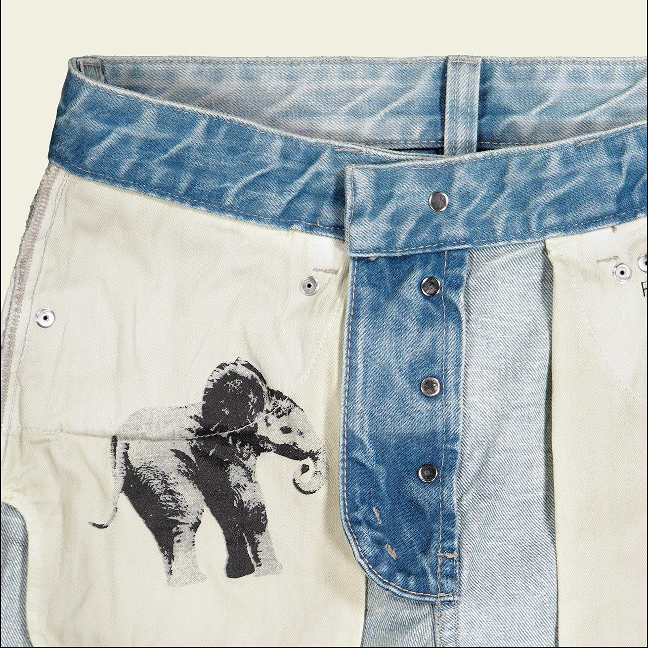 Fax Copy Express* Light Blue Washed Ghost Claw Cat Whiskers Cotton Straight Pants Gardener Denim Trousers