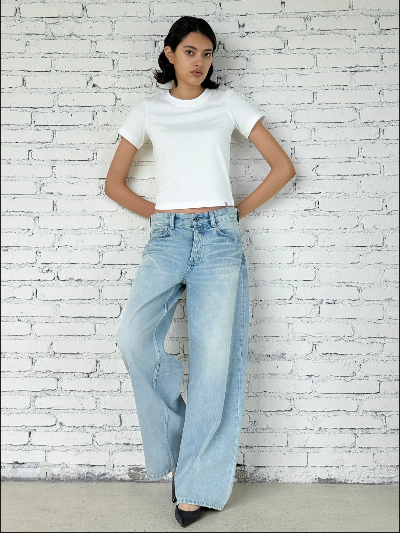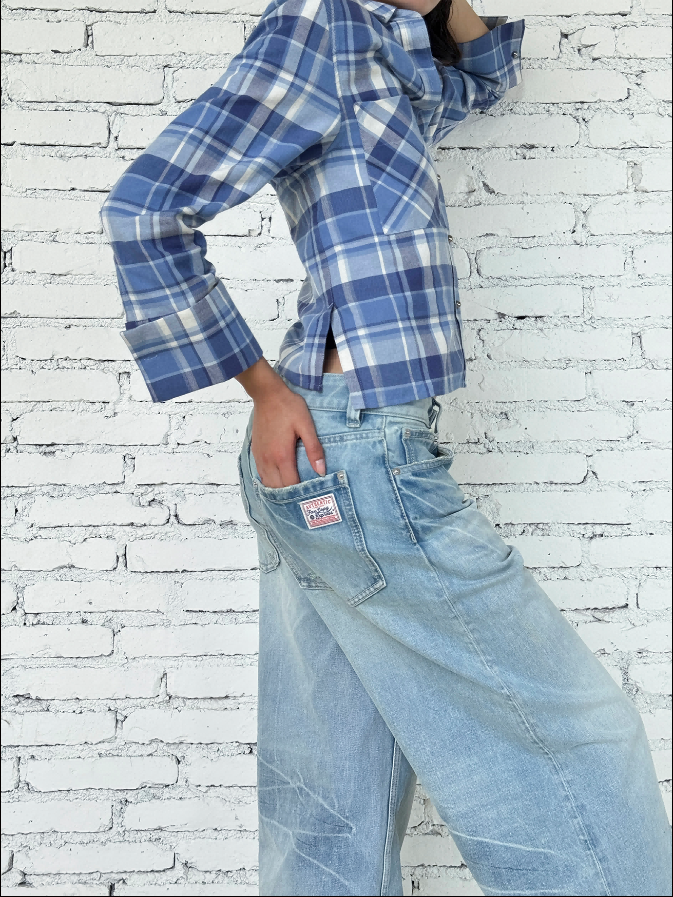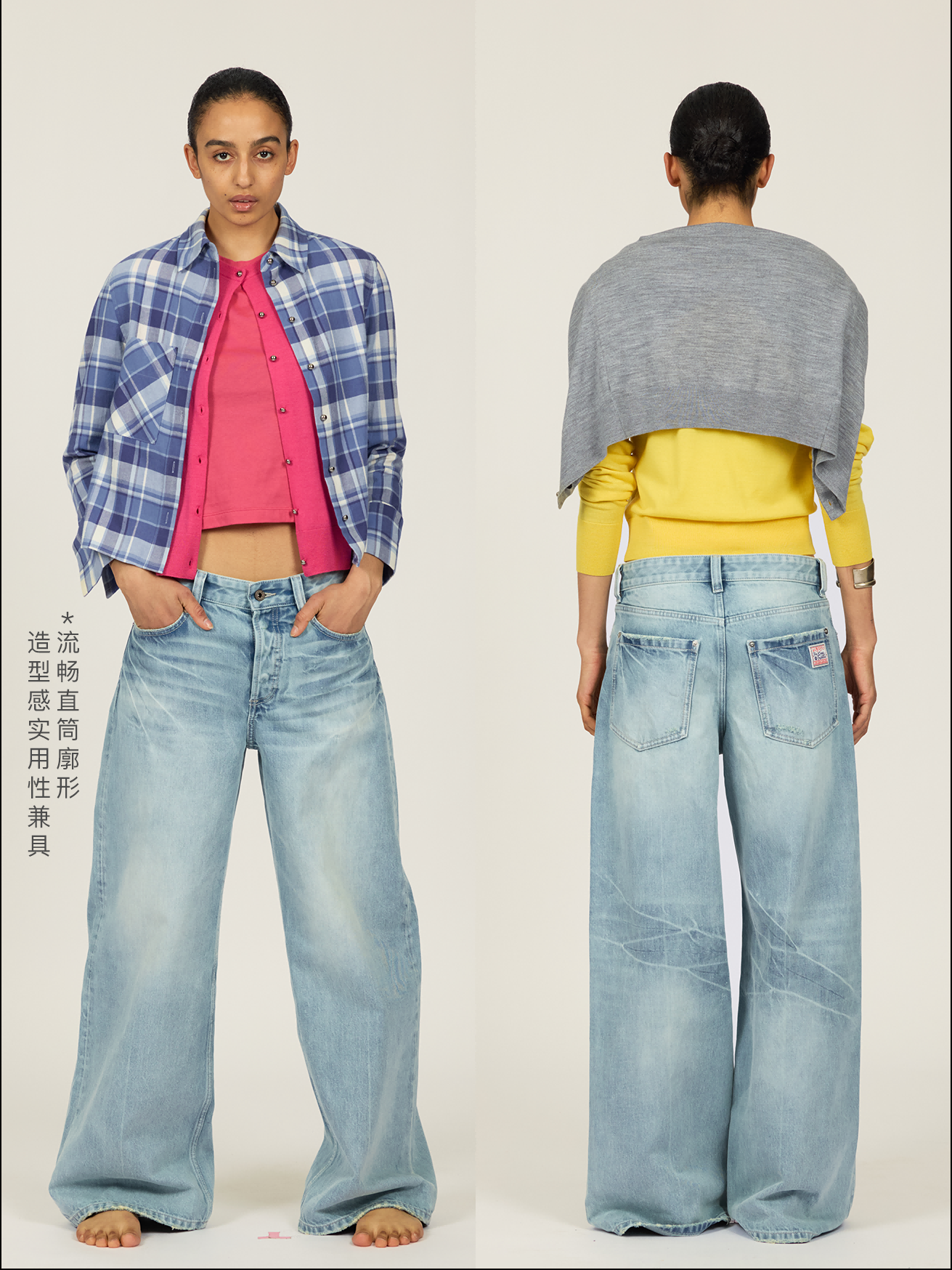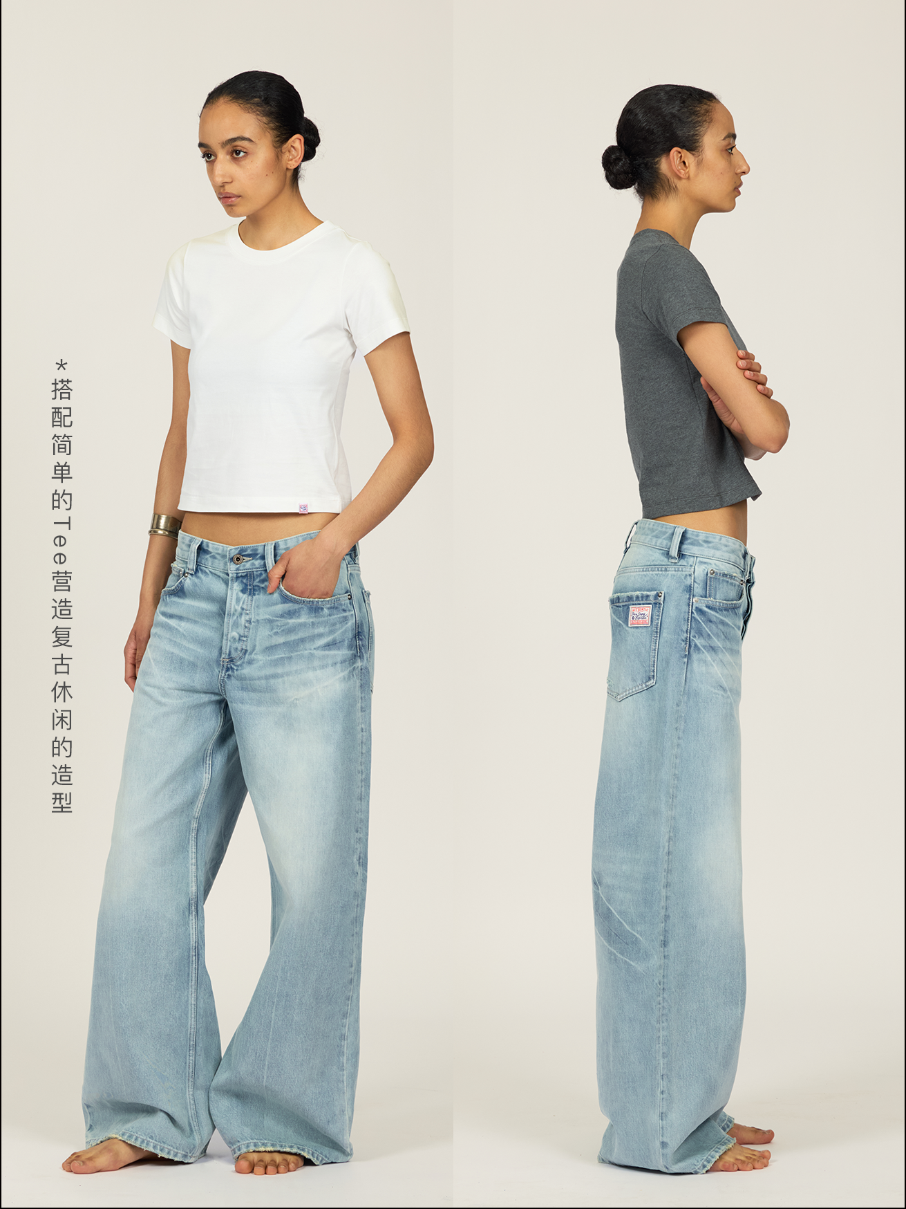 Fax Copy Express* Light Blue Washed Ghost Claw Cat Whiskers Cotton Straight Pants Gardener Denim Trousers