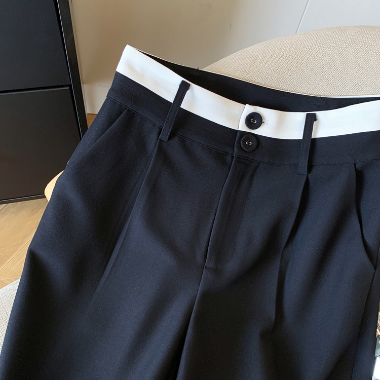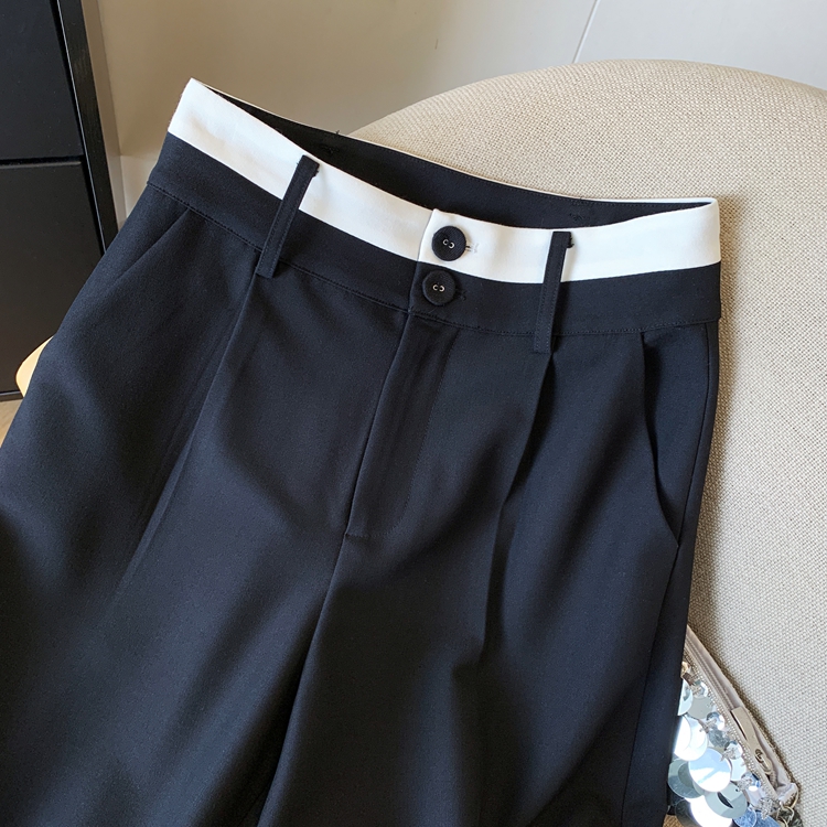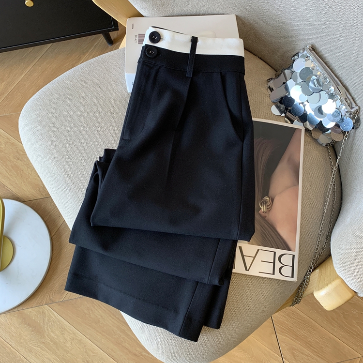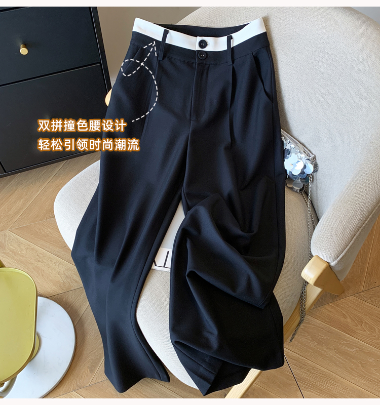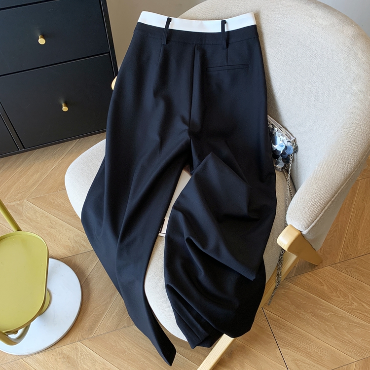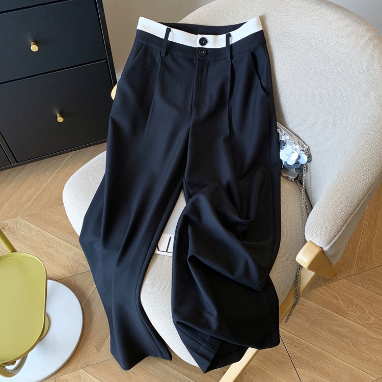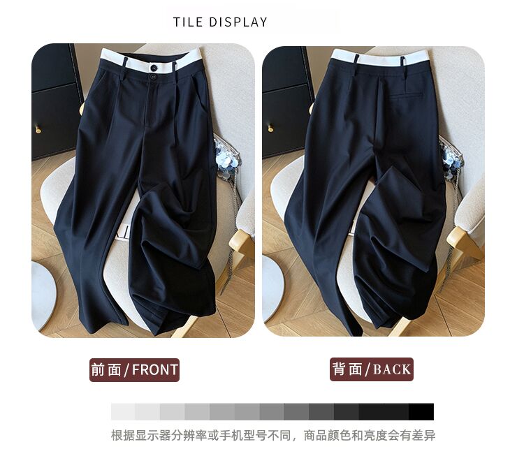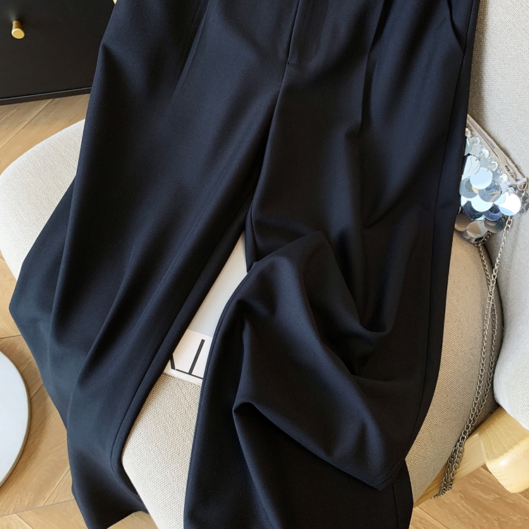 Black High-Waisted Straight-Leg Suit Pants, Wide-Leg Pants, Loose and Lazy Style with Drape, 2025 New High-End Women's Pants