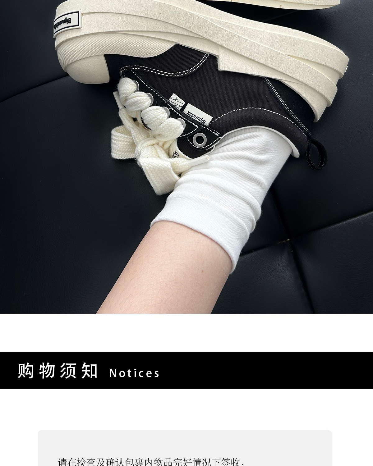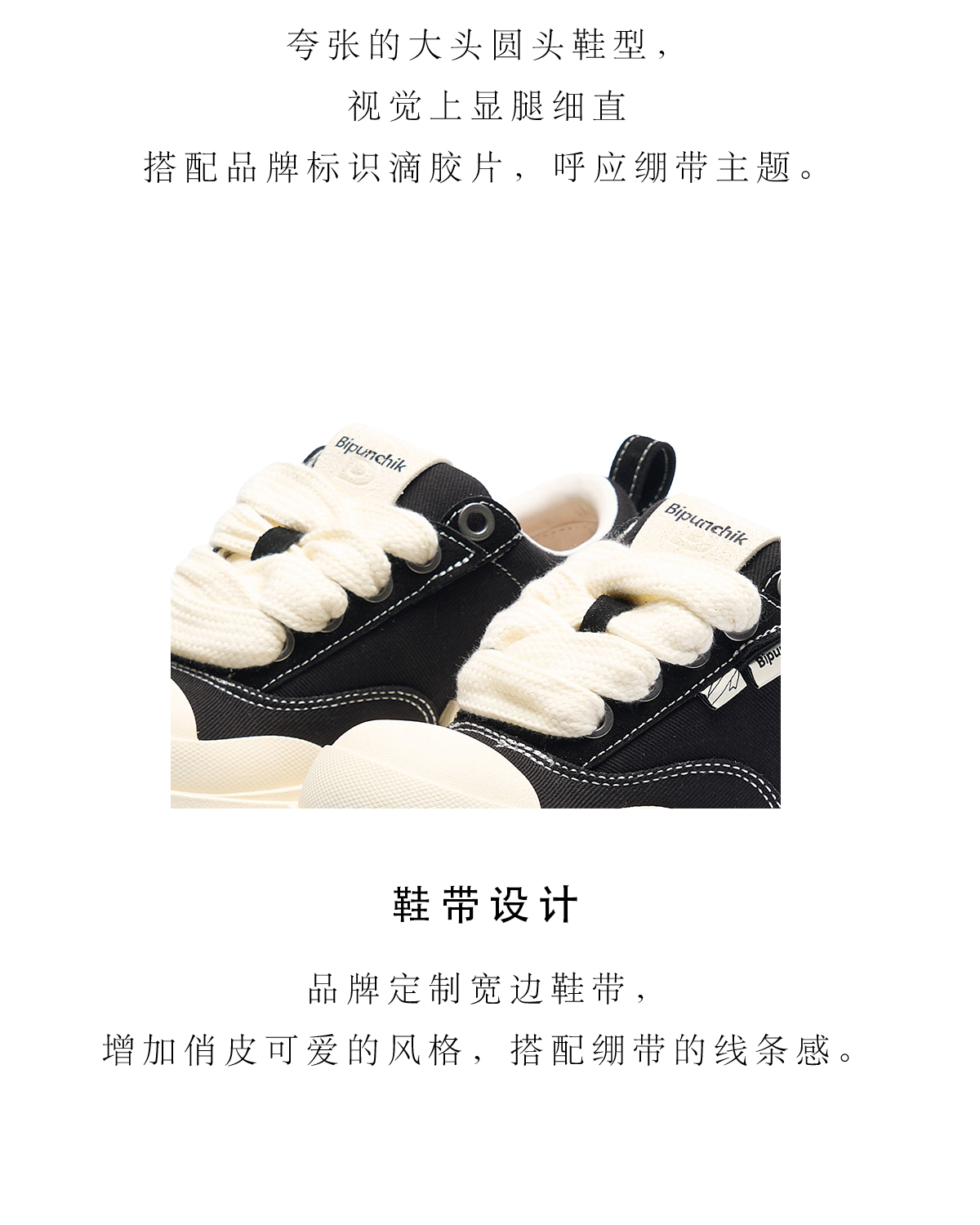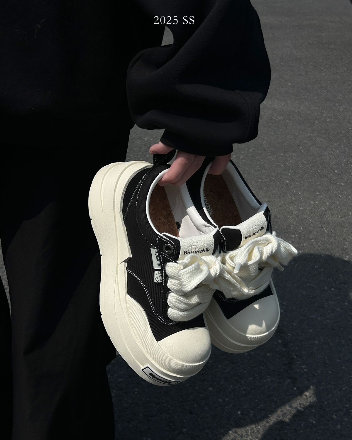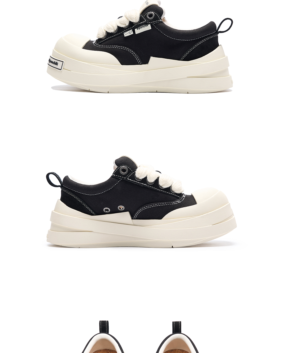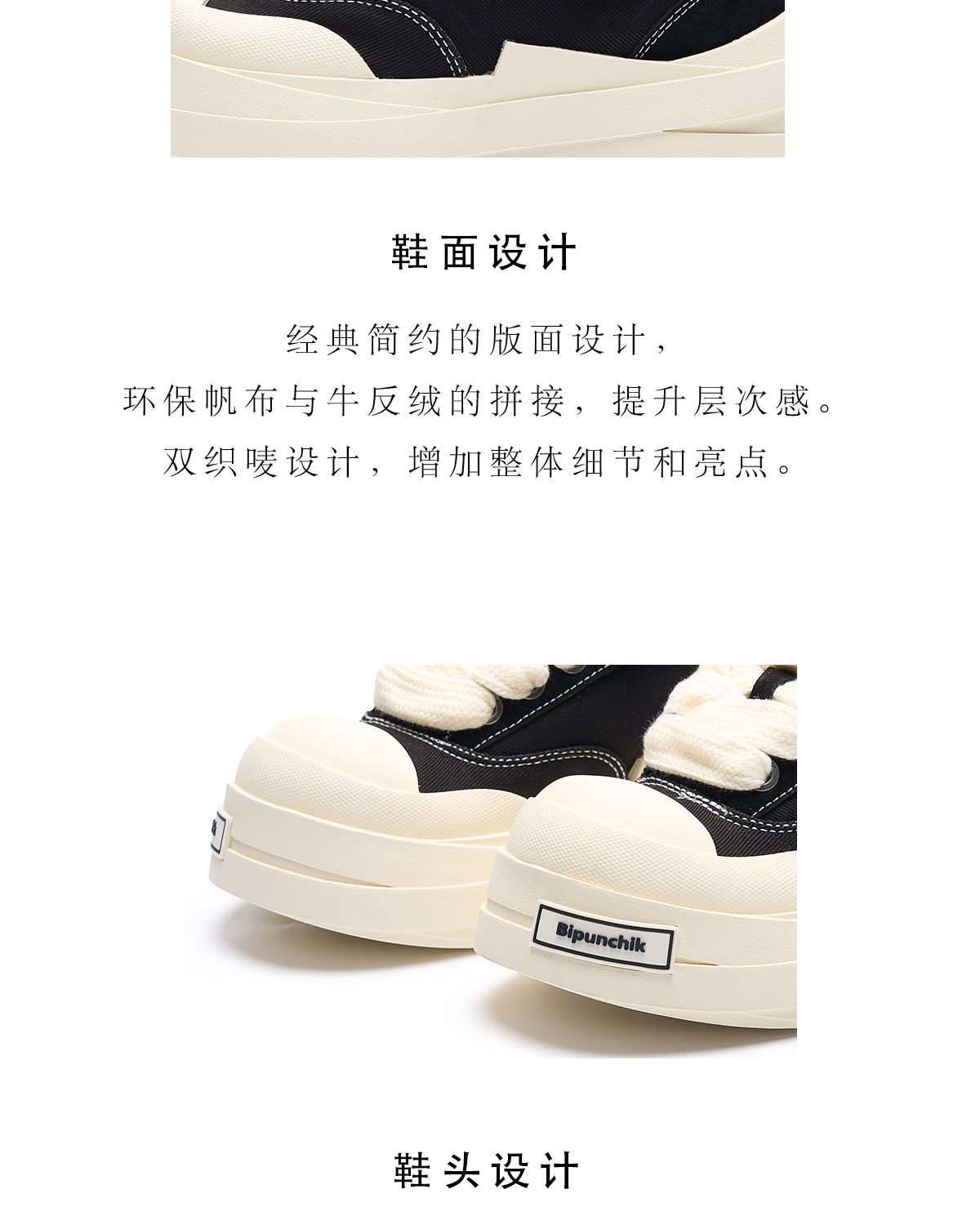 Bipunchik Black Basic Bandage Canvas Chunky Shoes Unisex Height-Increasing Thick-Soled Sneakers for Spring and Summer