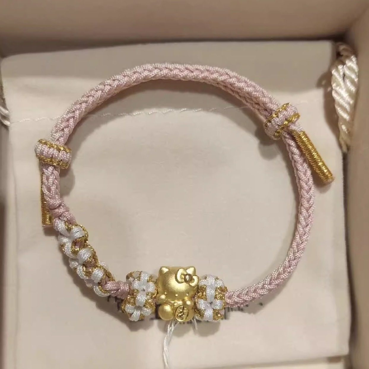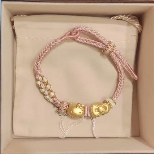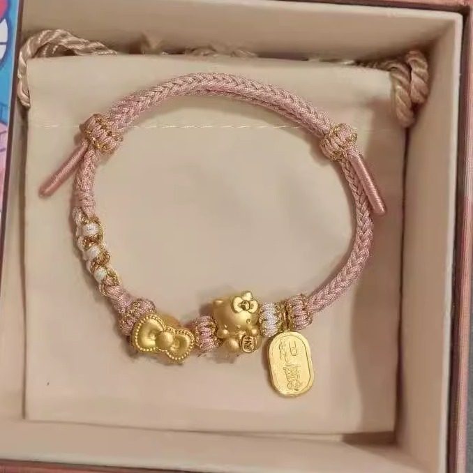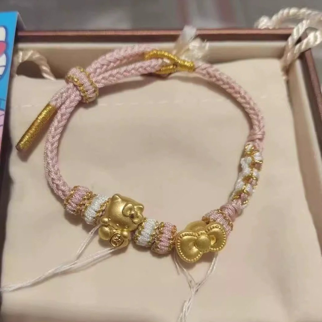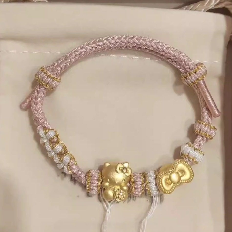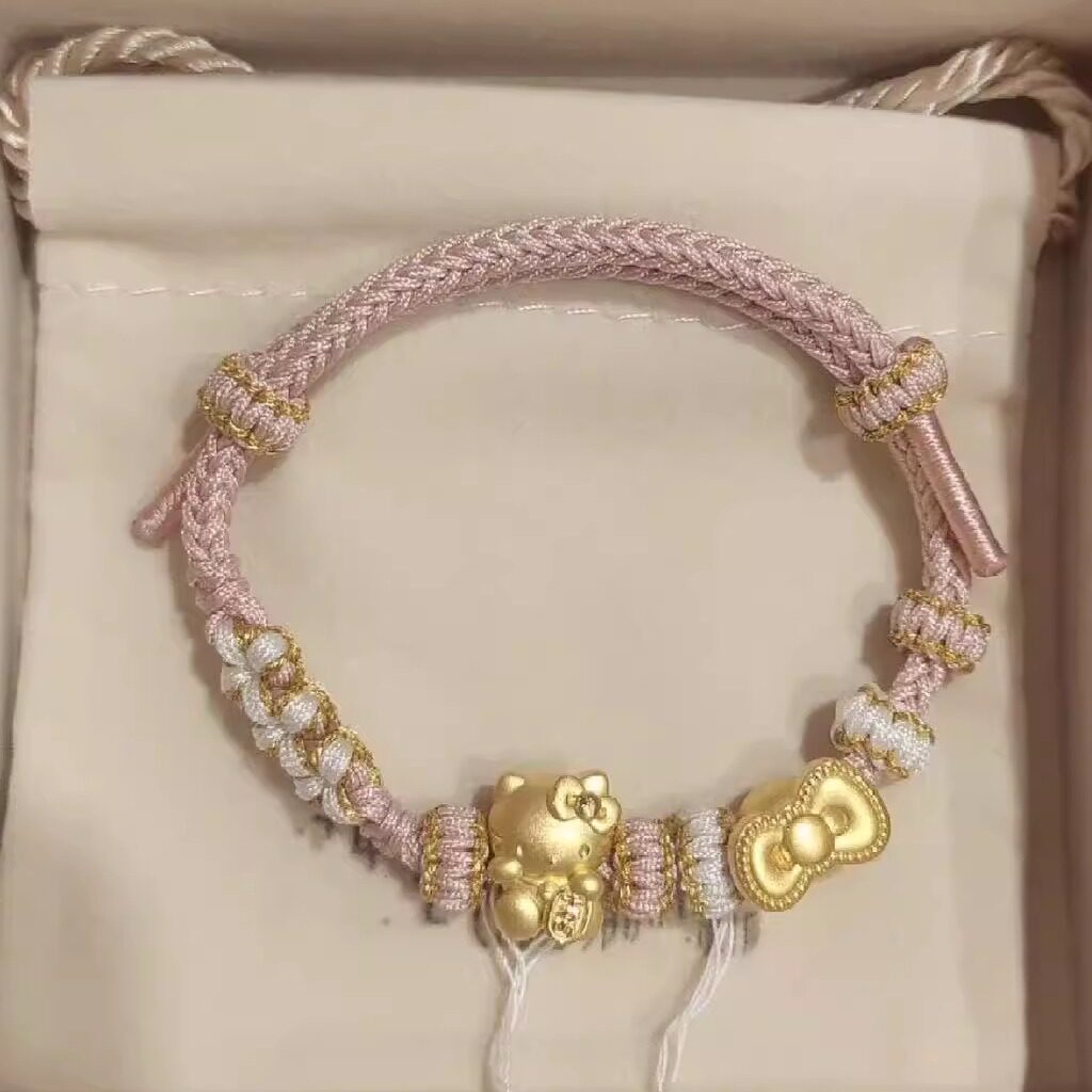 Jingyuelong 999 Pure Gold Hello Kitty Cat Head Bracelet for Women 0kg Kt Cat Bowknot Transfer Bead Bracelet