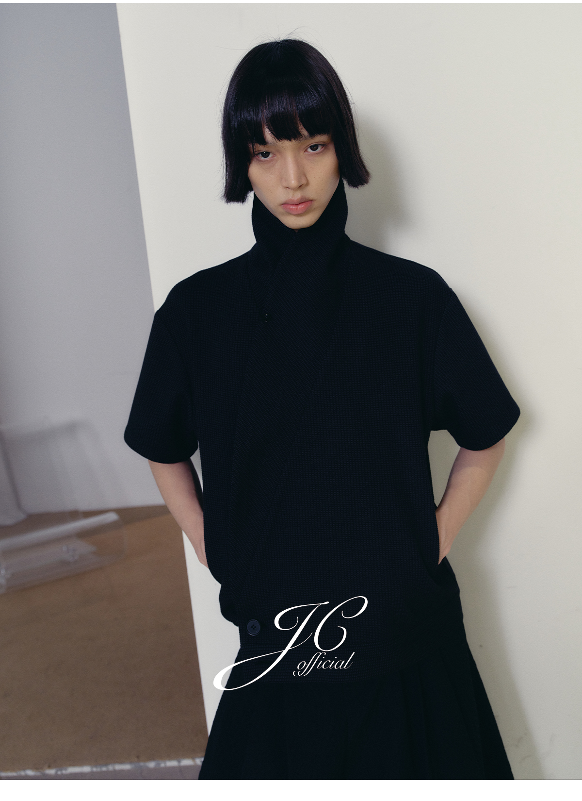 Jcaesar Shirt Green Fruit Collar Short-Sleeved Shirt, Plaid Jacquard Fabric, Stand-Up Collar, Stiff and Wrinkle-Resistant