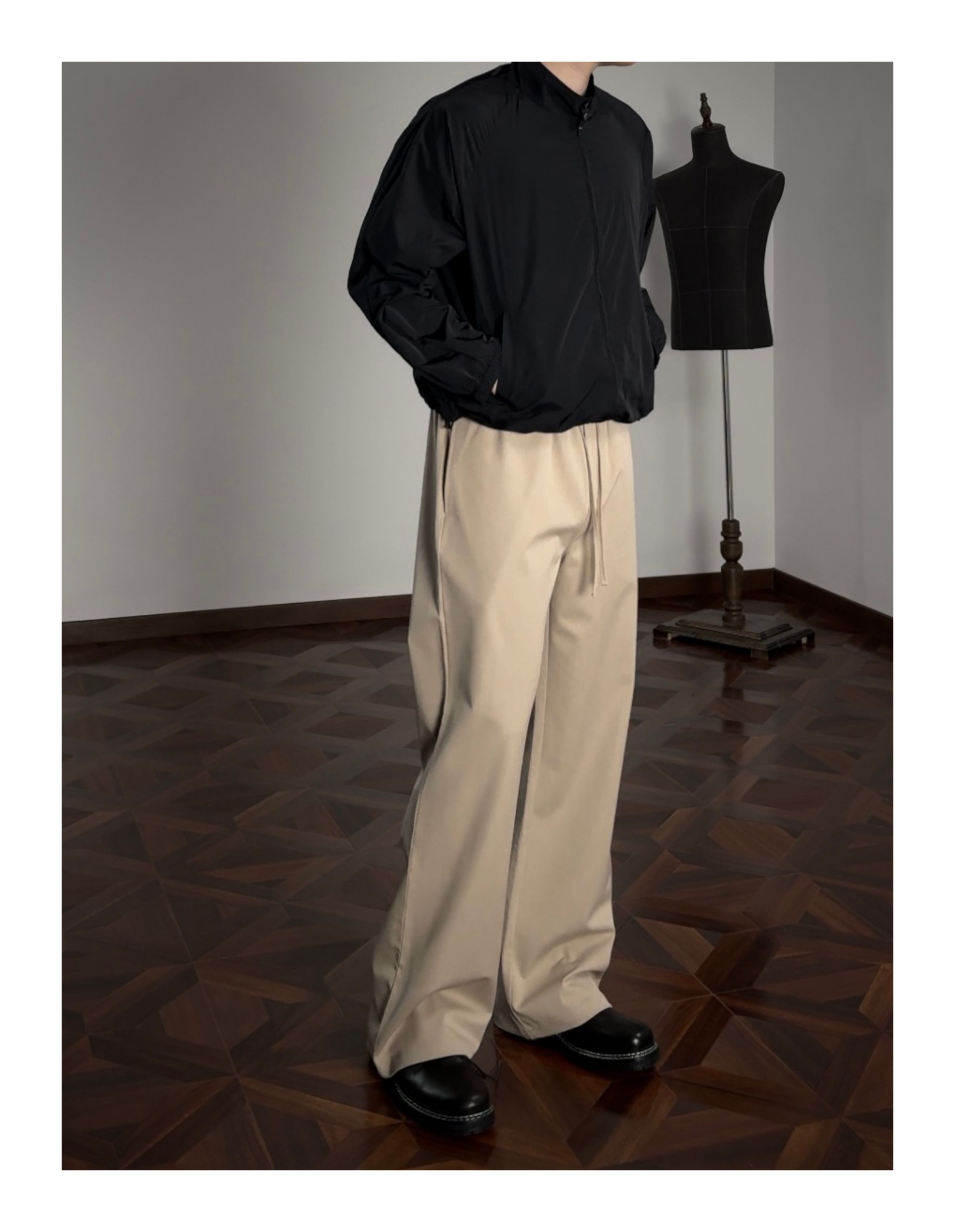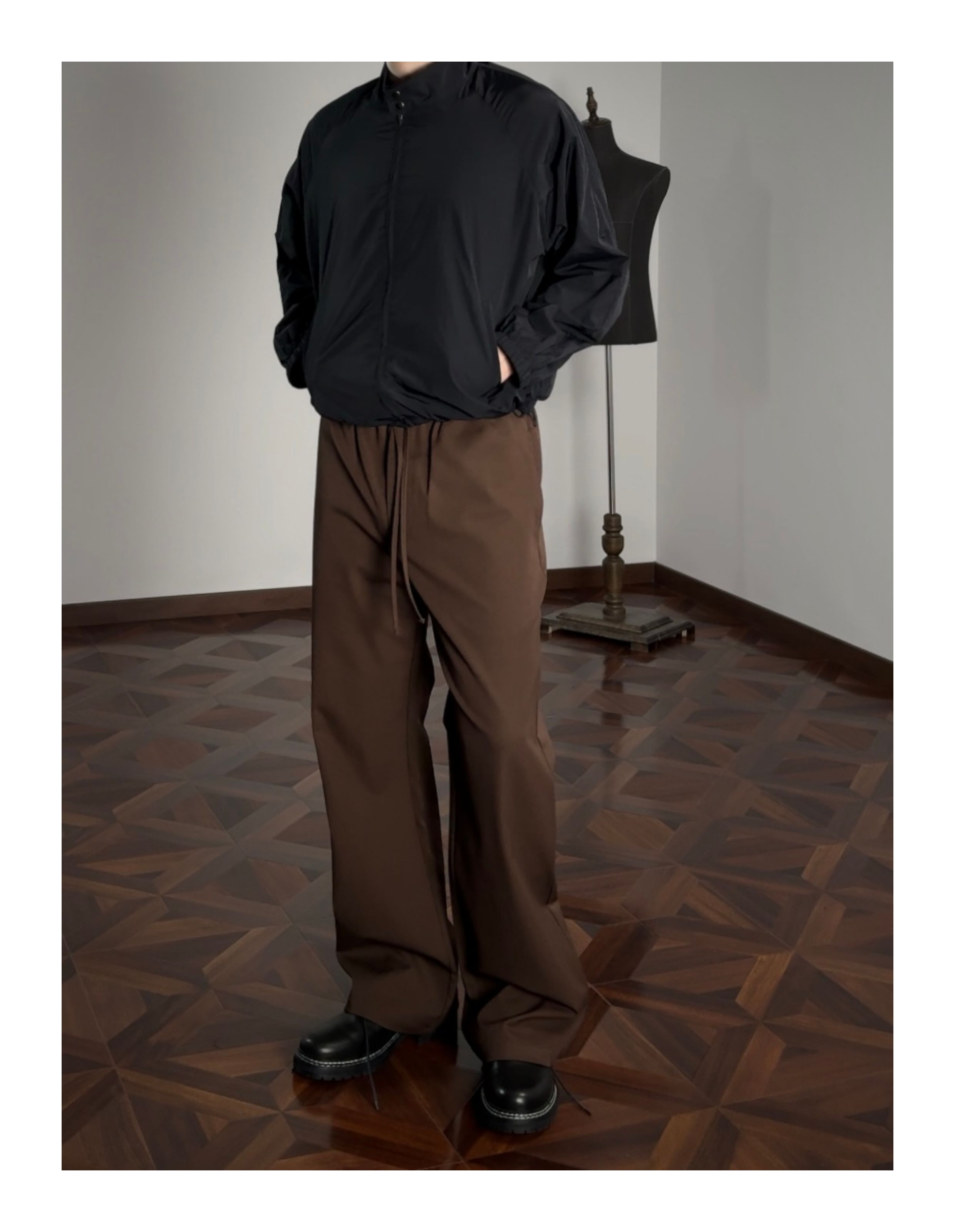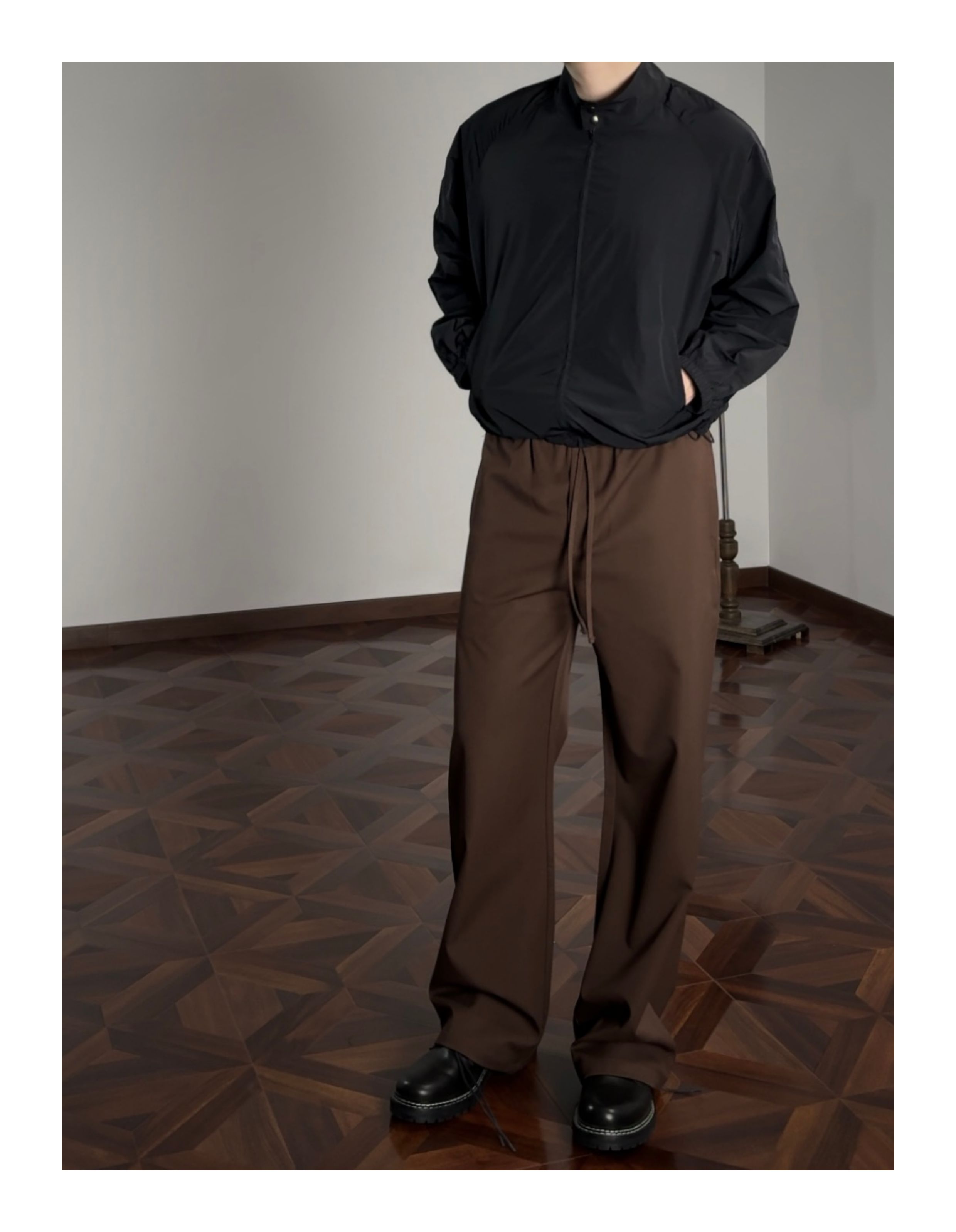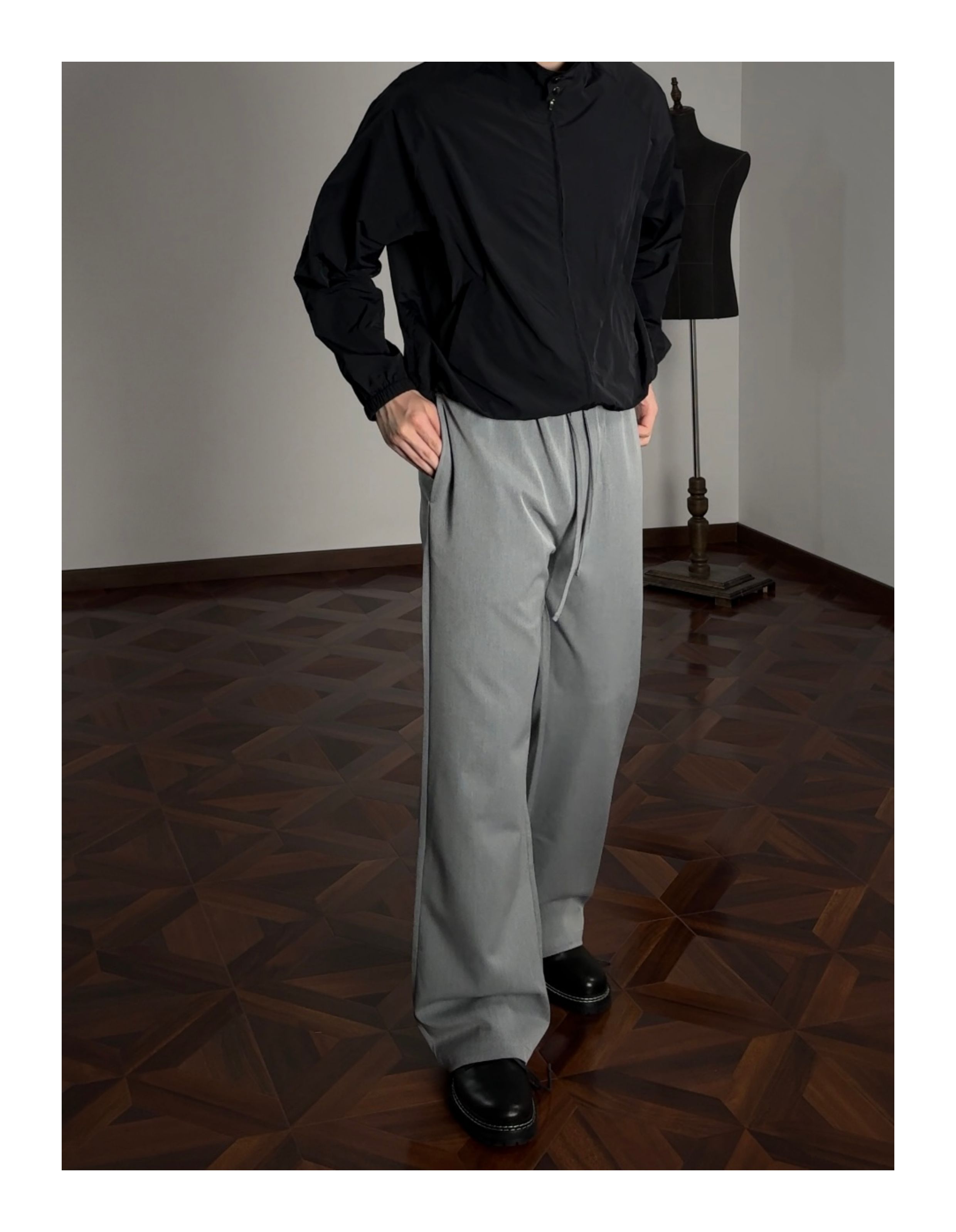 Oclin Single-Piece Straight-Leg Dress Pants, Lazy-Fit, Slightly Loose, Drawstring, Elastic Waistband, Wrinkle-Resistant, Anti-Pilling Tr, Available in Five Colors
