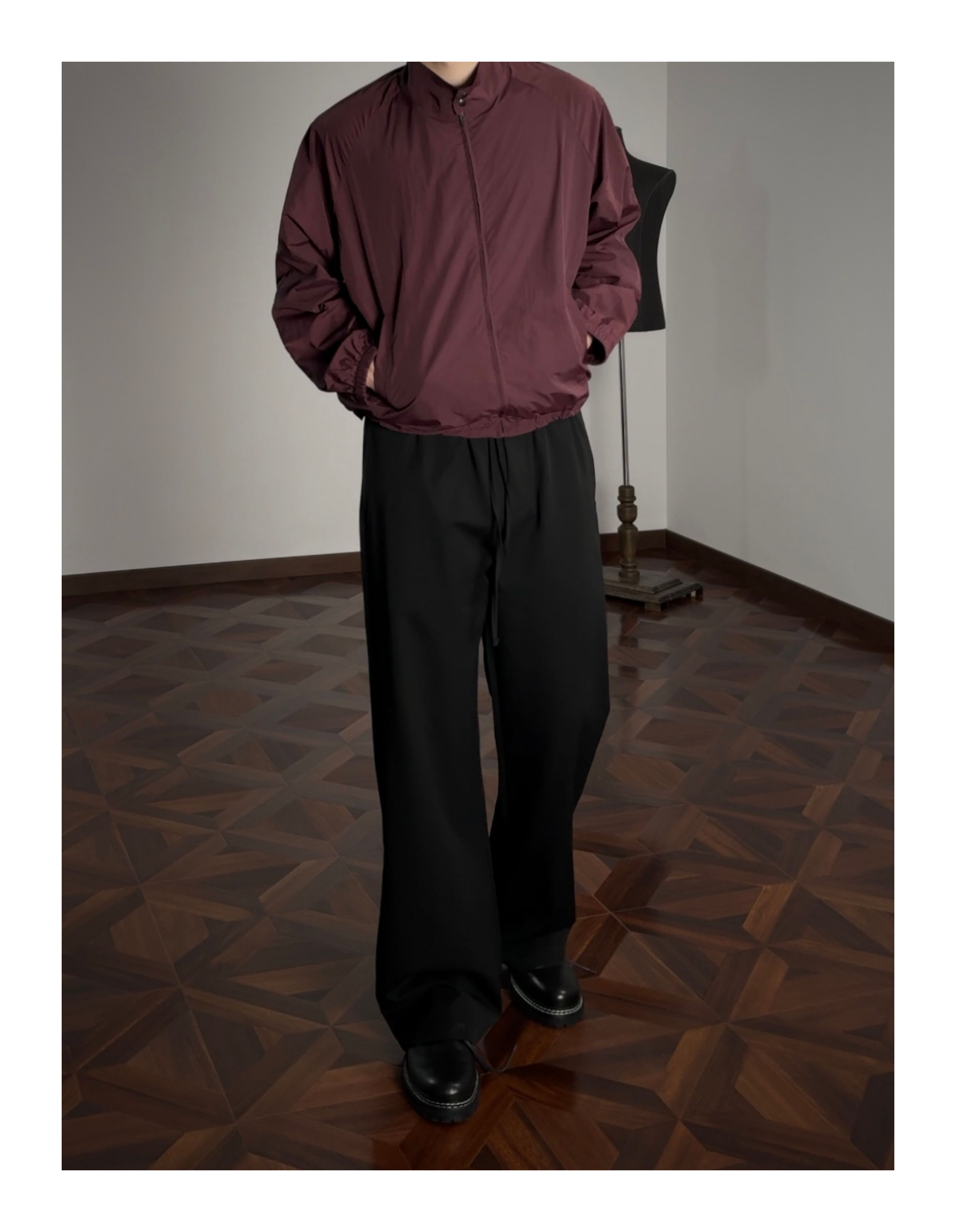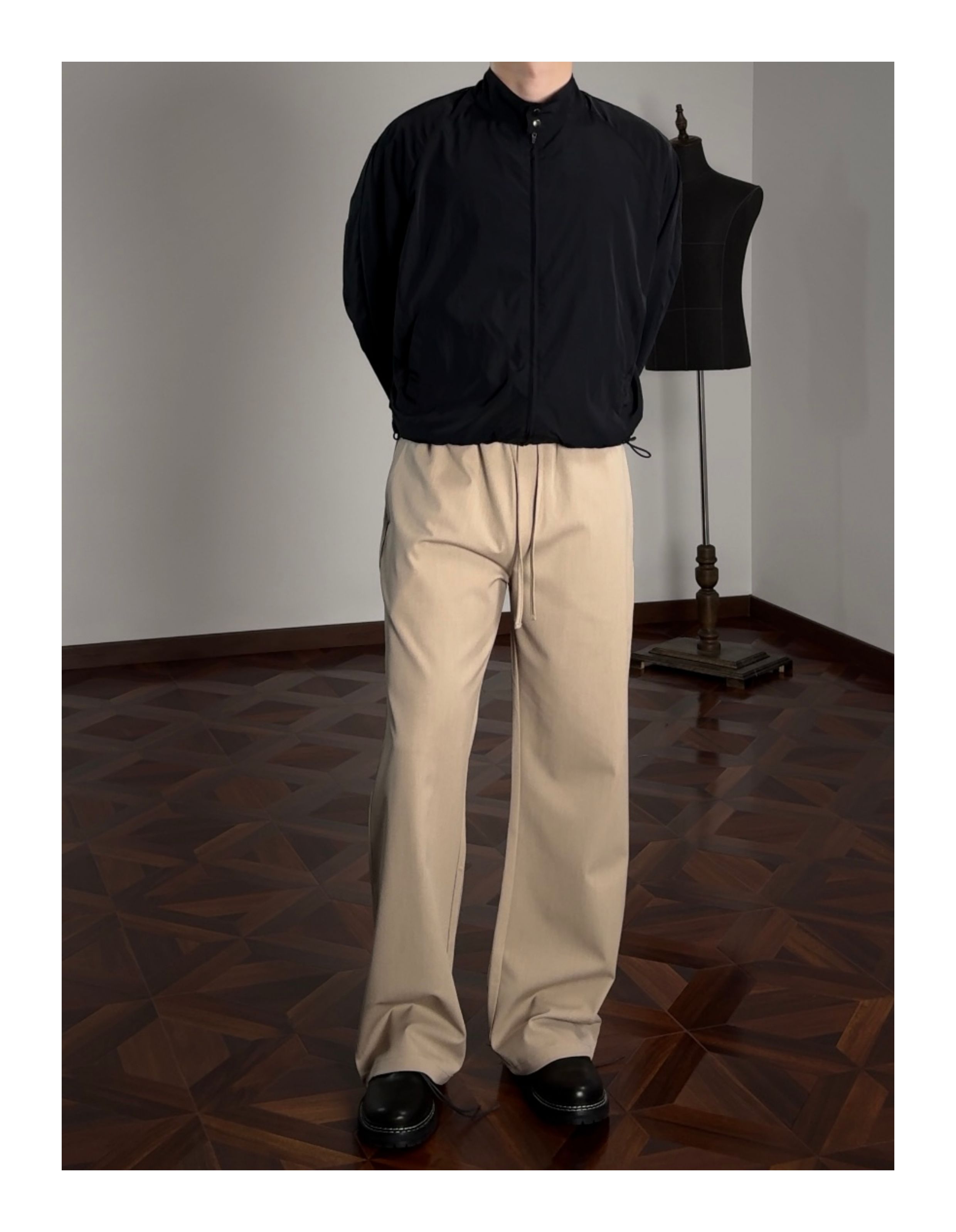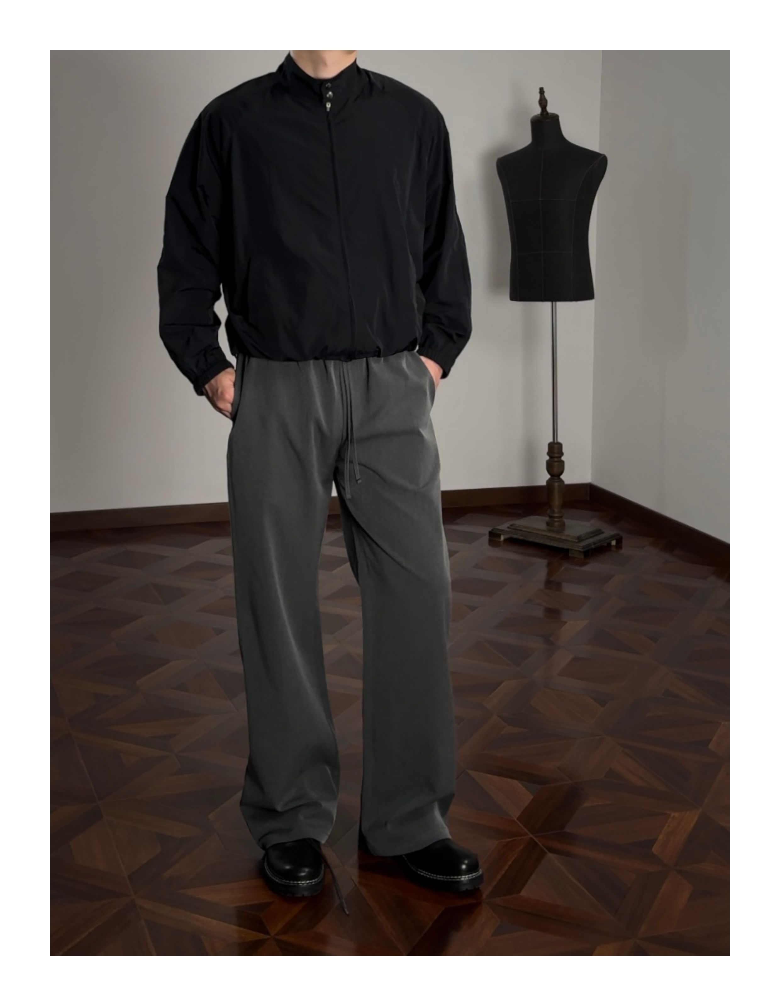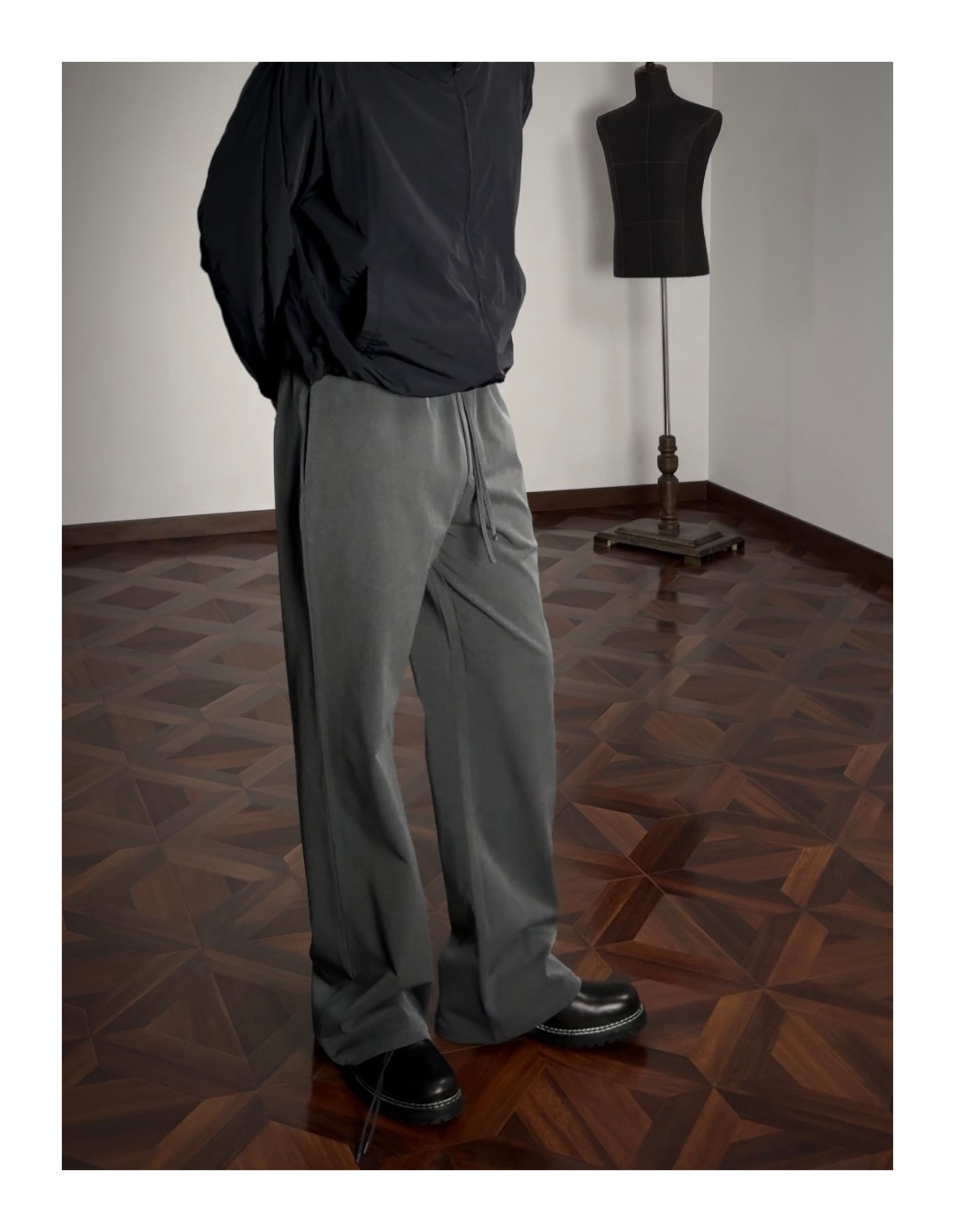 Oclin Single-Piece Straight-Leg Dress Pants, Lazy-Fit, Slightly Loose, Drawstring, Elastic Waistband, Wrinkle-Resistant, Anti-Pilling Tr, Available in Five Colors