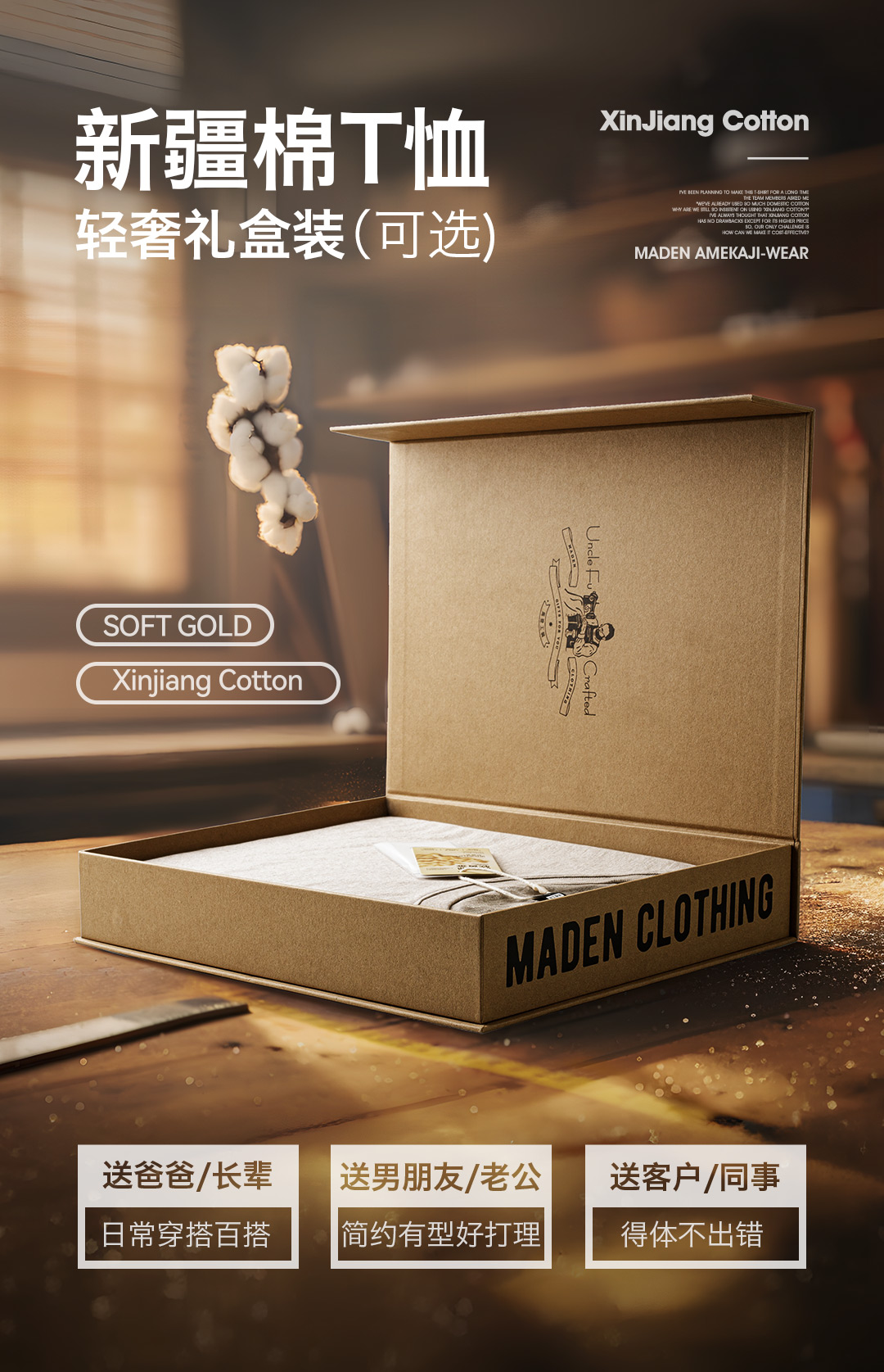 Madden Workwear Xinjiang Pure Cotton T-Shirt, White Heavyweight Short-Sleeve, Cool-Feeling, High-Weight Base Shirt, Half-Sleeve Men's Summer