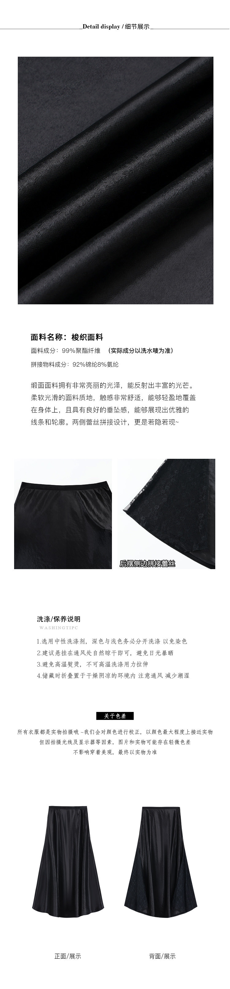 Neva Hu High-End Satin Skirt for Women, Designer Niche Lace Splicing, Elegant Mid-Length Skirt