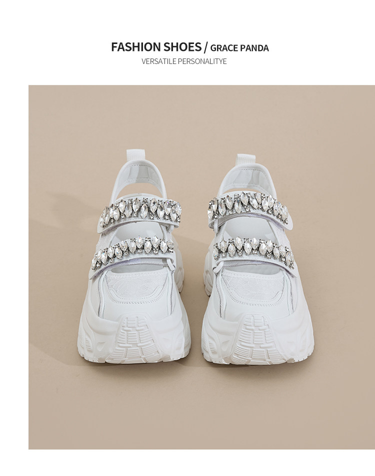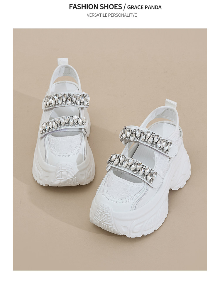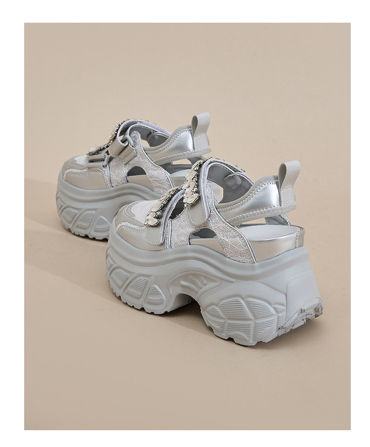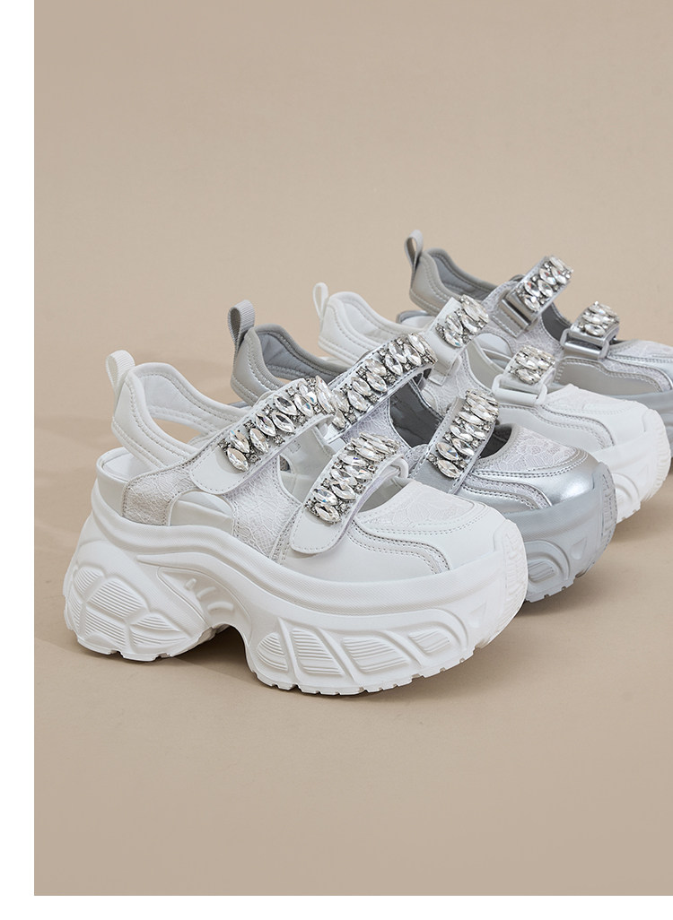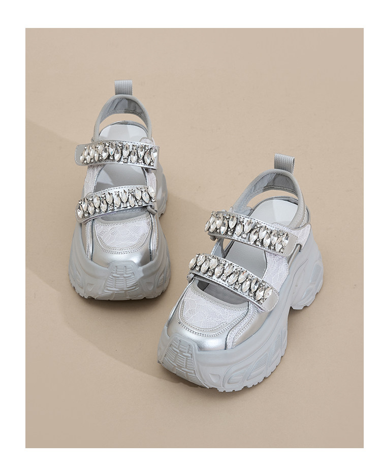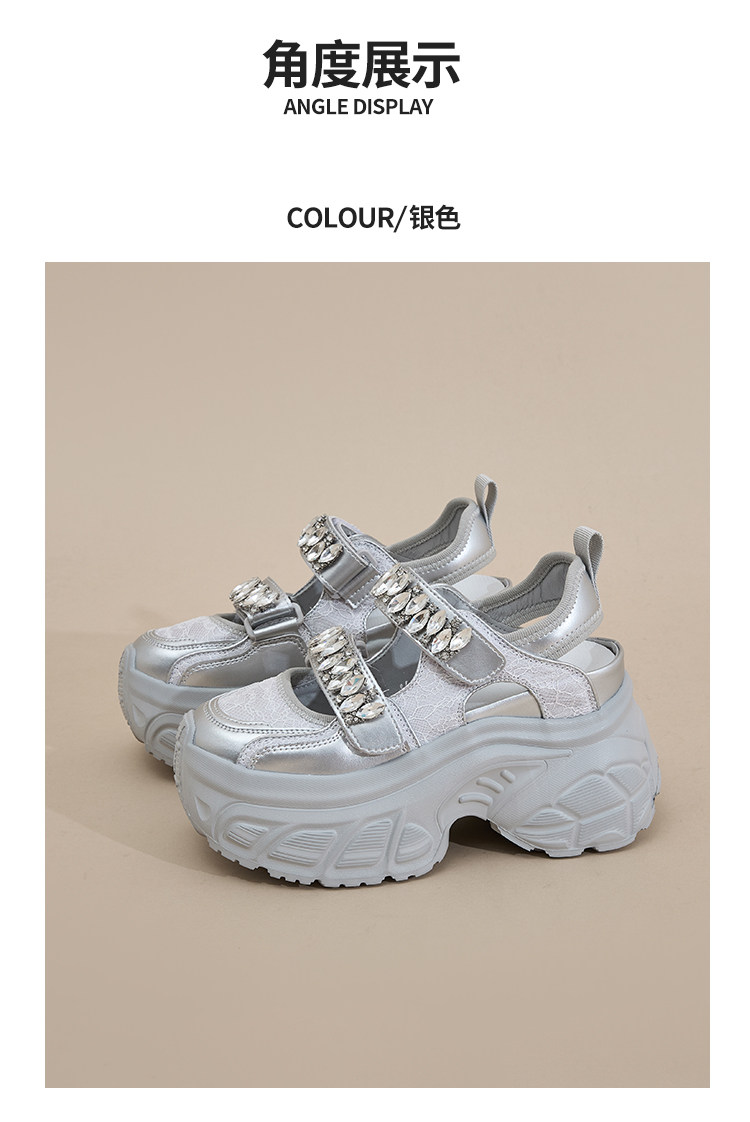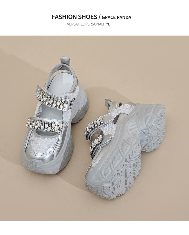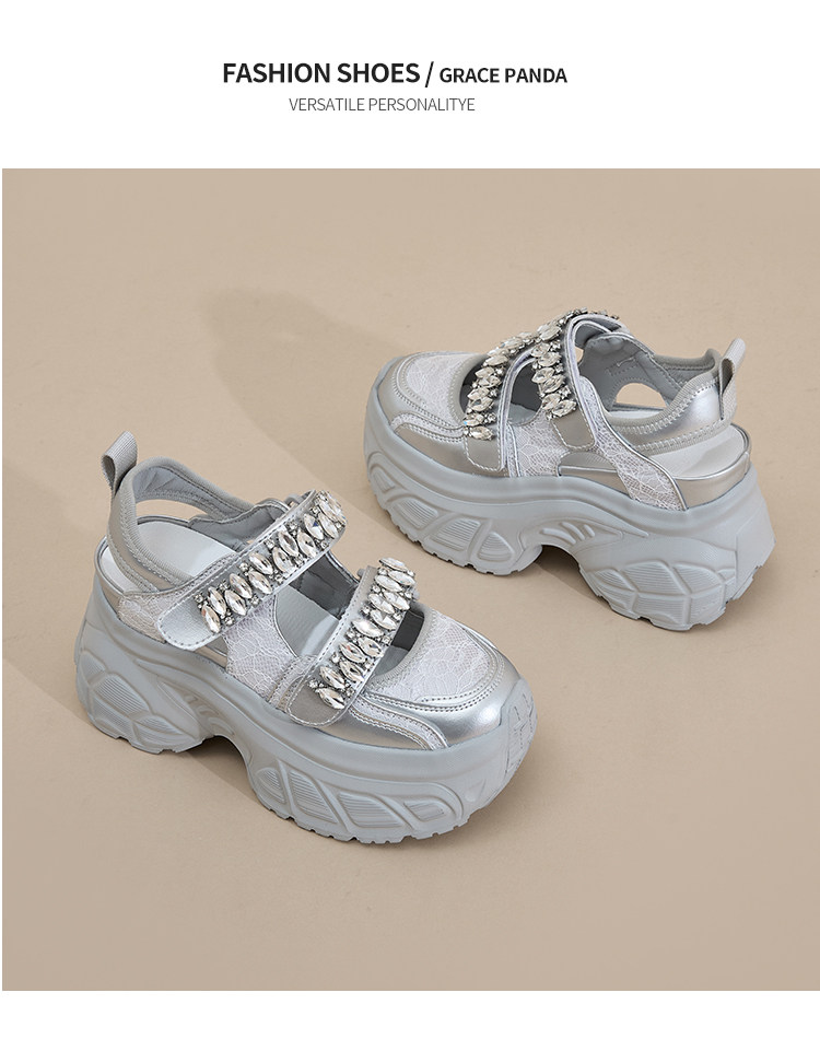 Hong Kong Gp2025 New Summer Style Small-Sized Thick-Soled Hollow-Out Dad Shoes for Women with Hidden Height Increase, Rhinestone Toe Cap, and Sporty Sandals
