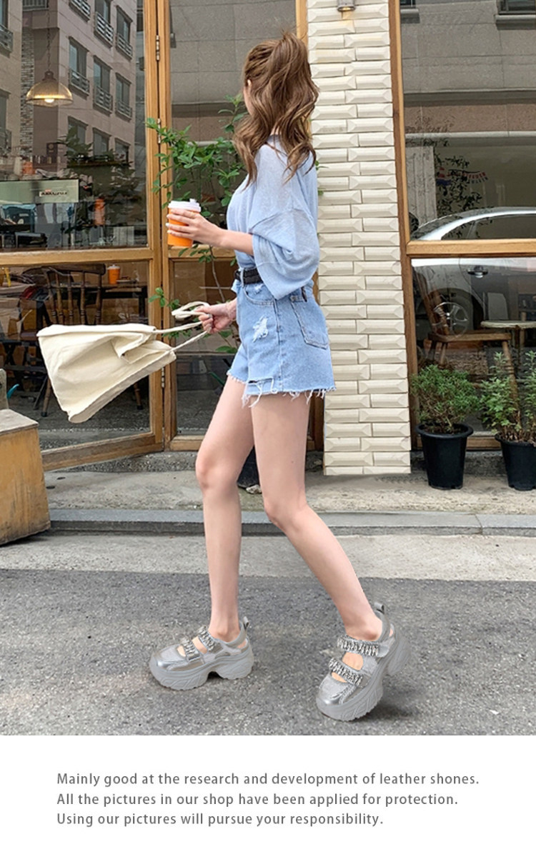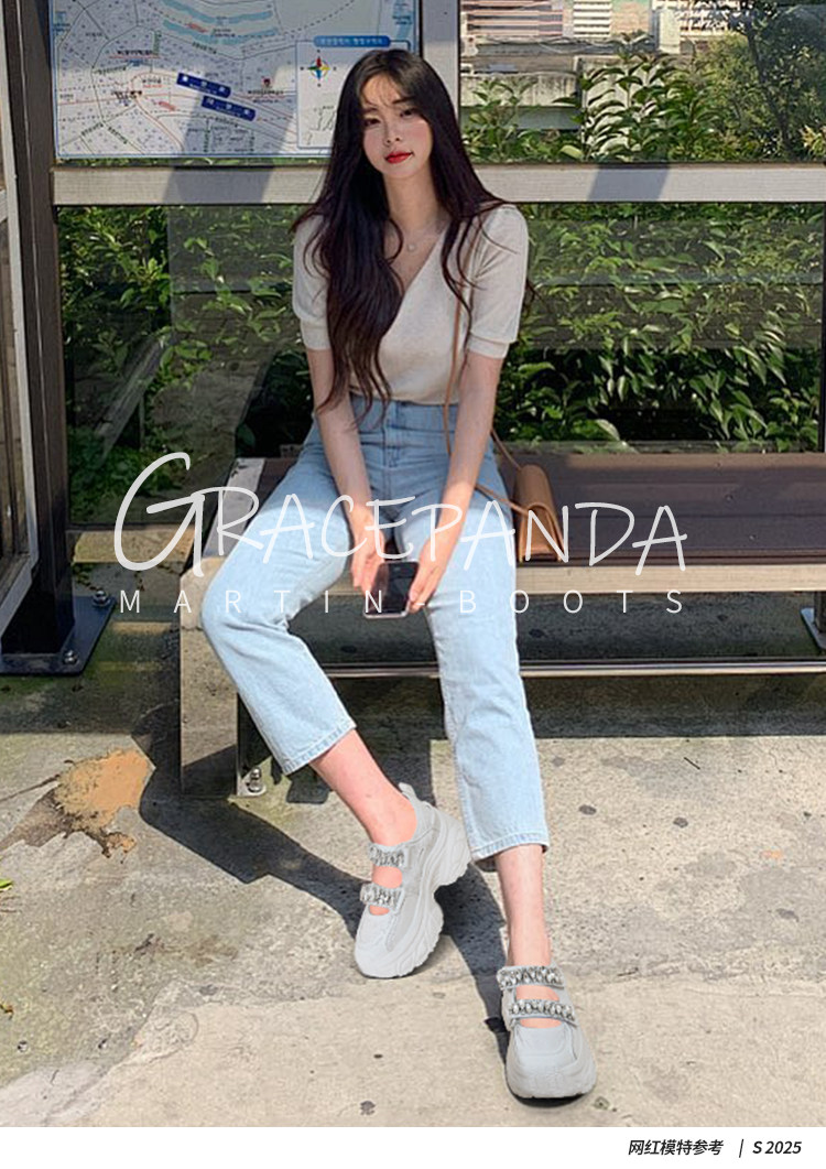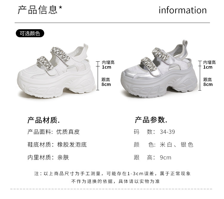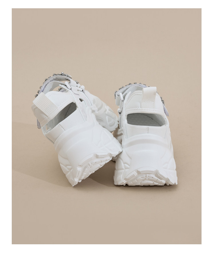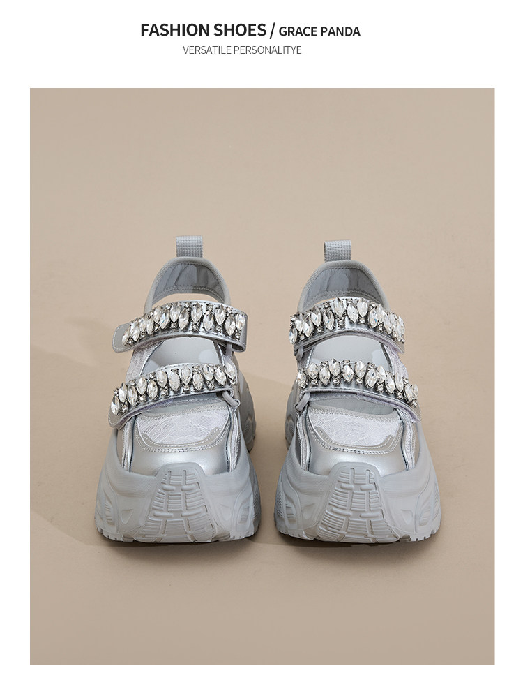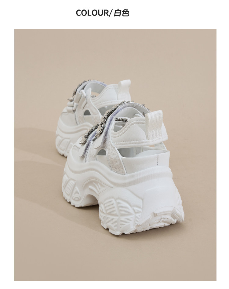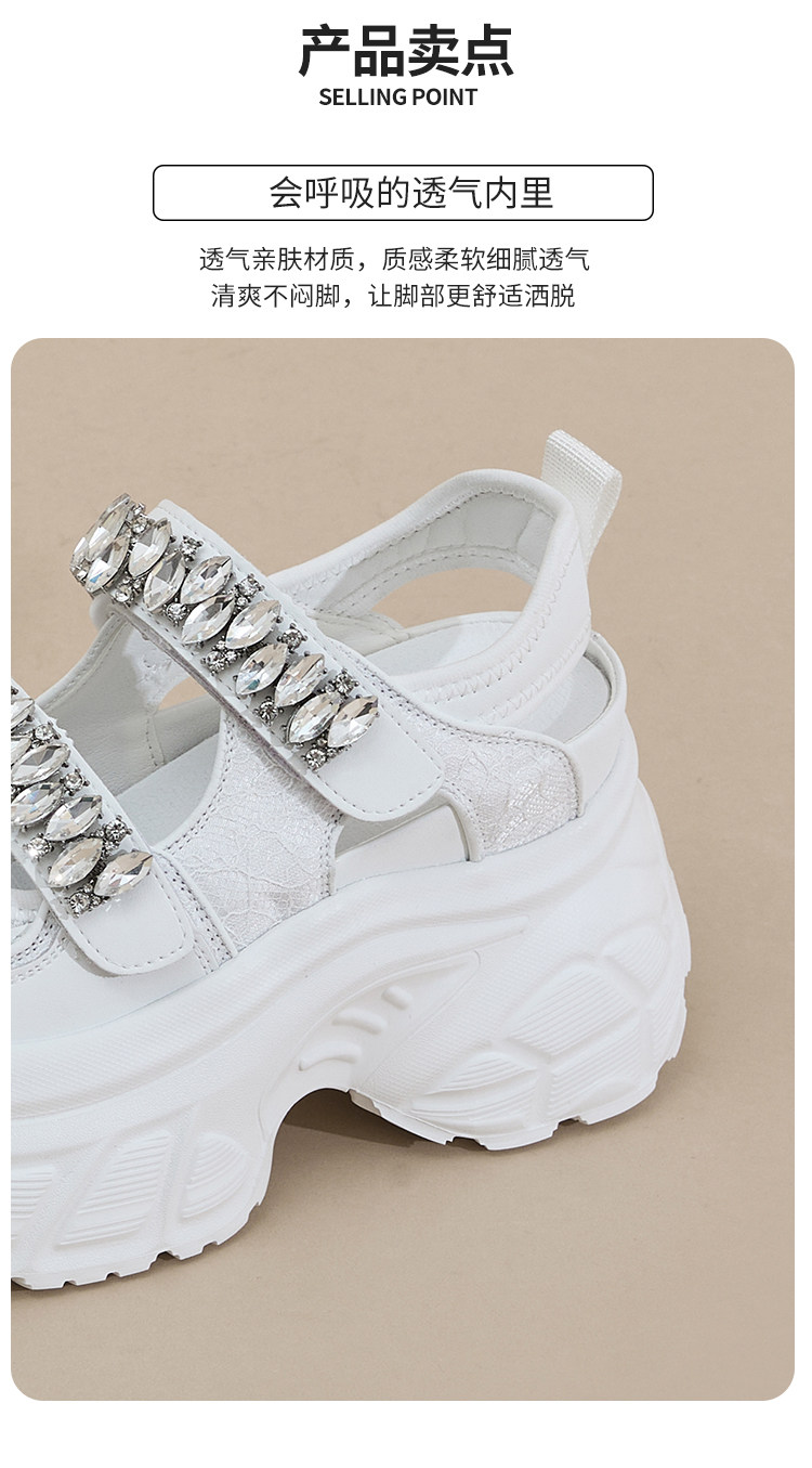Hong Kong Gp2025 New Summer Style Small-Sized Thick-Soled Hollow-Out Dad Shoes for Women with Hidden Height Increase, Rhinestone Toe Cap, and Sporty Sandals