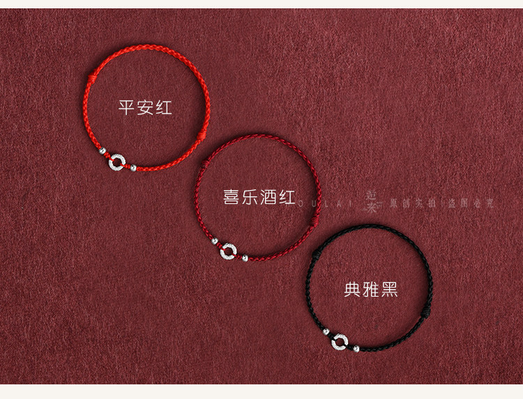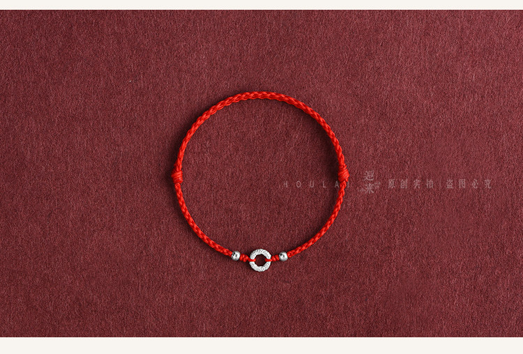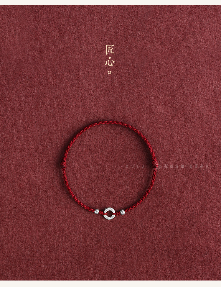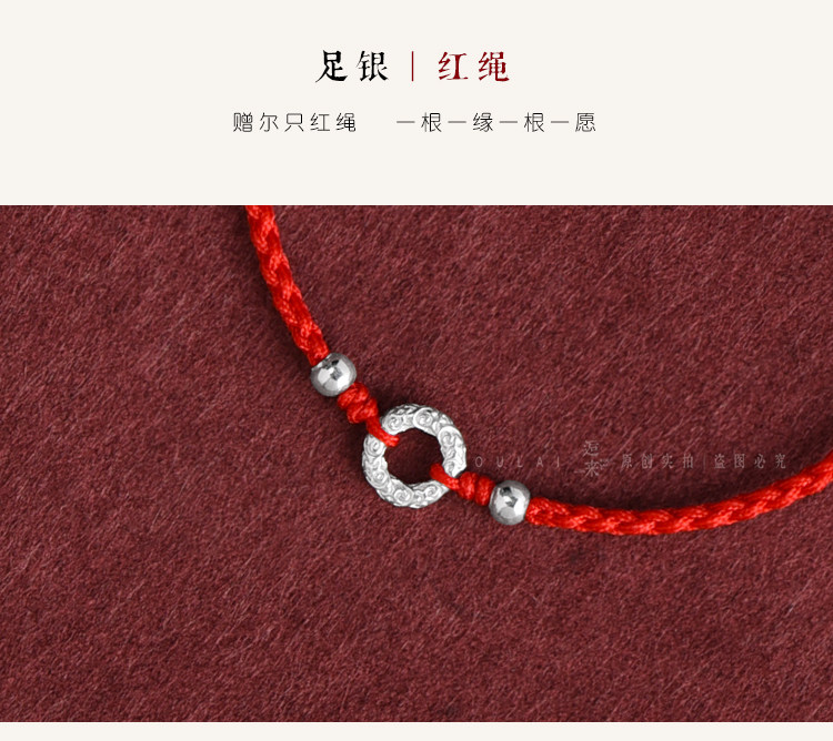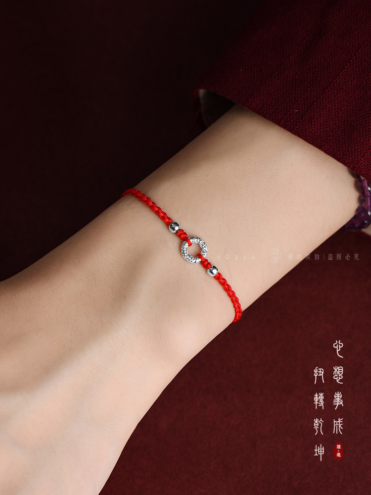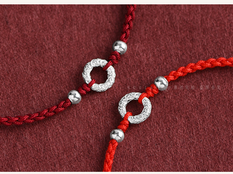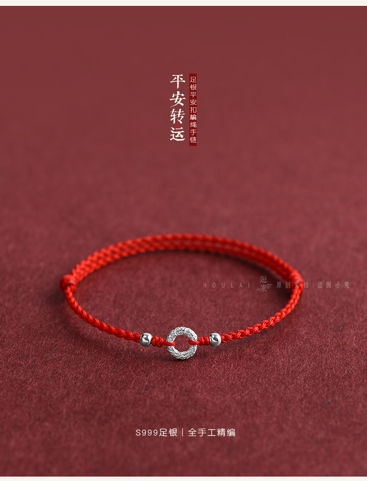 Ultra-Fine 999 Pure Silver Small Round Red String Bracelet Anklet for Men and Women, Good Luck and Safety in Their Zodiac Year, Woven Bracelet
