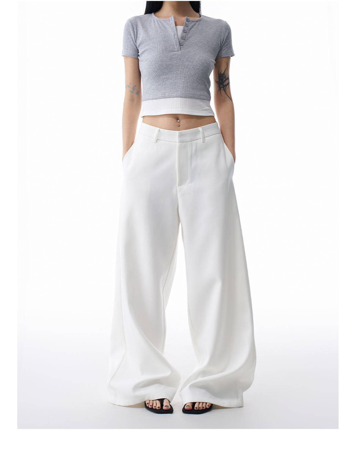 Agua White Wide-Leg Suit Pants for Women, New Autumn Style, Loose and High-End Casual Pants, Non-See-Through Straight-Leg Floor-Length Pants