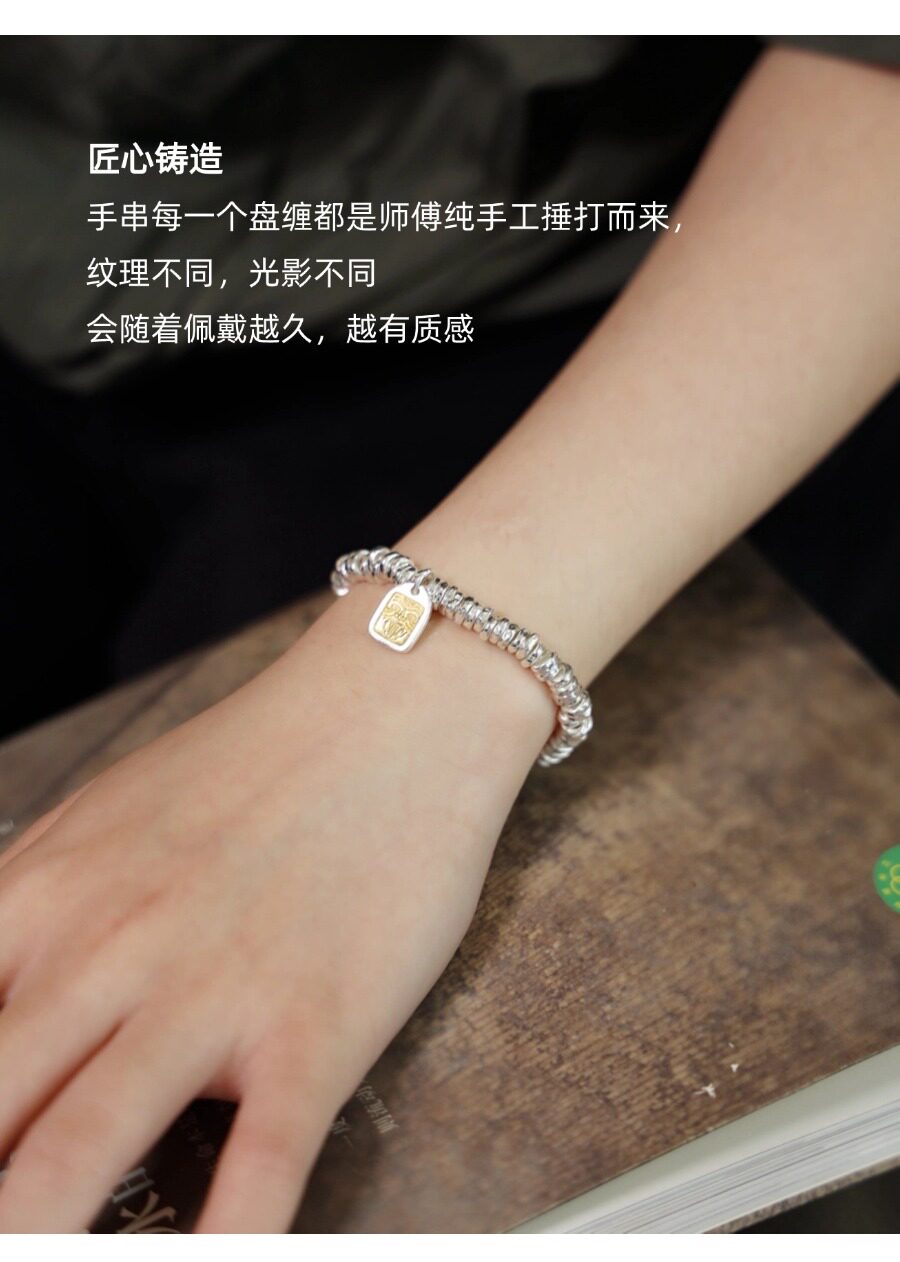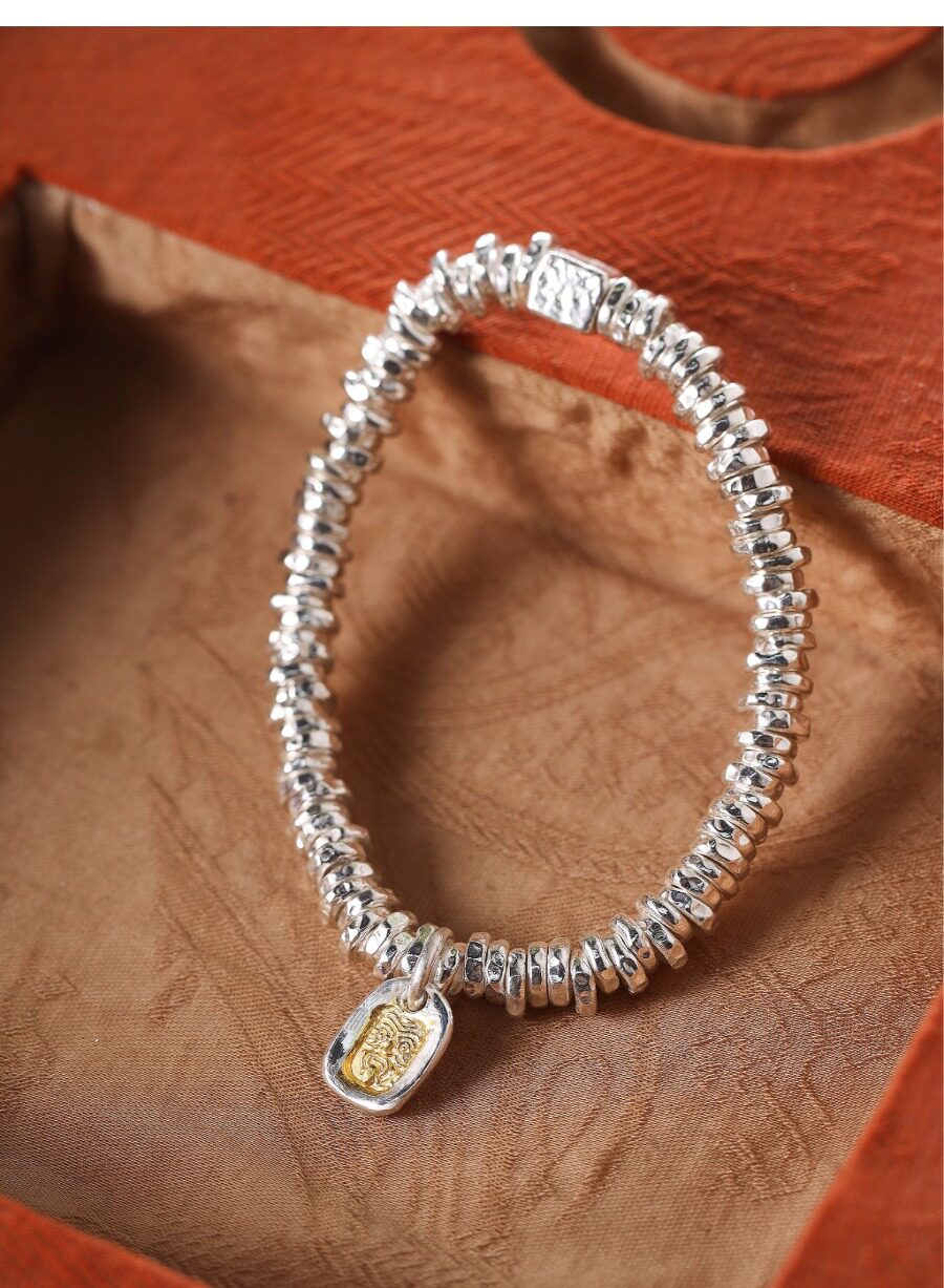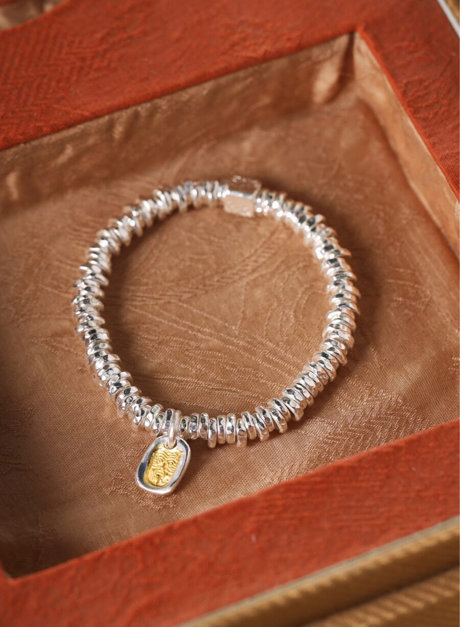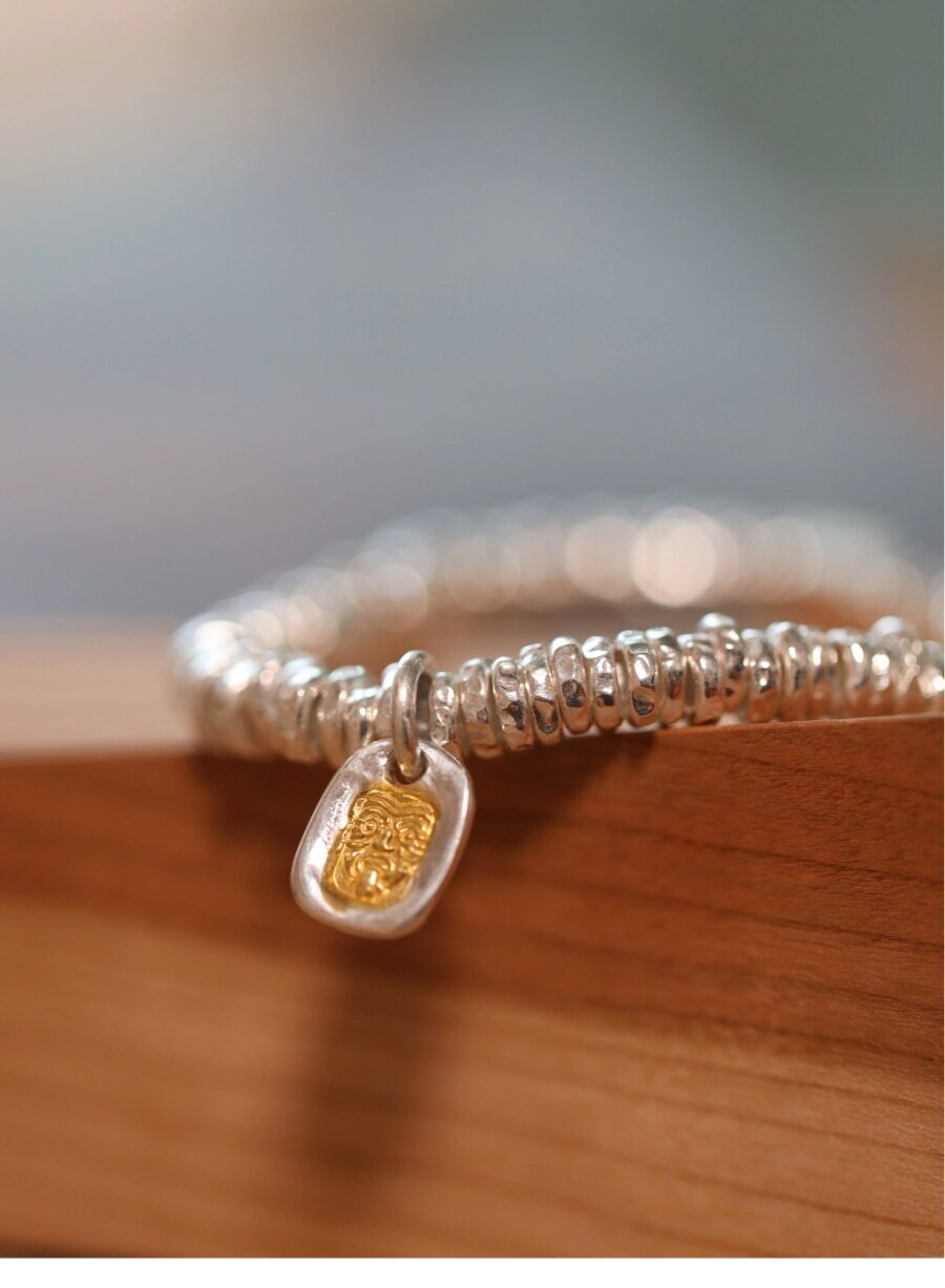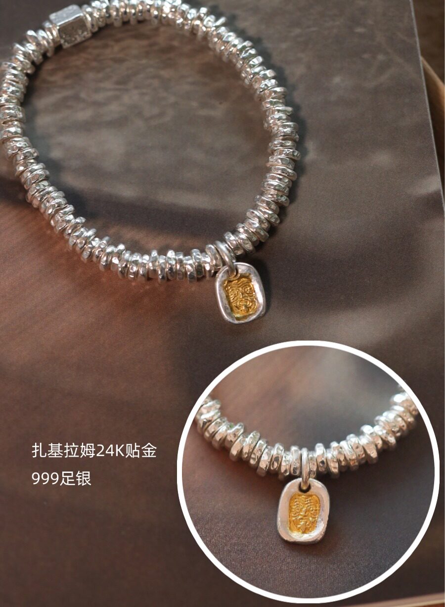 Zakiram Ii Xisu Original Handmade Hammered Solid 999 Pure Silver 24K Gold-Plated Small Coiled Silver Bracelet