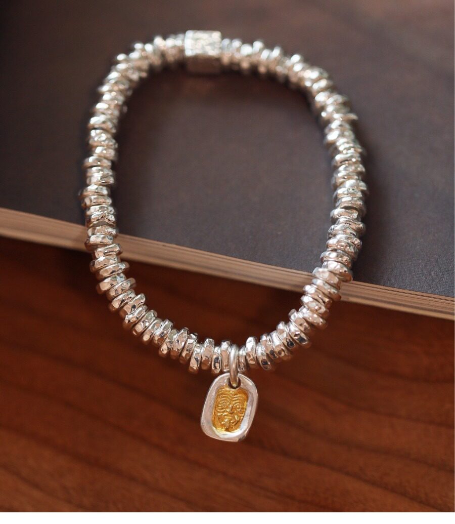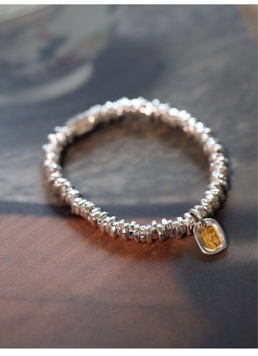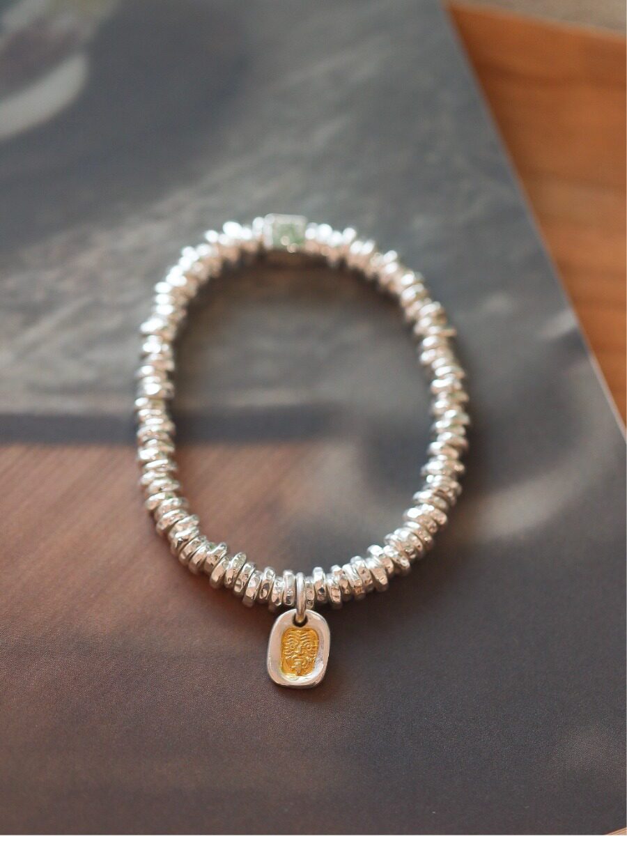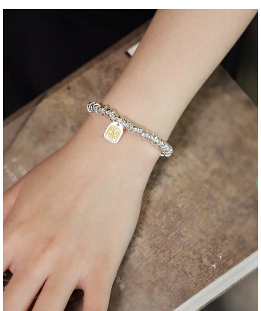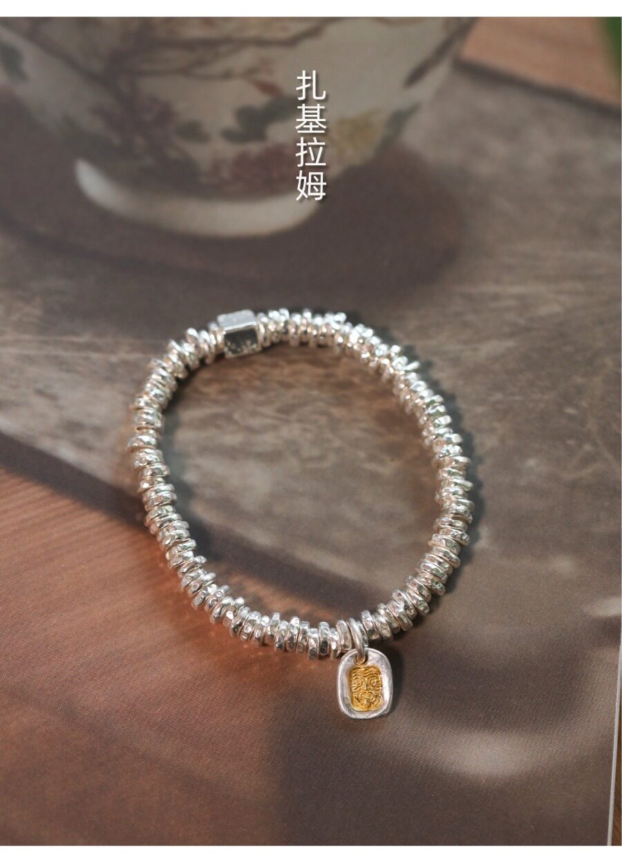 Zakiram Ii Xisu Original Handmade Hammered Solid 999 Pure Silver 24K Gold-Plated Small Coiled Silver Bracelet