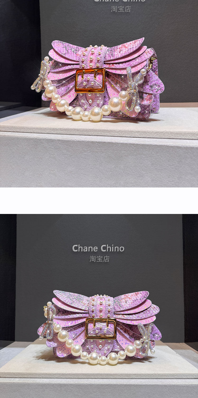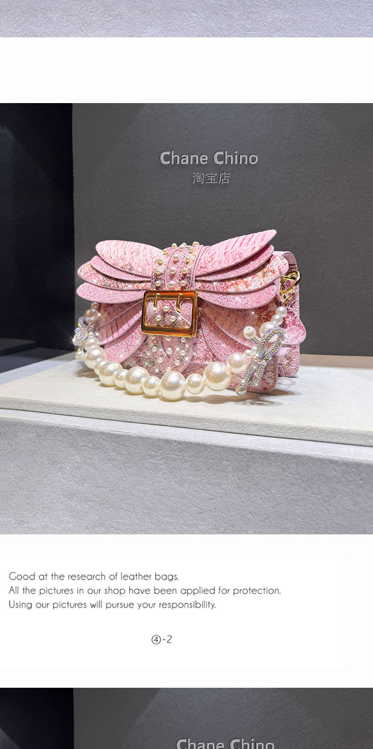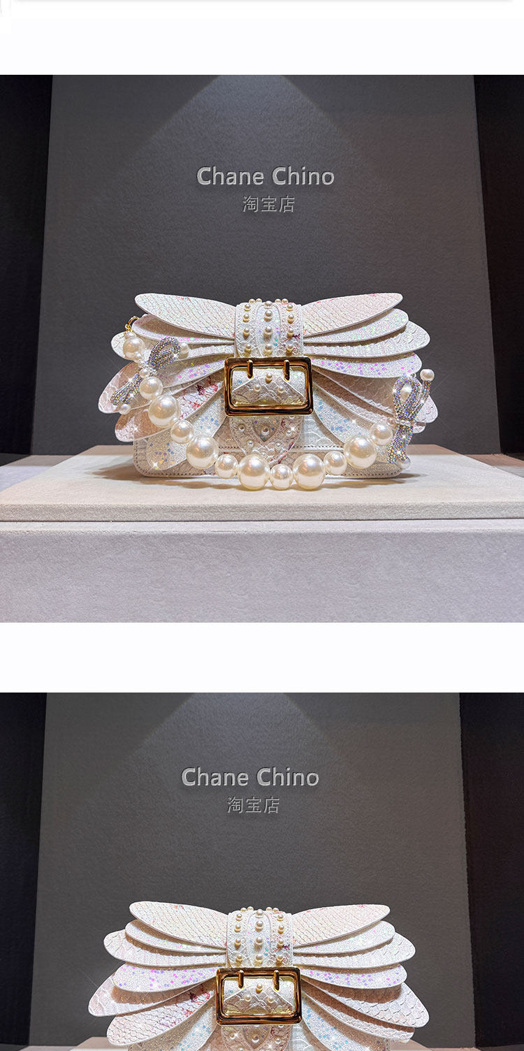 2026 New Style Pearl Studded Wing Women's Bag with Rhinestones, Trendy Acrylic Chain Small Square Bag, Elegant Handbag
