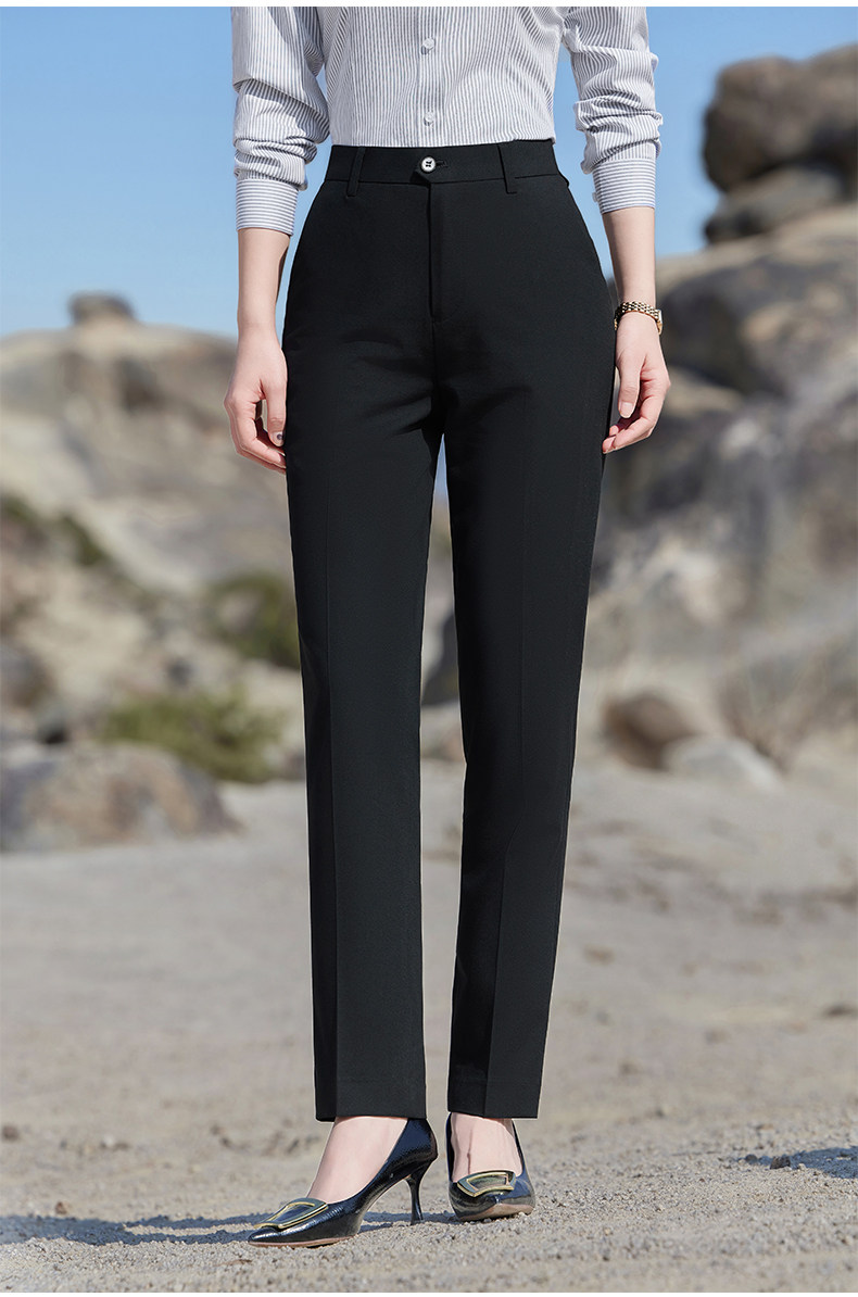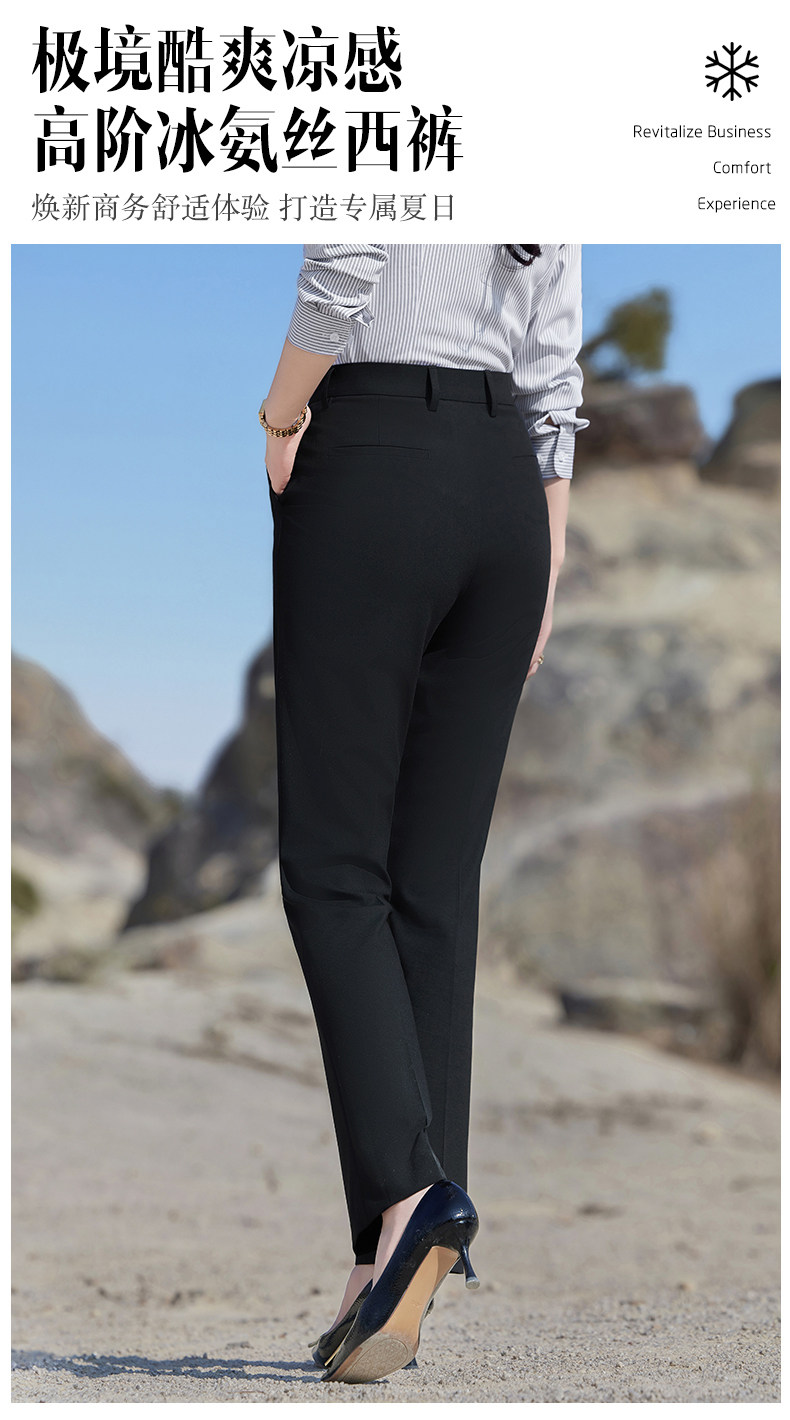 Black Women's Summer Thin Ice-Feel Stretch Work Pants High-End Business Straight-Leg Professional Suit Pants