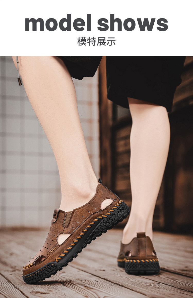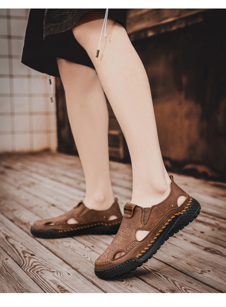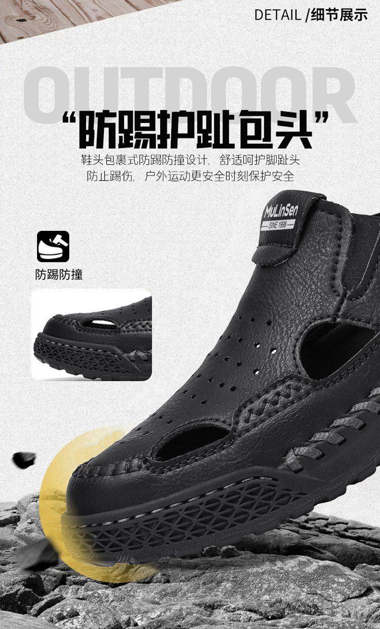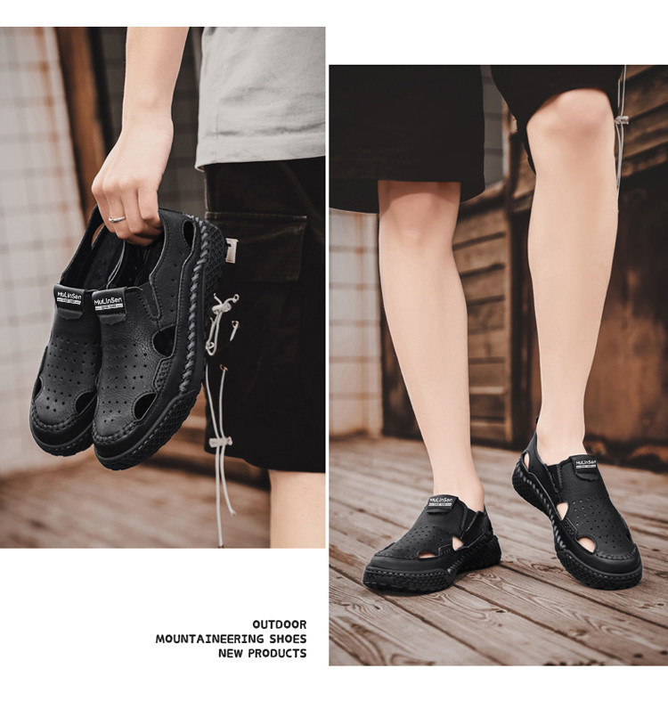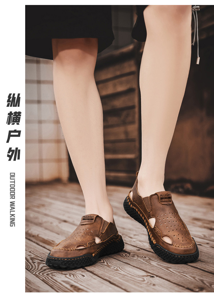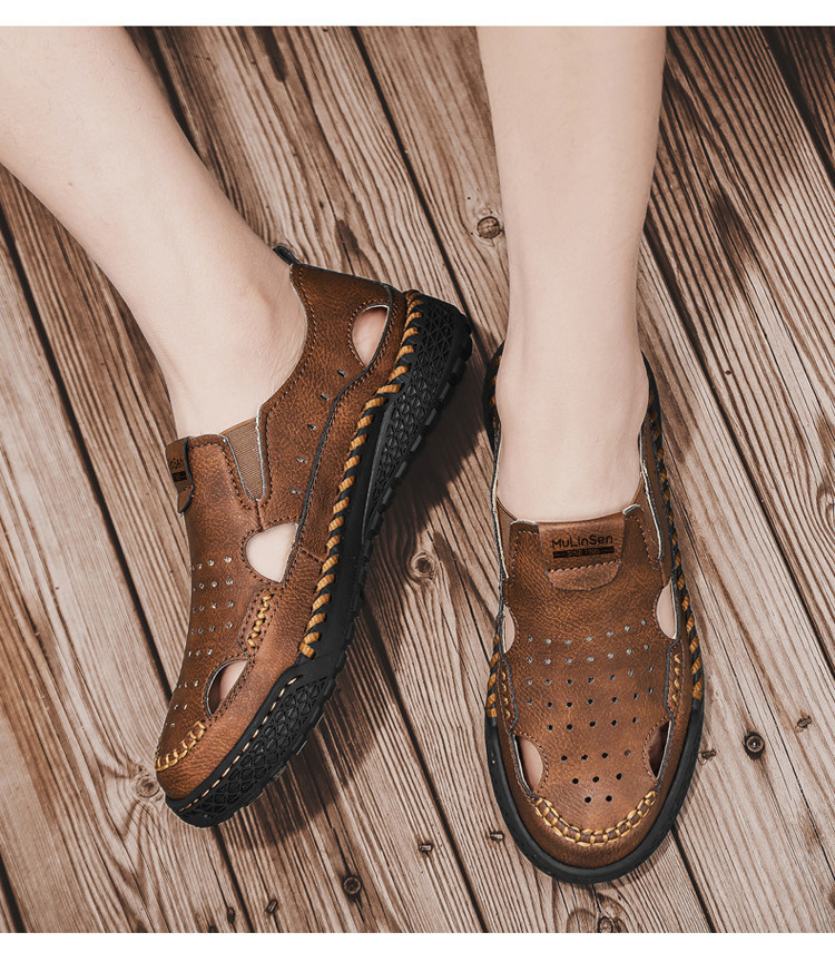 Mulinsen Casual Sandals for Men, Large Size, Fashionable Summer Dad Shoes, Hand-Stitched Genuine Leather Outdoor Beach Clogs