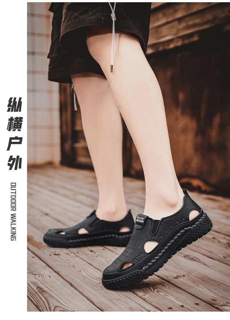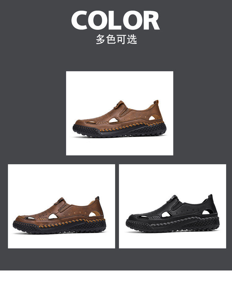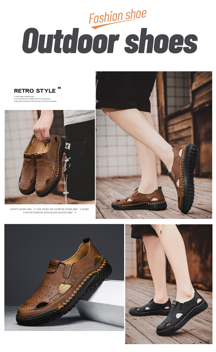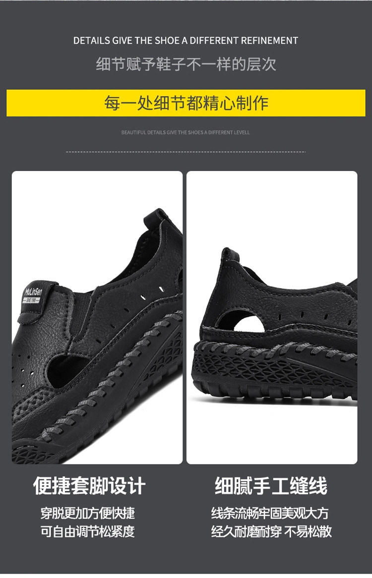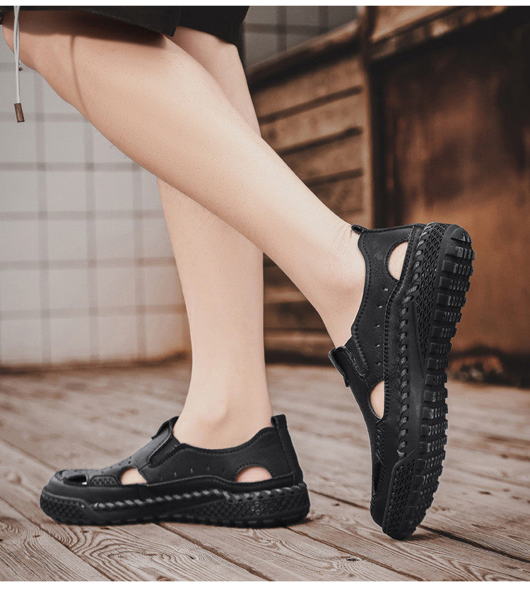 Mulinsen Casual Sandals for Men, Large Size, Fashionable Summer Dad Shoes, Hand-Stitched Genuine Leather Outdoor Beach Clogs