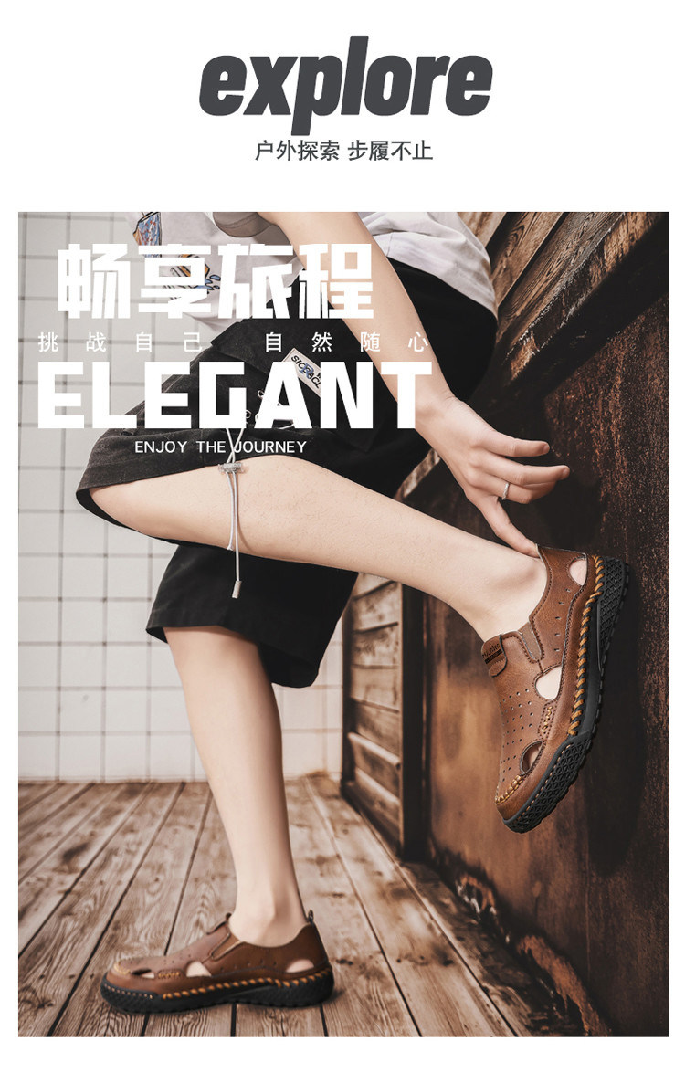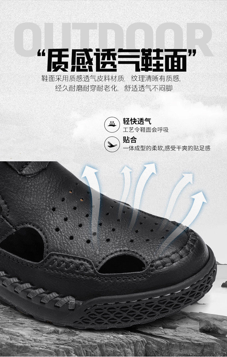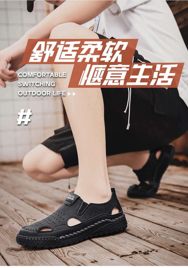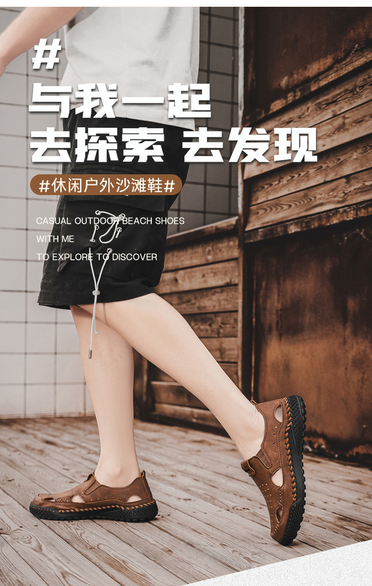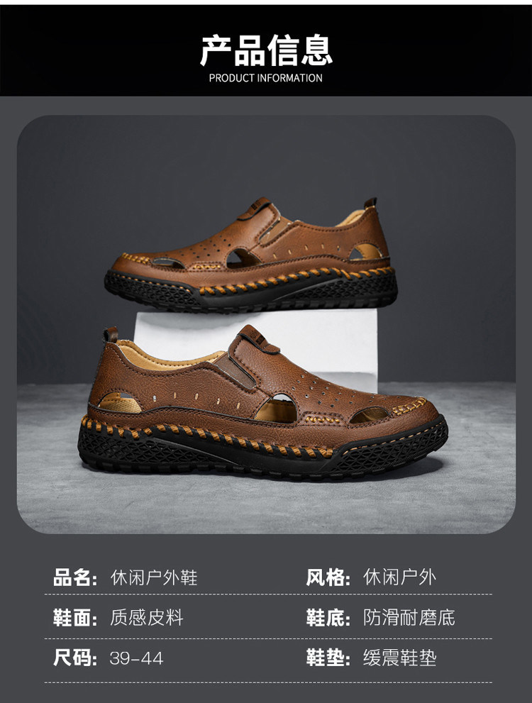Mulinsen Casual Sandals for Men, Large Size, Fashionable Summer Dad Shoes, Hand-Stitched Genuine Leather Outdoor Beach Clogs