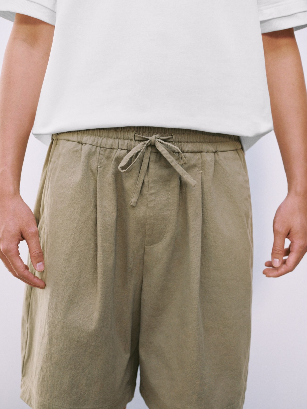 Ur2025 New Summer Men's Retro Casual Elastic Waist Drawstring Loose Shorts Uml650065