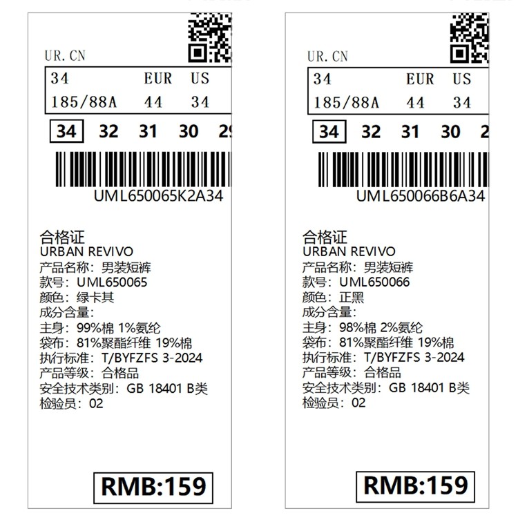 材质成分 : 绿卡其:主身:99%棉 1%氨纶 袋布:81%聚酯纤维 19%棉
