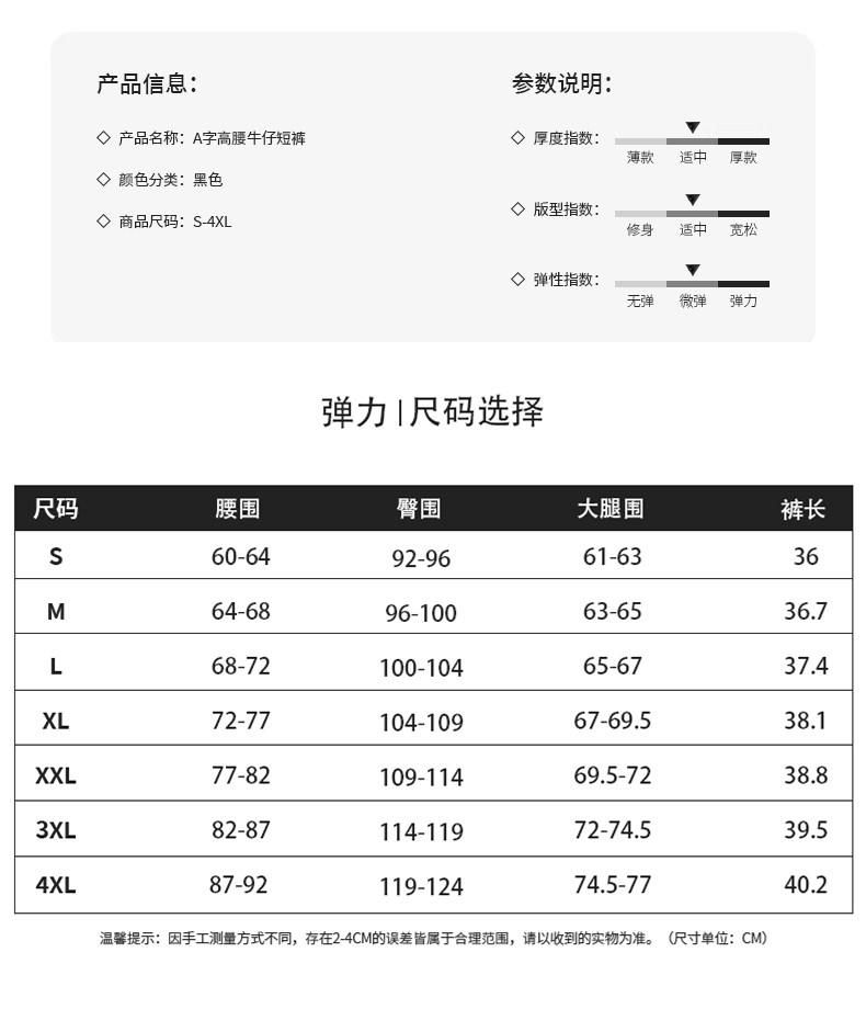 Black Denim Shorts for Women, Summer Thin Style, Pear-Shaped Body, Plus Size, Slimming, Petite, Stretchy A-Line Hot Pants
