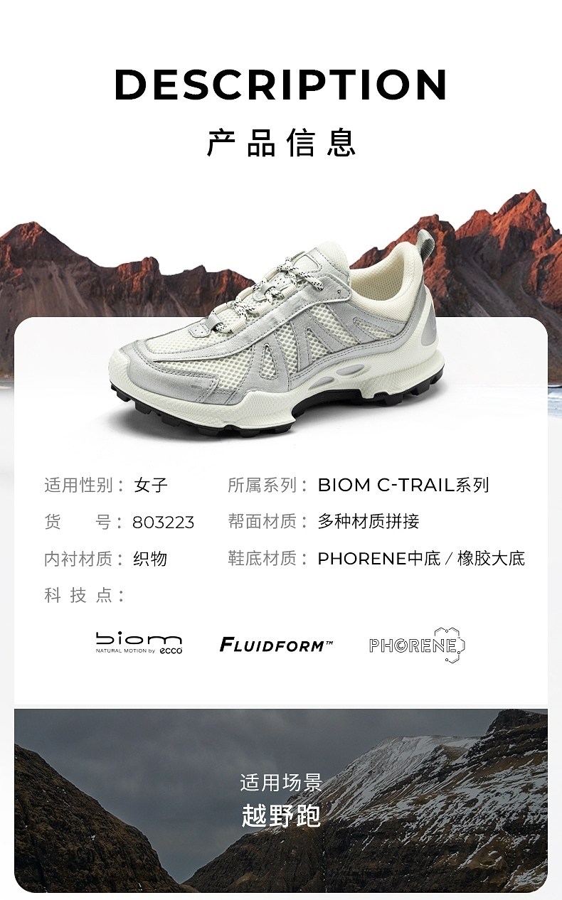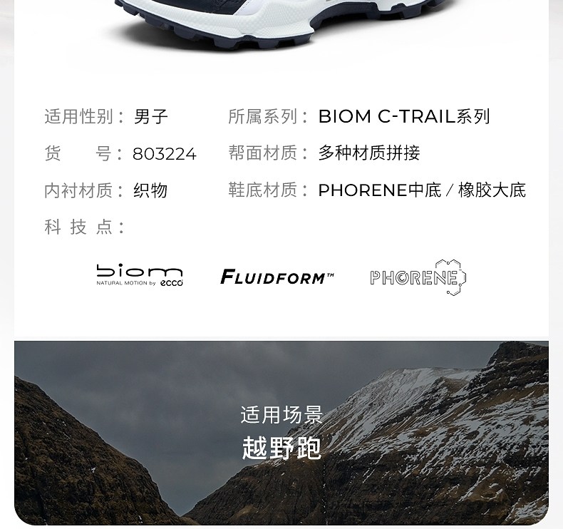 Ecco Hiking Shoes for Men, Comfortable Outdoor Sports Trail Running Shoes, Fitness Walking Biomc Trail 803224