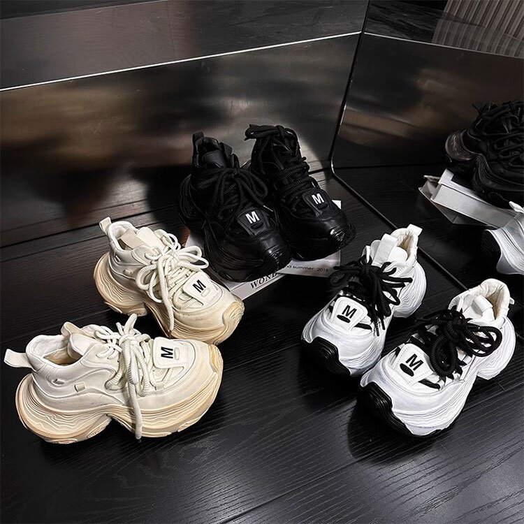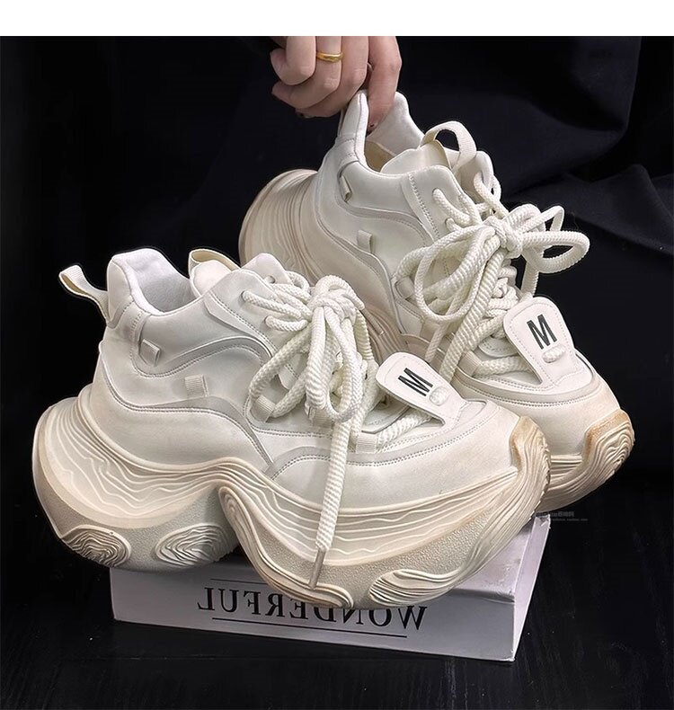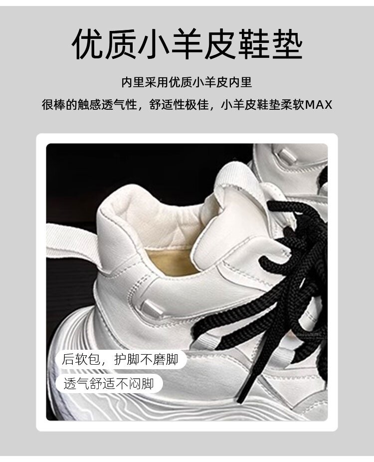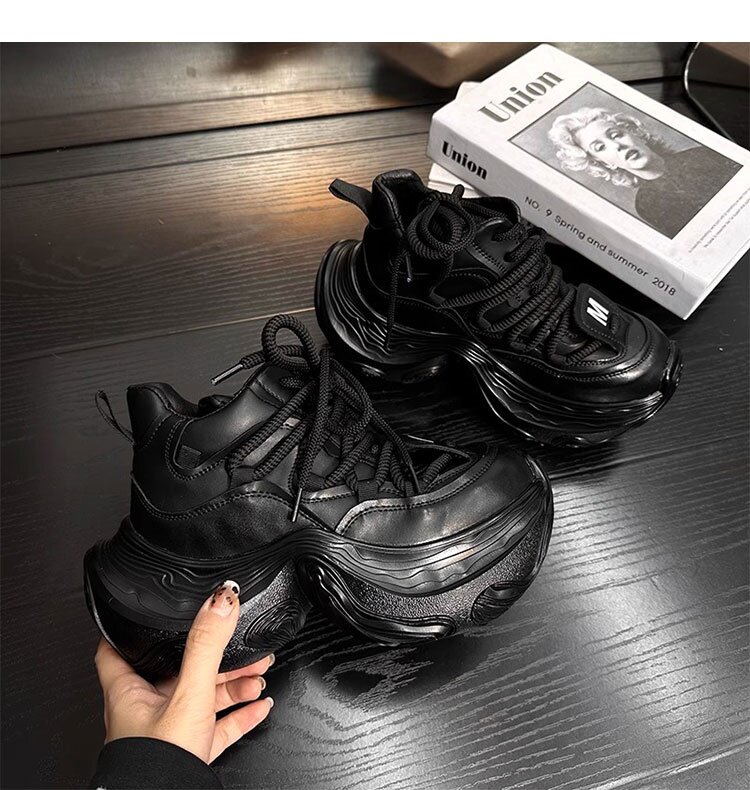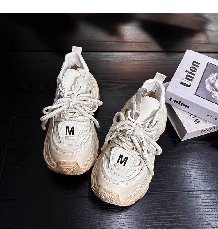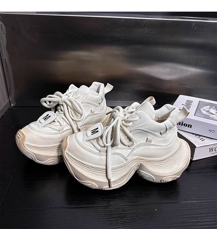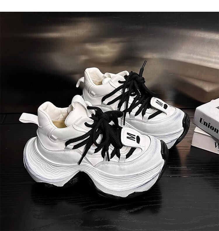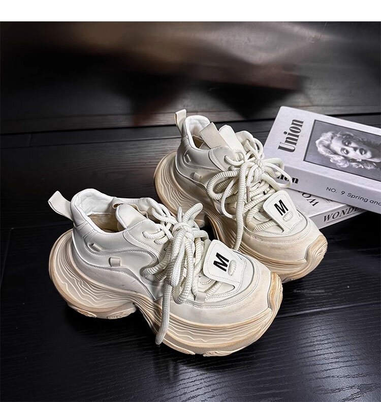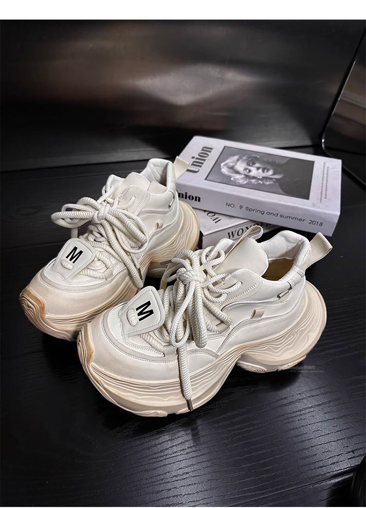 Hong Kong Genuine Leather High-Top Lace-Up Dad Shoes for Women 2026 Spring and Autumn New Platform Thick-Soled Height-Increasing Casual Sports Shoes Trendy