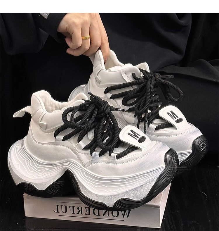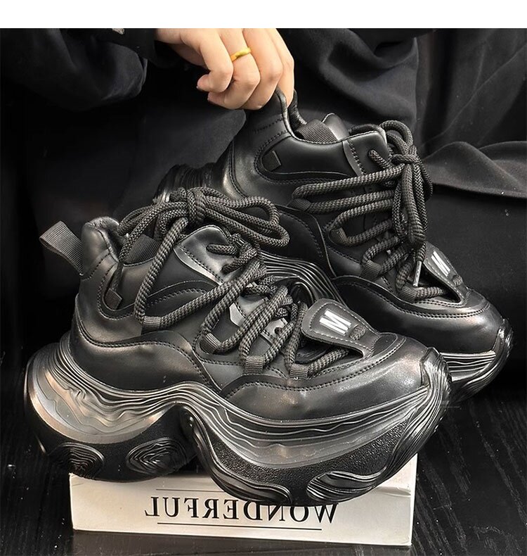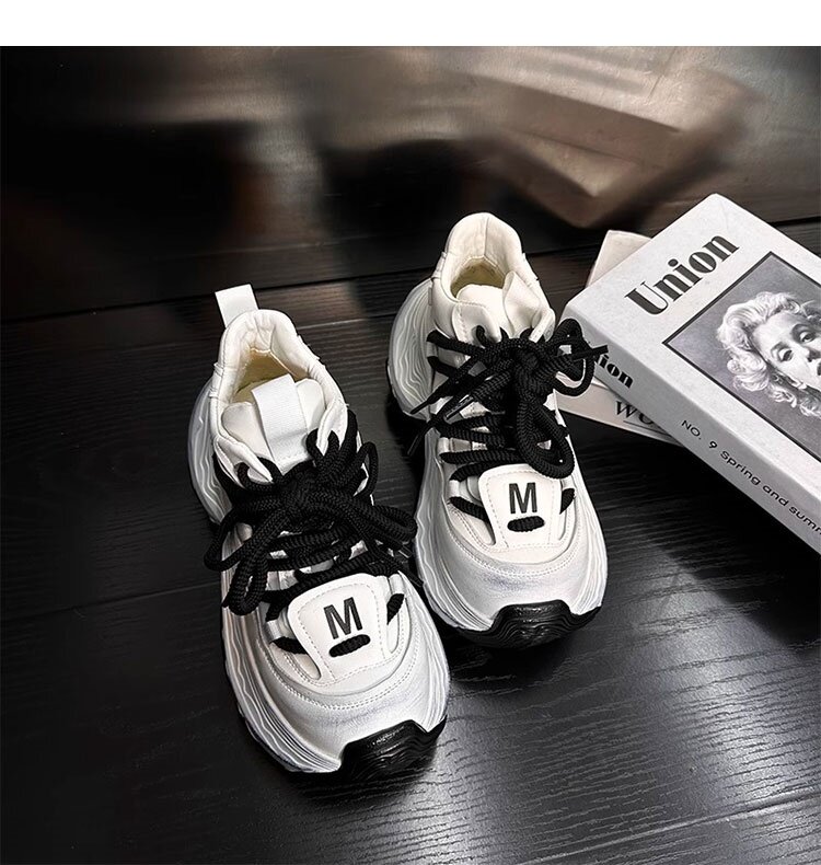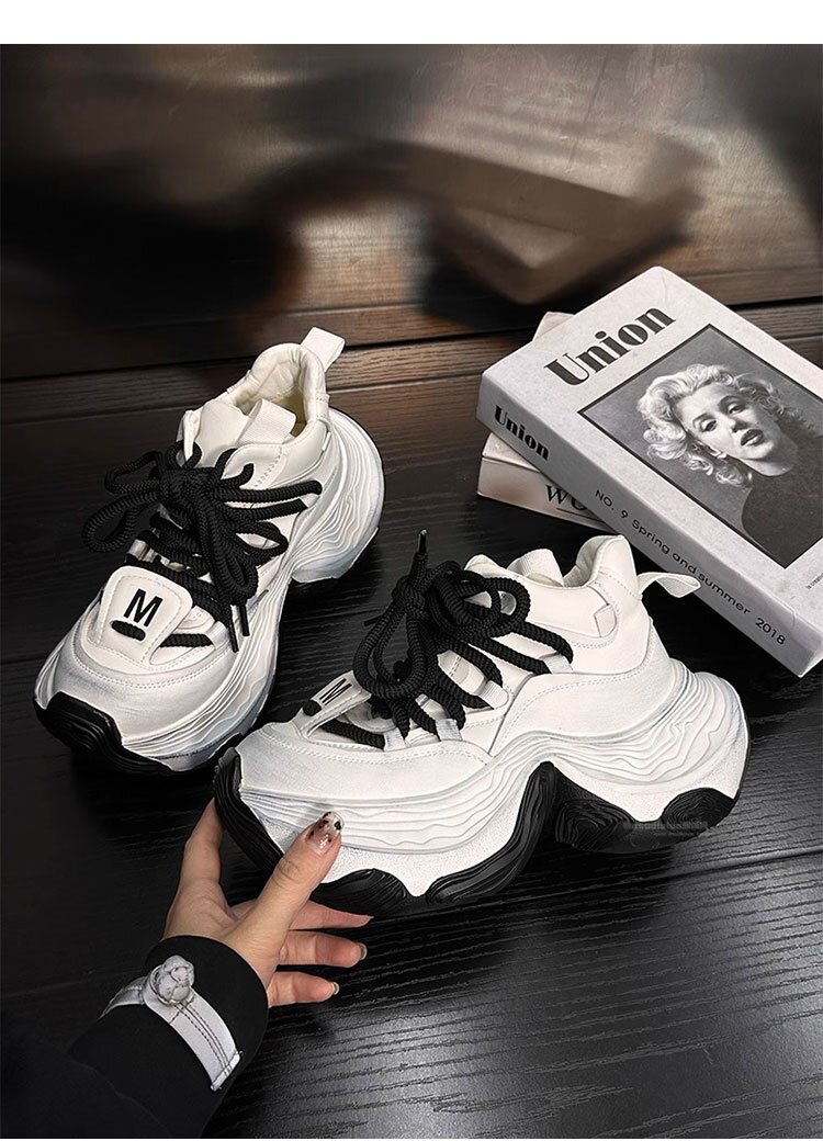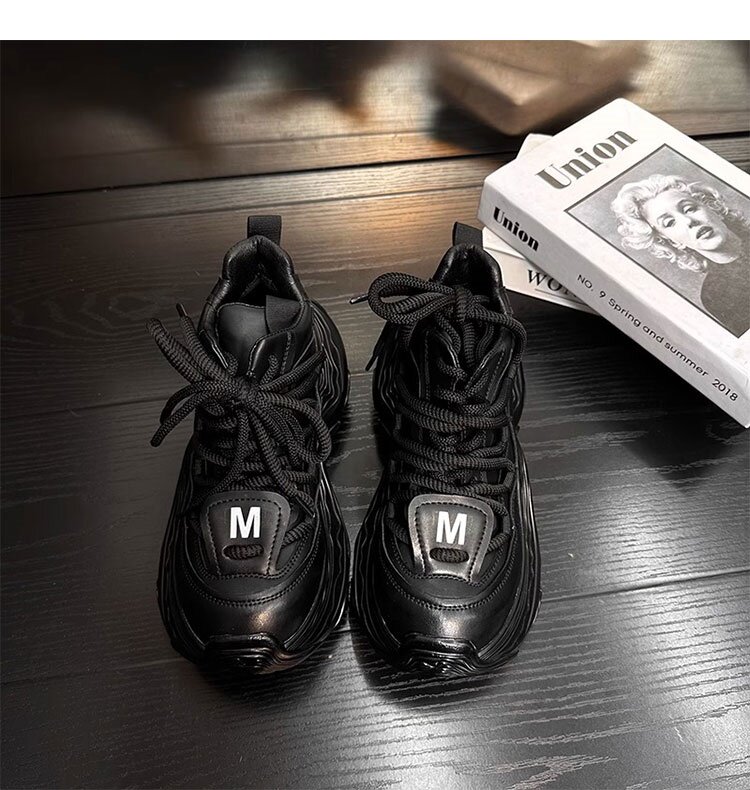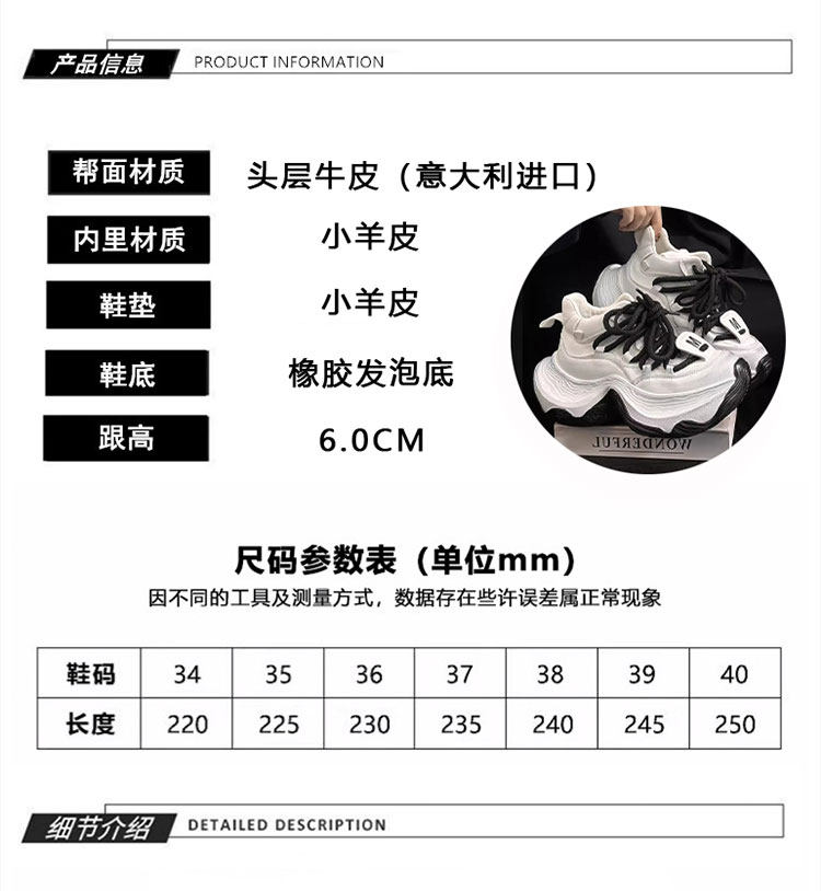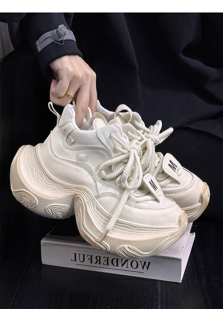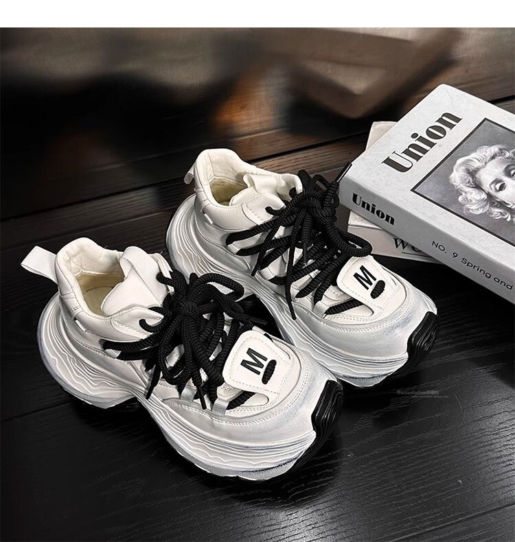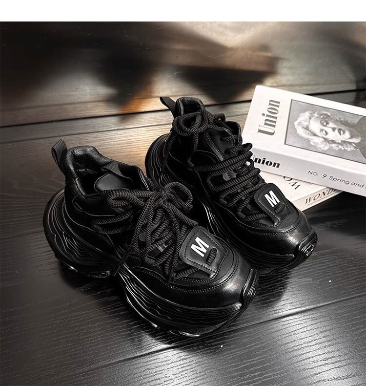Hong Kong Genuine Leather High-Top Lace-Up Dad Shoes for Women 2026 Spring and Autumn New Platform Thick-Soled Height-Increasing Casual Sports Shoes Trendy