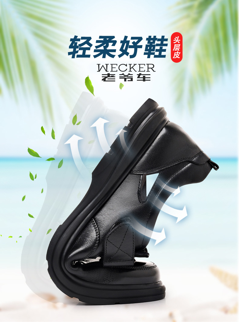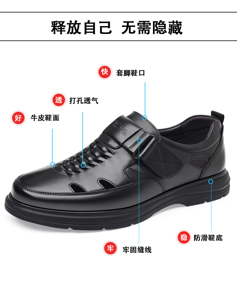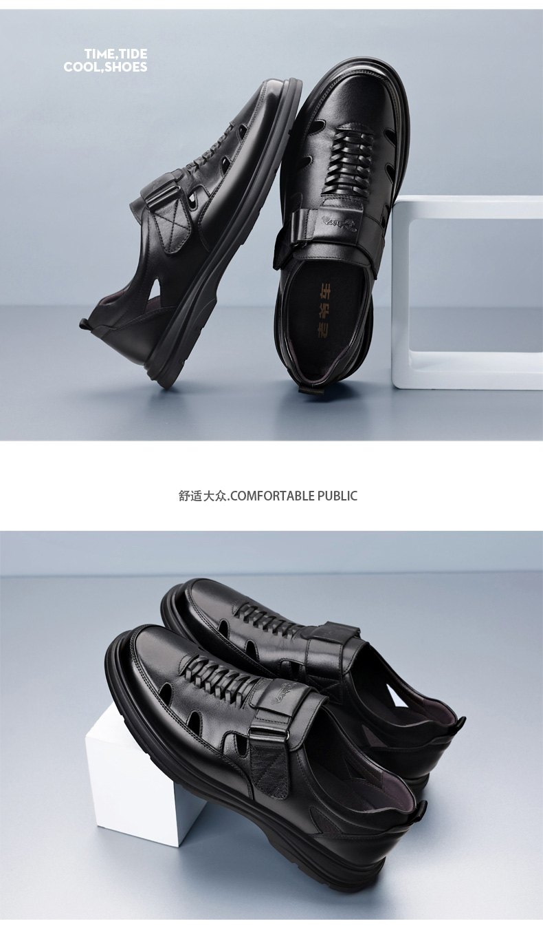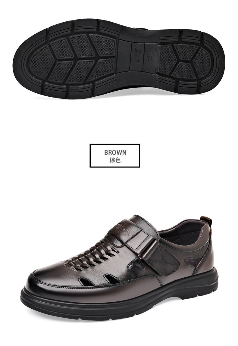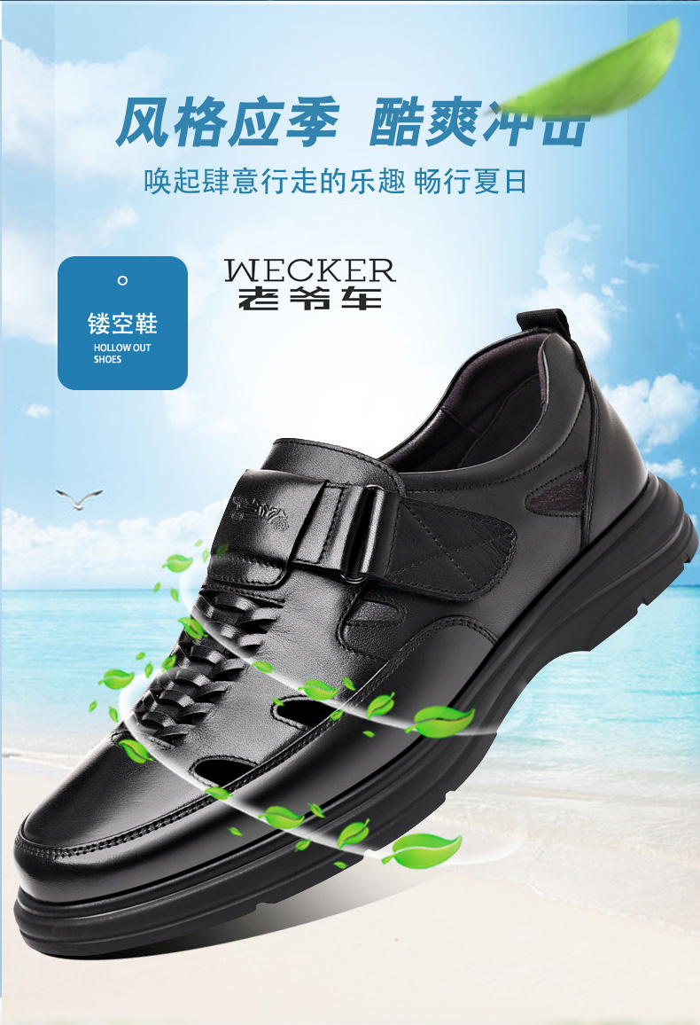Vintage Leather Sandals for Men, Genuine Leather, Breathable, Summer Hollow Leather Shoes, Clogs, Soft Sole, Middle-Aged Dad Shoes