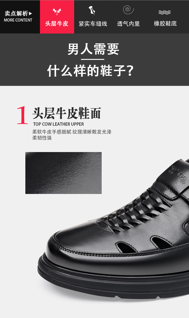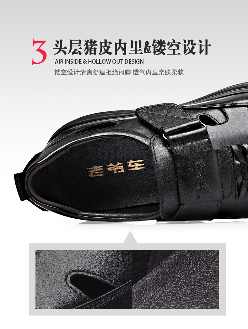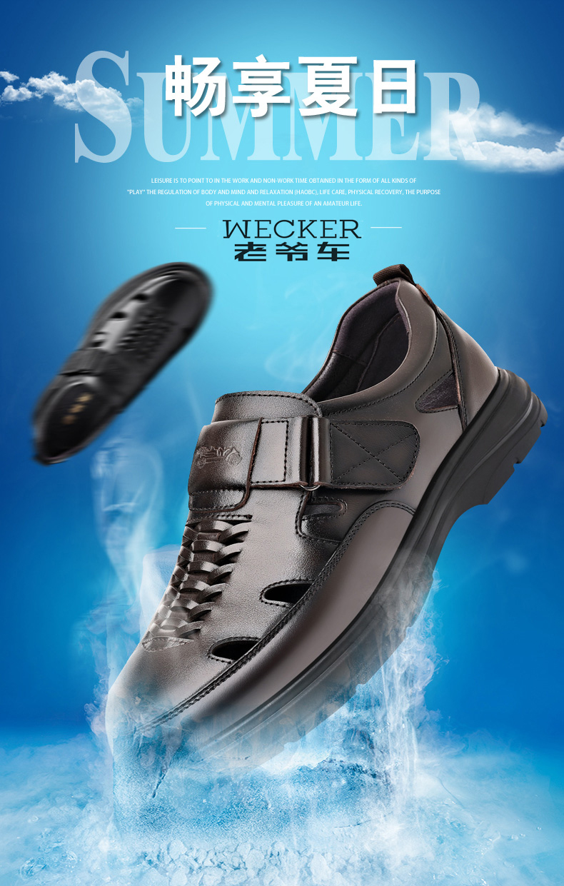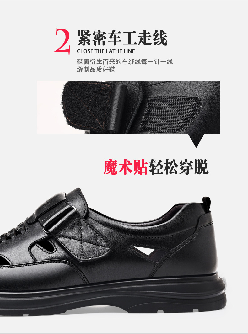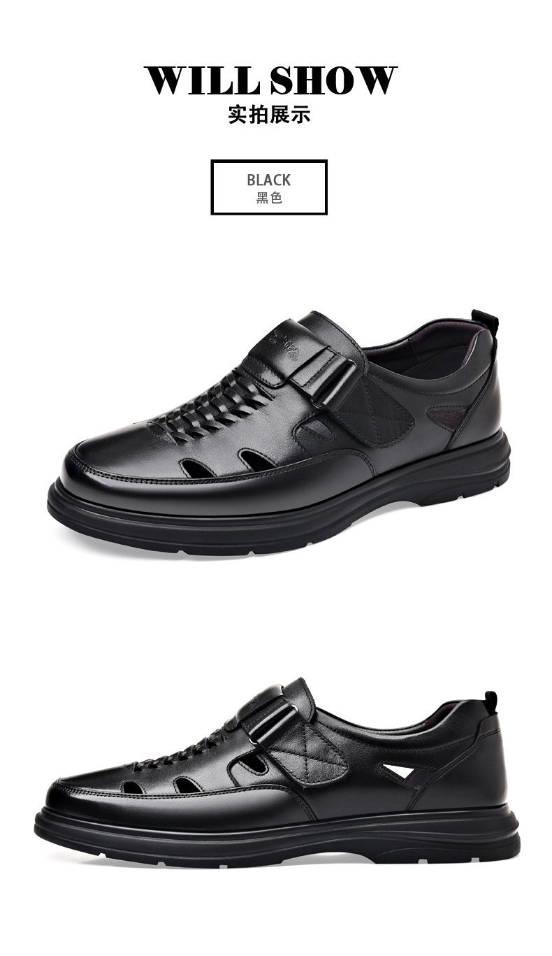 Vintage Leather Sandals for Men, Genuine Leather, Breathable, Summer Hollow Leather Shoes, Clogs, Soft Sole, Middle-Aged Dad Shoes