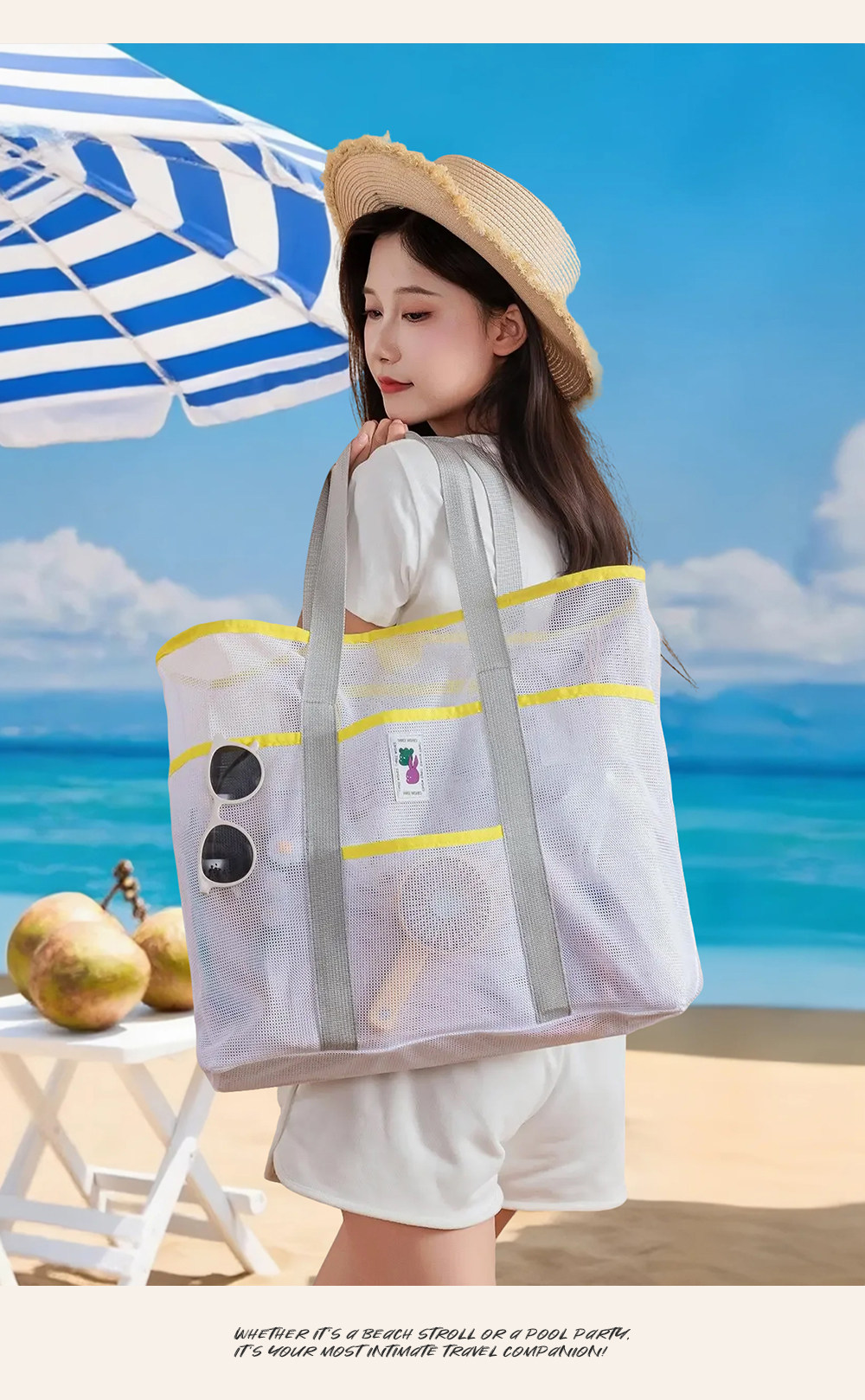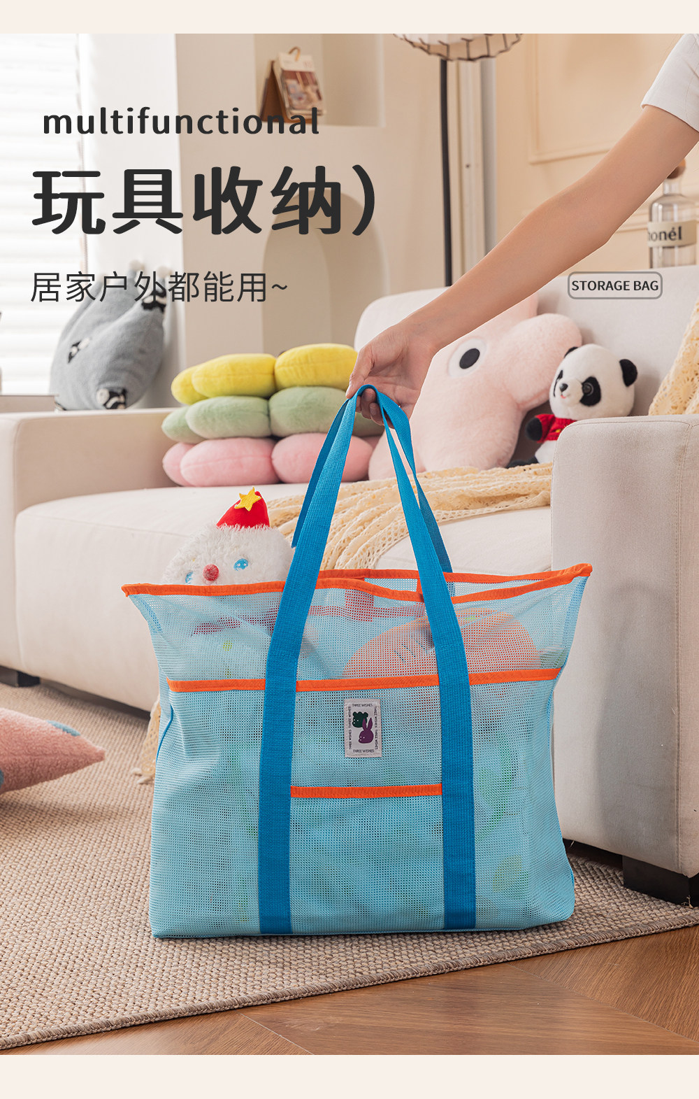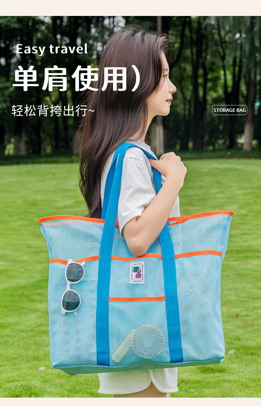 Large Travel Beach Gear Bag, Children's Toy Storage Bag, Portable Tote Mommy Bag, Mesh Swimming Bag