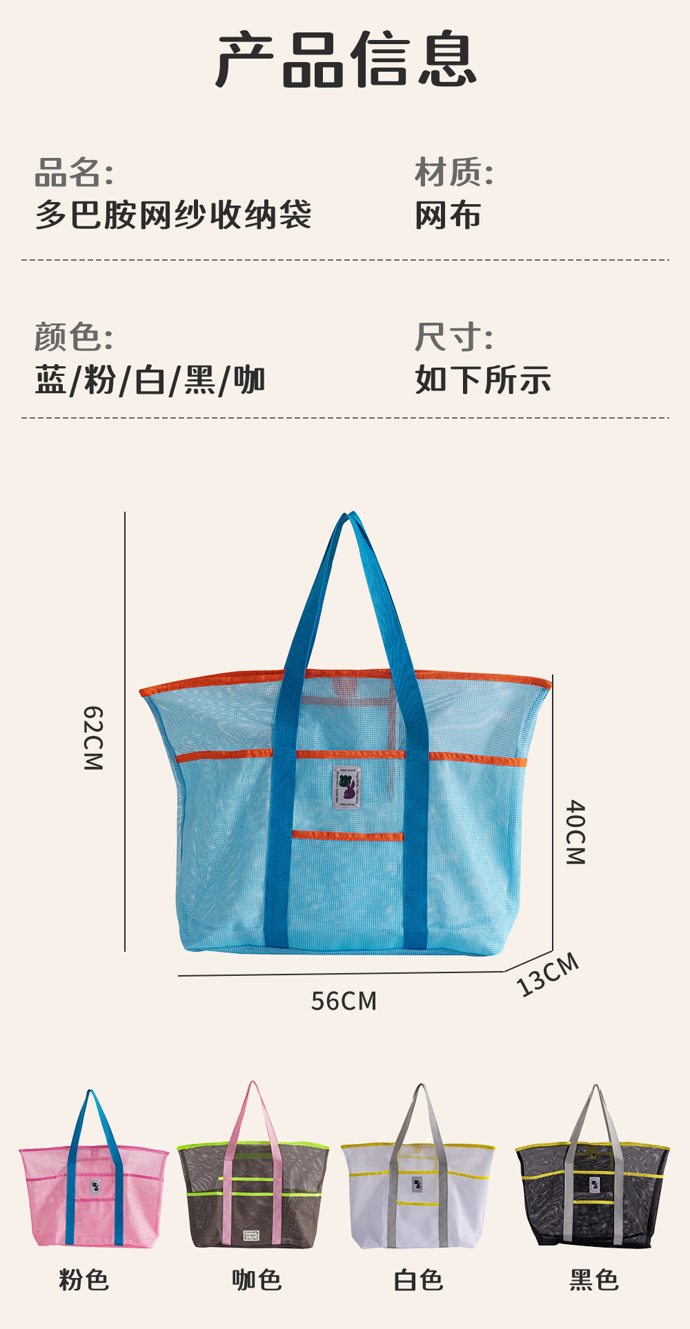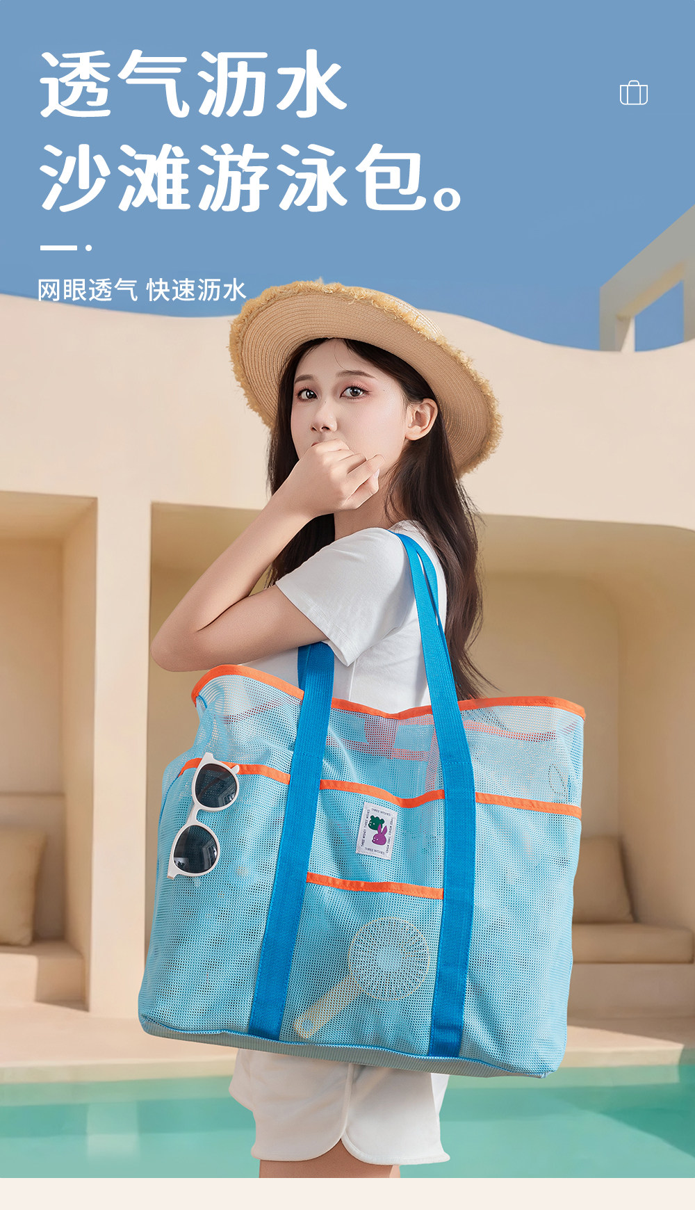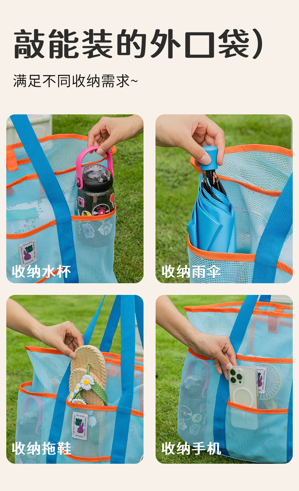 Large Travel Beach Gear Bag, Children's Toy Storage Bag, Portable Tote Mommy Bag, Mesh Swimming Bag
