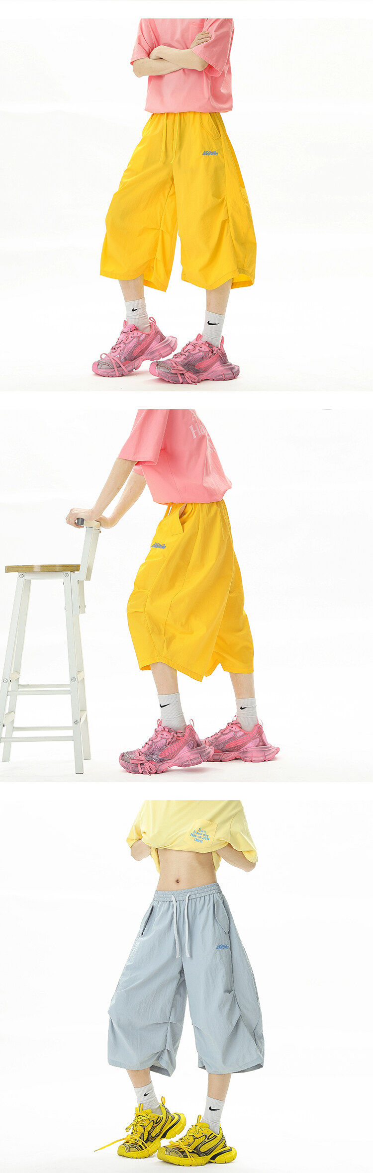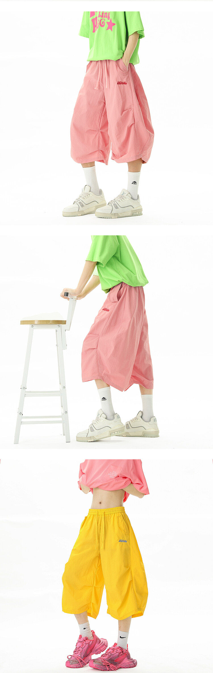 Dopamine Embroidered Quick-Drying Shorts for Men and Women, Summer Outdoor Mountain-Style Wide-Leg Cropped Pants, Loose Sports Casual Mid-Length Pants